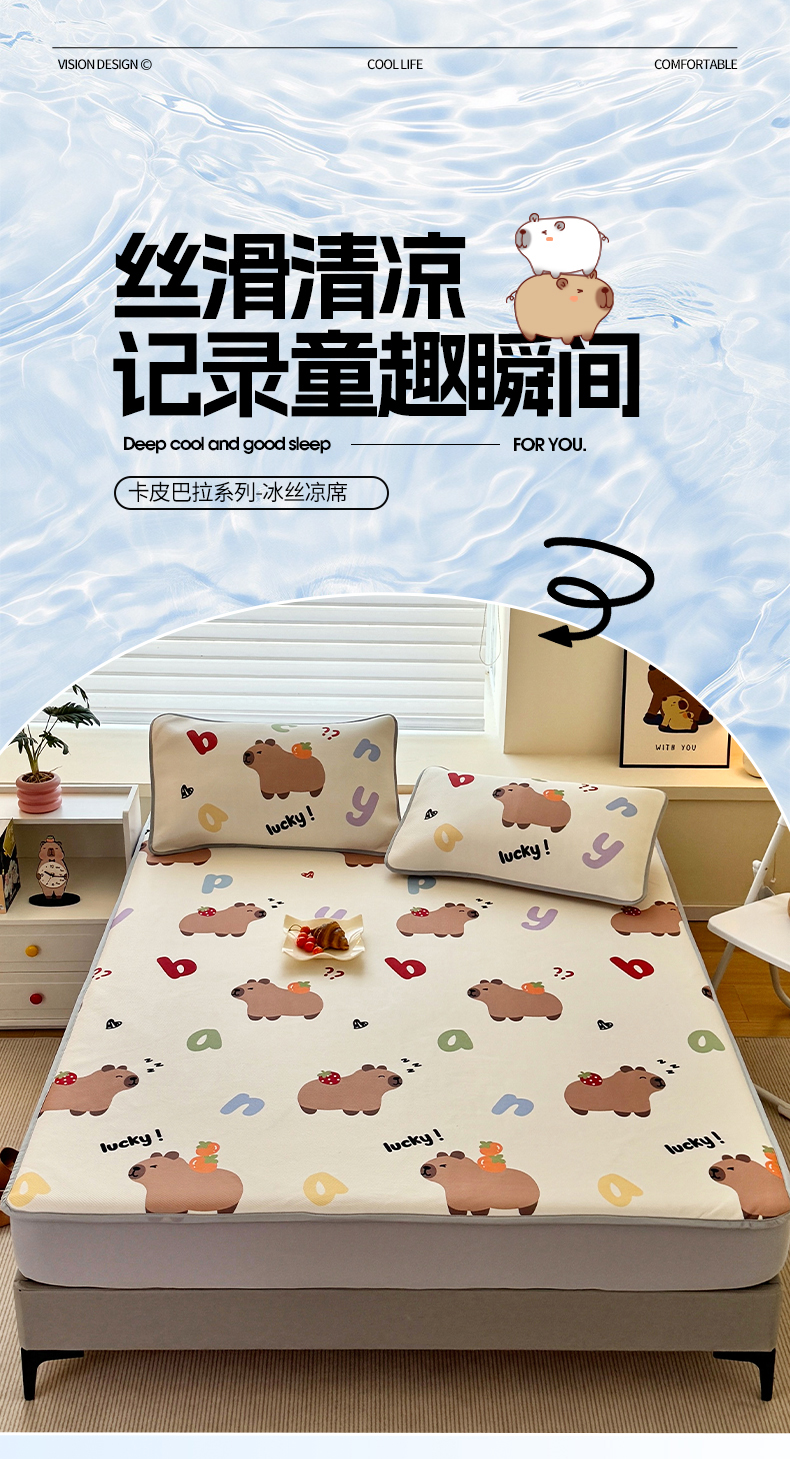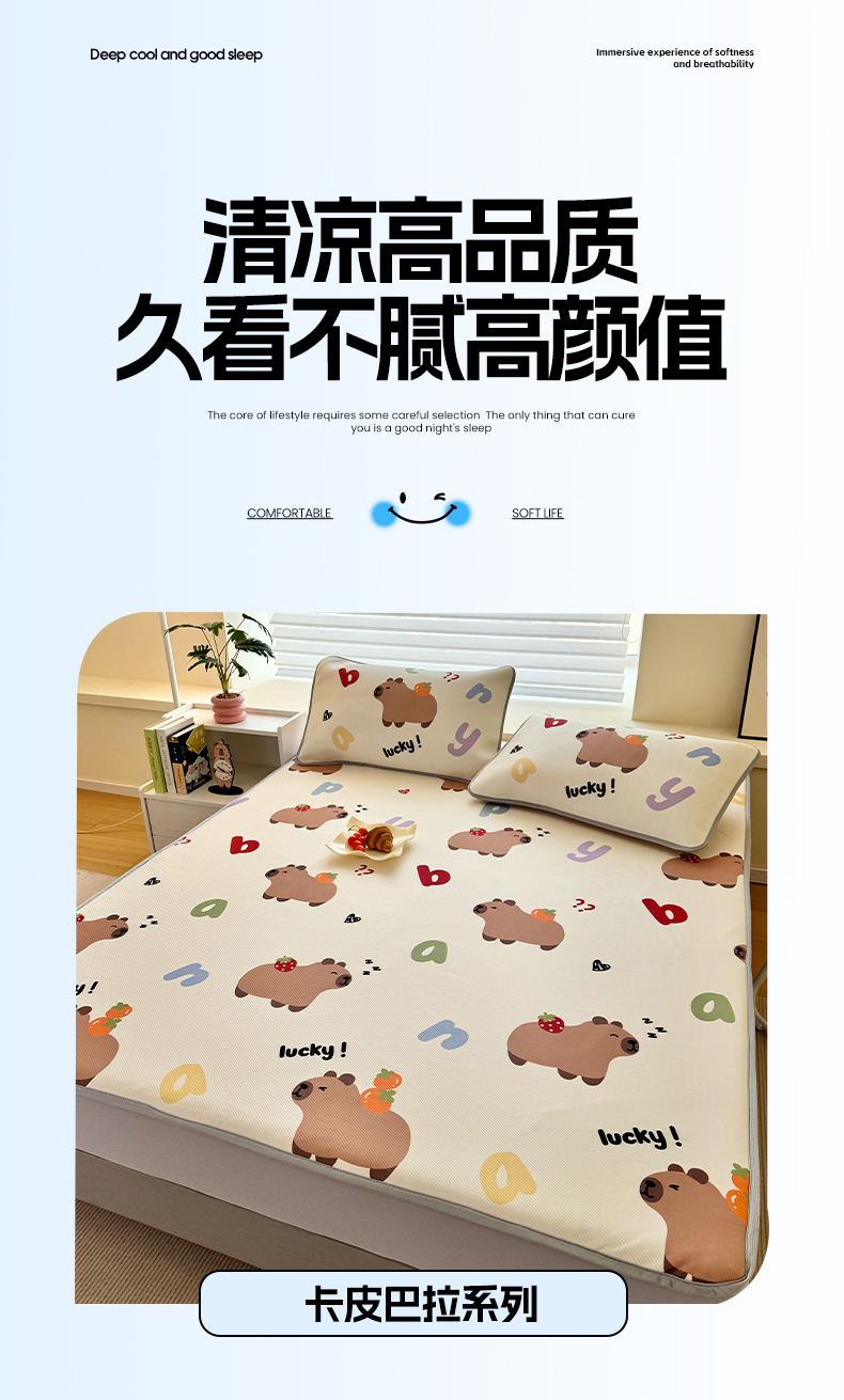 • 91家纺网 家纺一手货源 找家纺 蘭菲家纺 2025新款凉感丝卡皮巴拉凉席 皮小萌