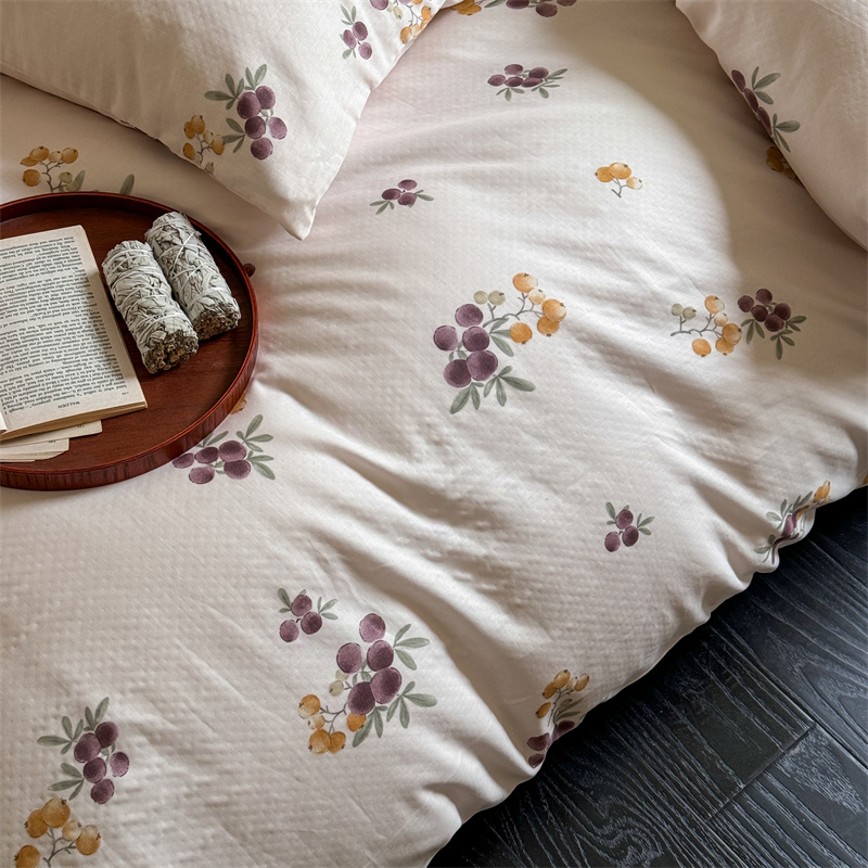 当前位置: 91家纺网 > 商品网购 > 床品套件 > 四件套 > 全棉普通四件套 > 窝米 2025春季新品全棉双层纱油画风花卉四件套系列(梦境花园、花研巧语) 枇杷园