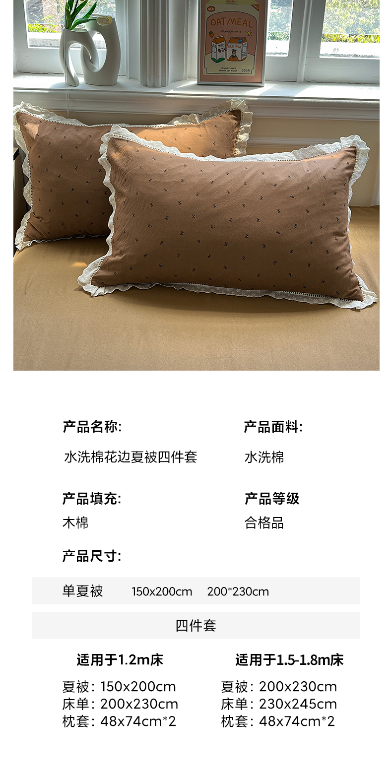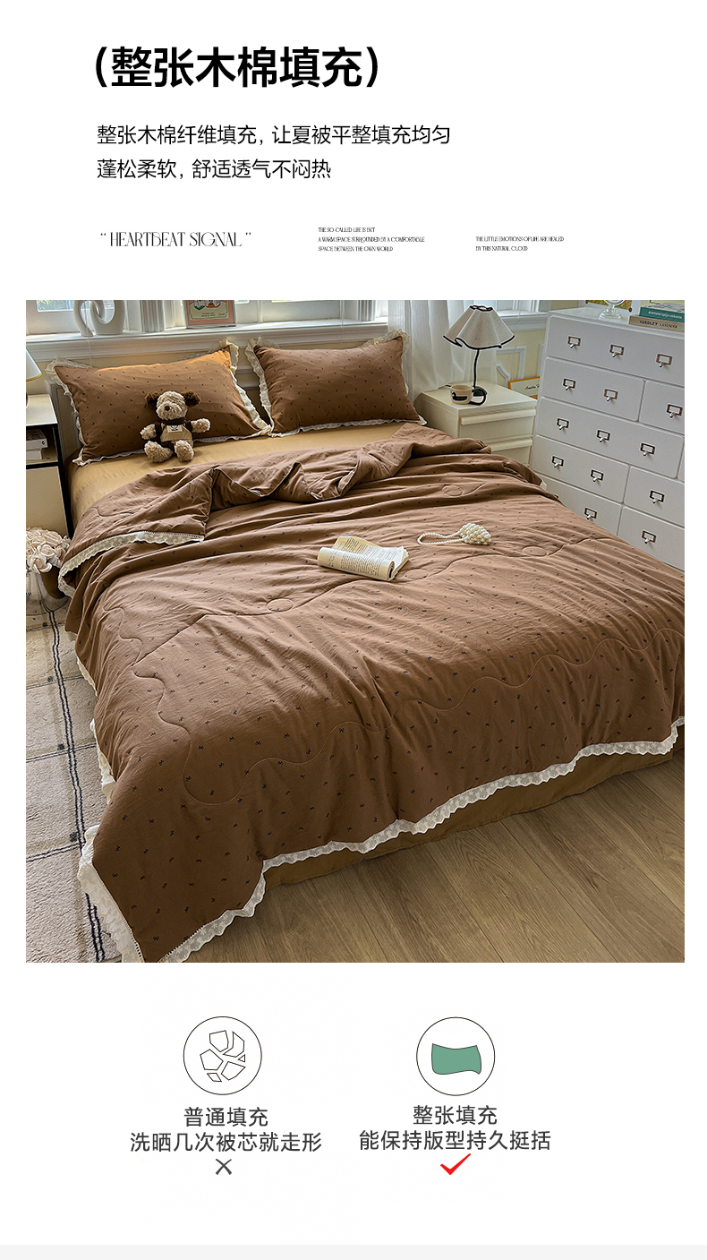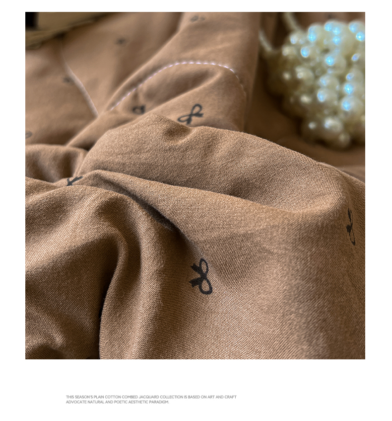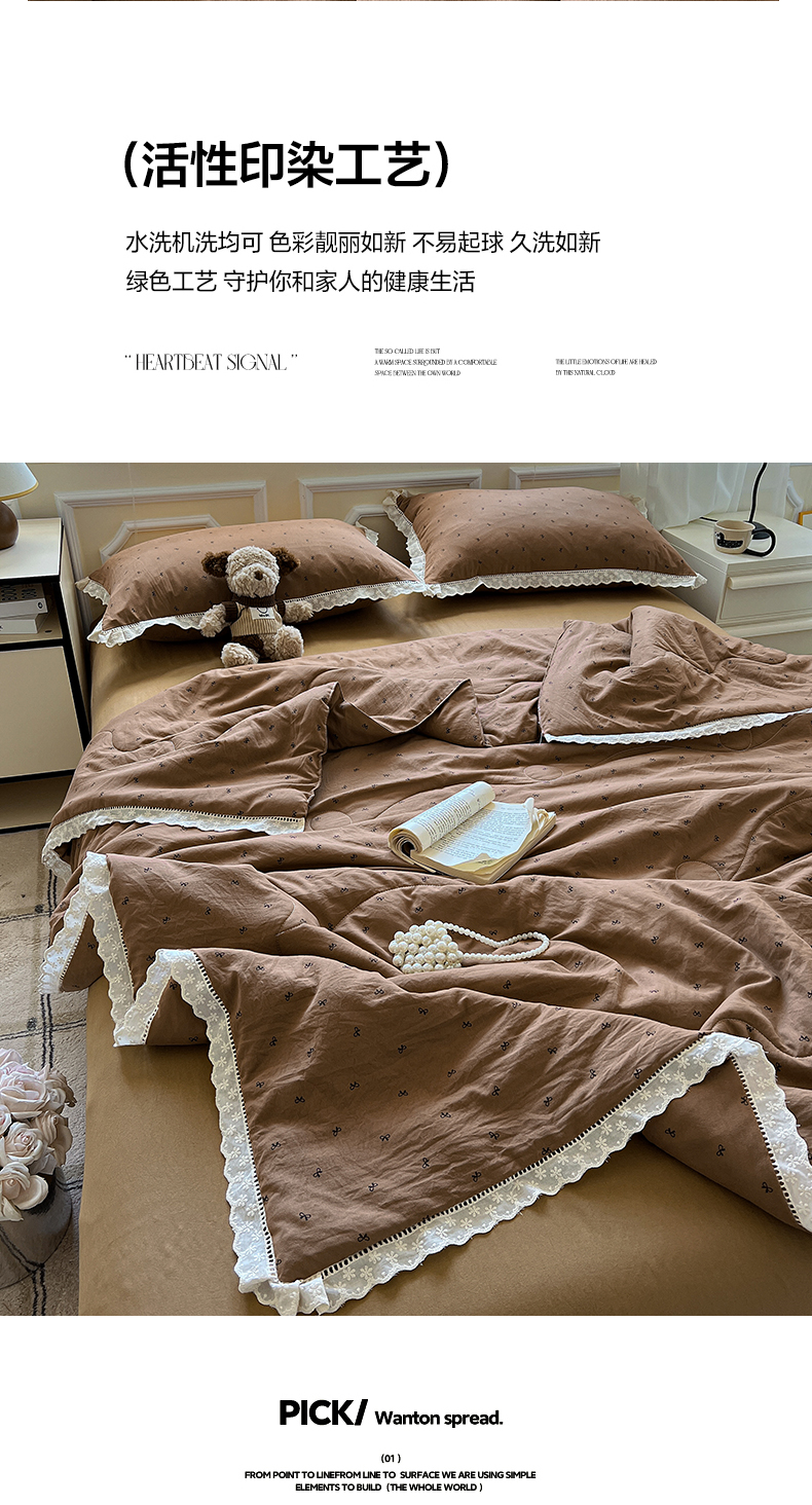 商品名称:水墨江南 2025新款全棉镂空花边夏被四件套 小蝴蝶结咖