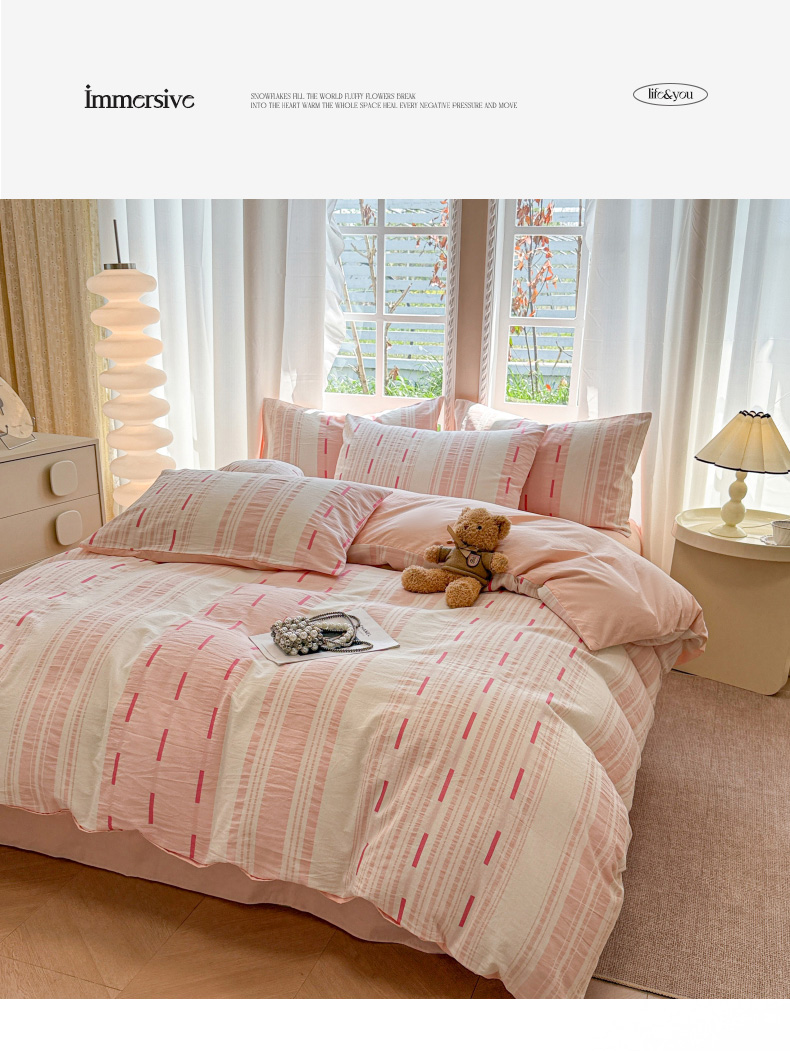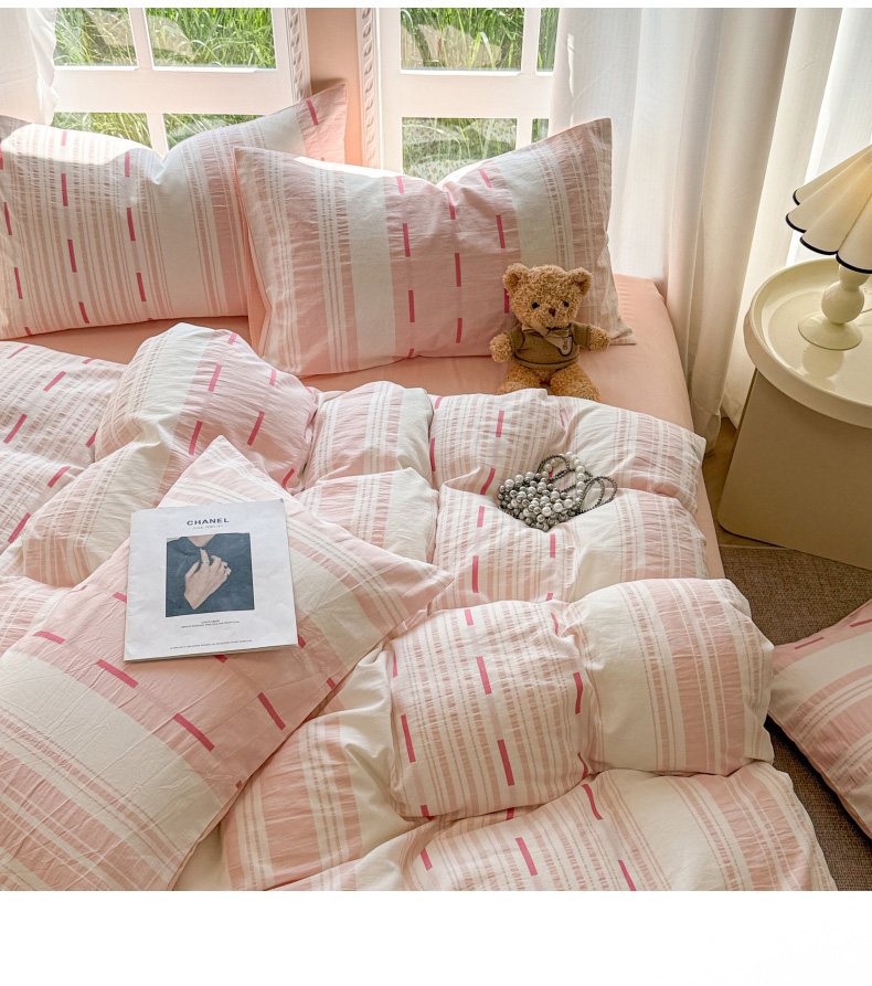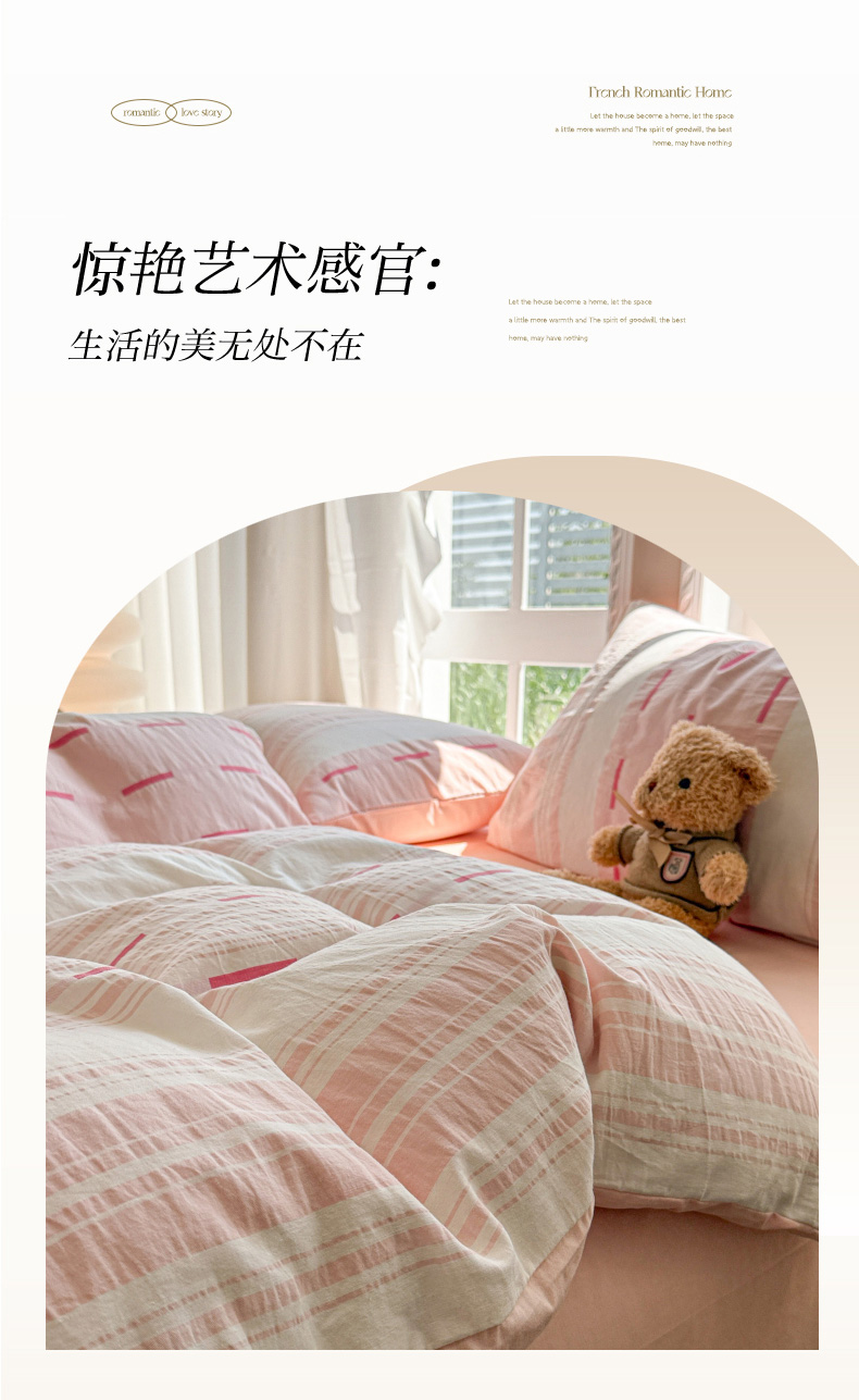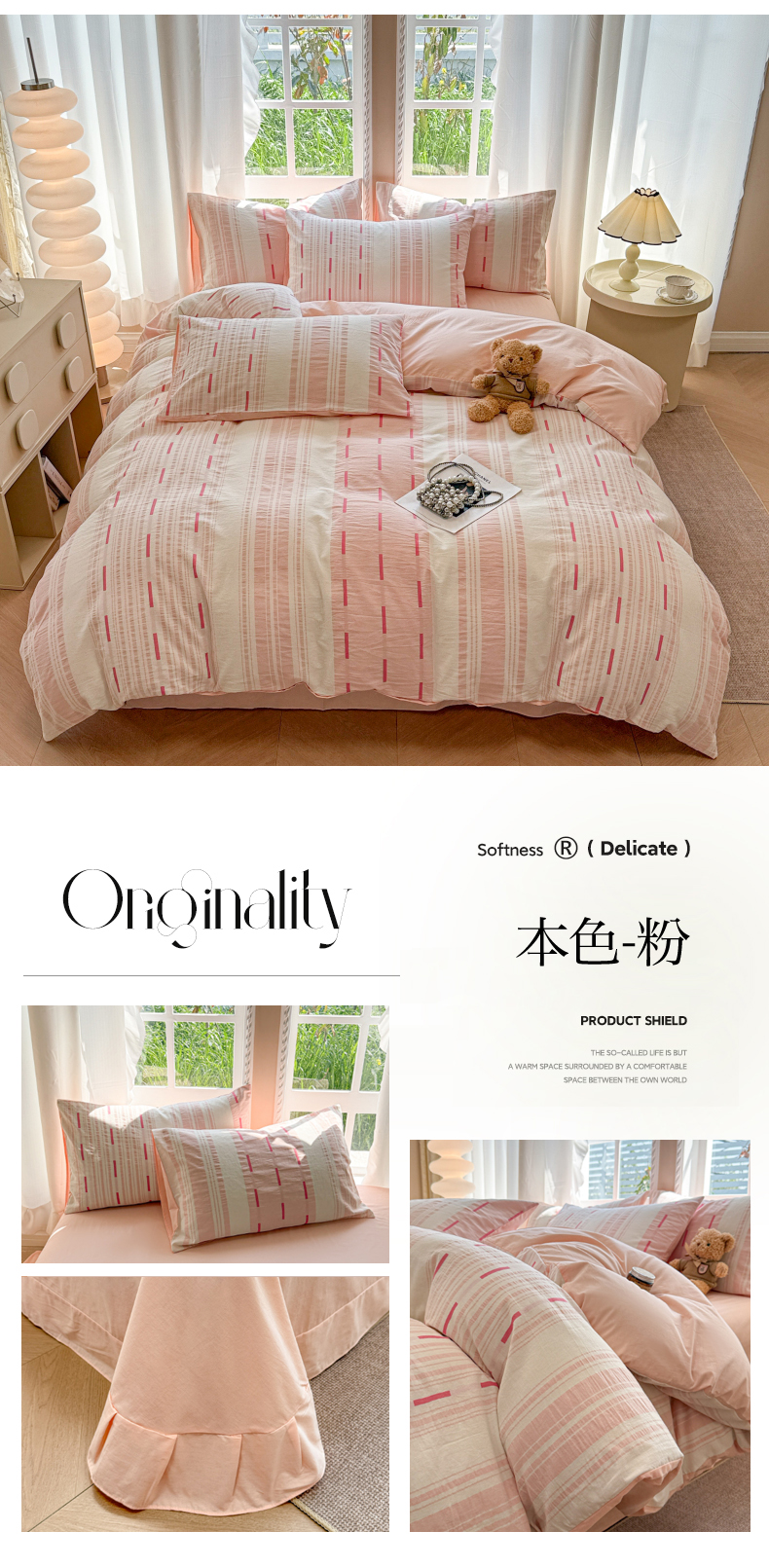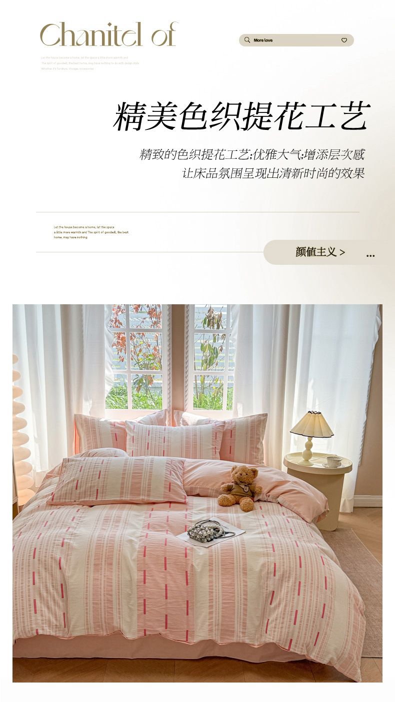 当前位置: 91家纺网 > 商品网购 > 床品套件 > 四件套 > 全棉普通四件套 > 米可2025春夏新款A类色织华夫格提花全棉四件套 本色-粉
