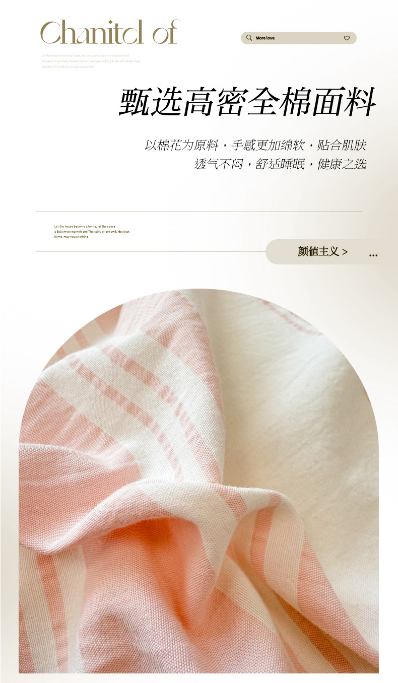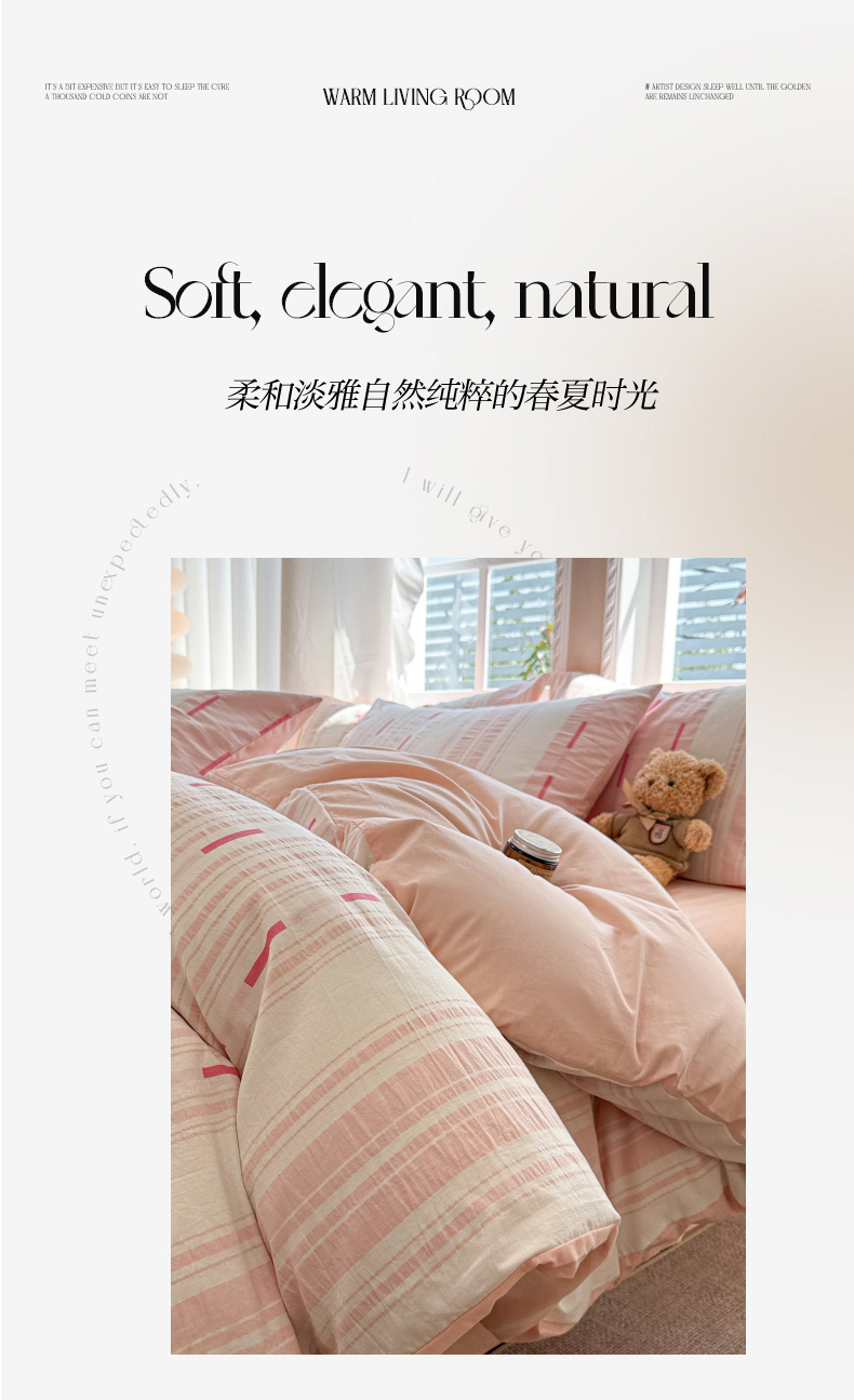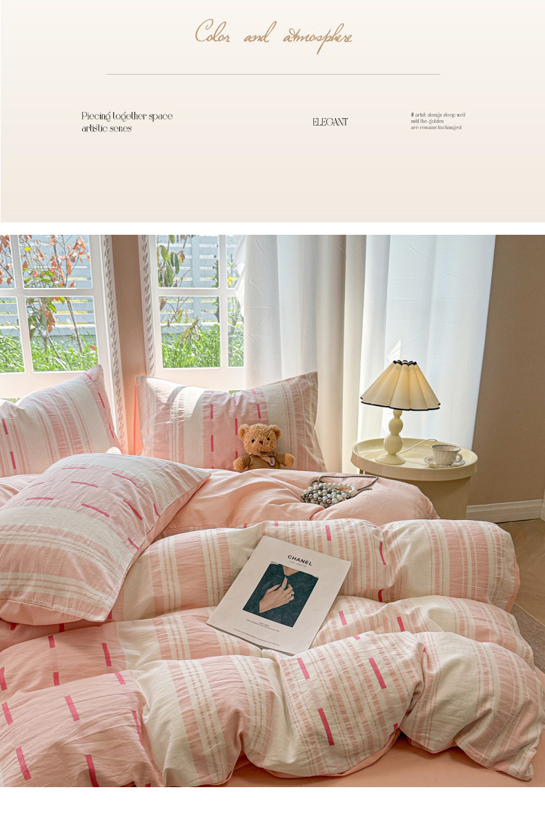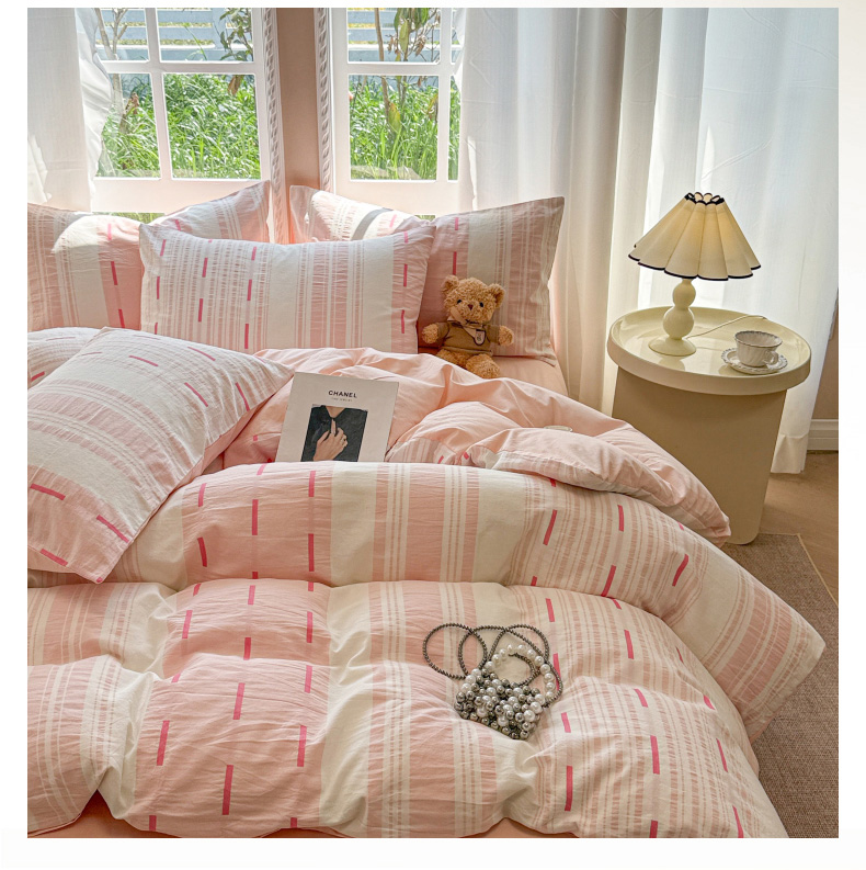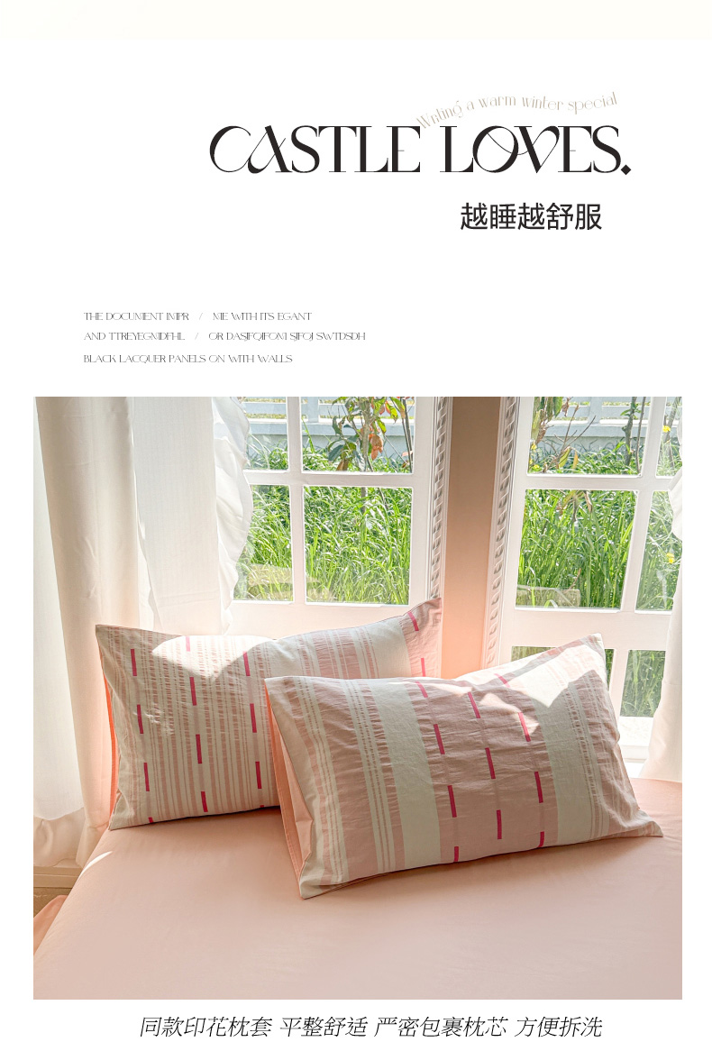 当前位置: 91家纺网 > 商品网购 > 床品套件 > 四件套 > 全棉普通四件套 > 米可2025春夏新款A类色织华夫格提花全棉四件套 本色-粉