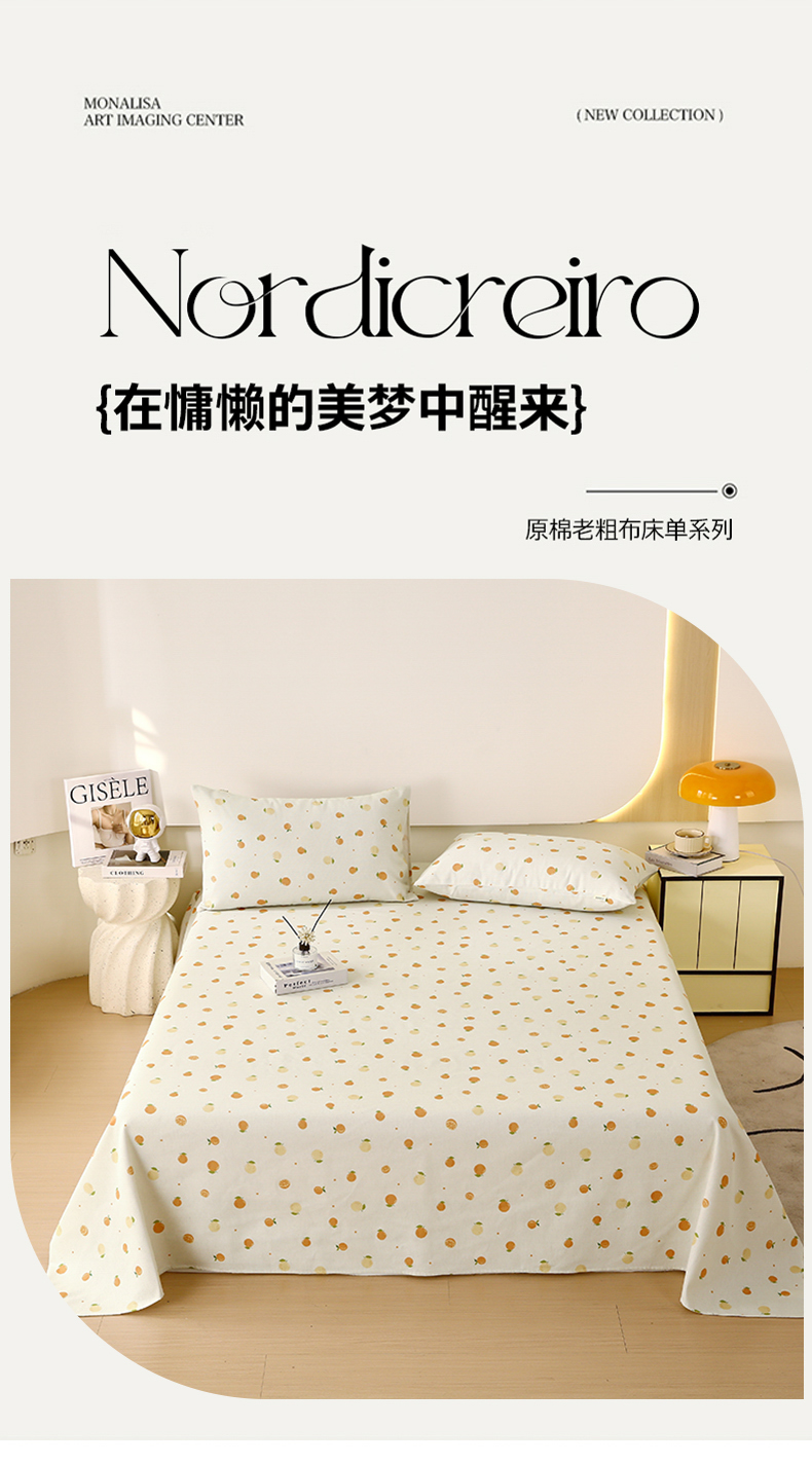 当前位置: 91家纺网 > 商品网购 > 床上用品 > 凉席 > 凉席套件 > 爱彼家纺 2025夏季古艺原棉老粗布床单三件套凉席-系列五 橘子