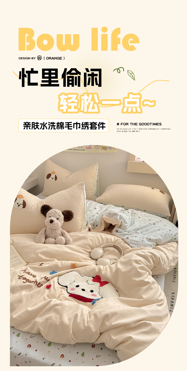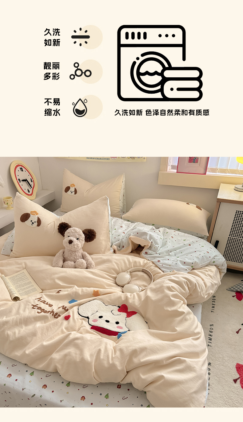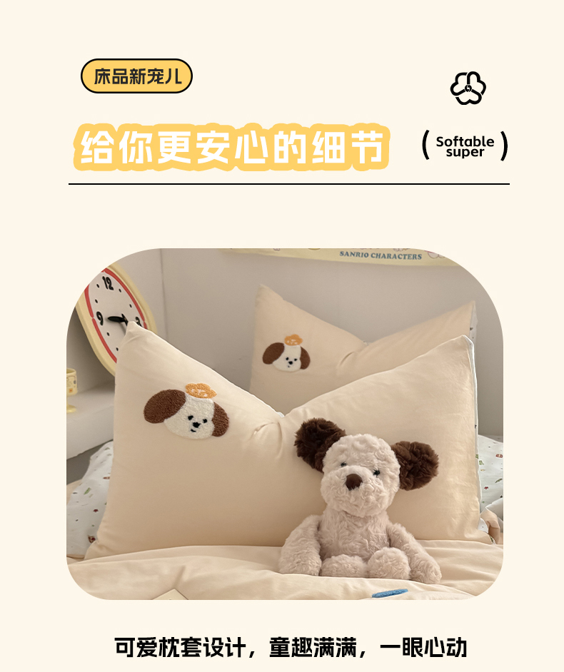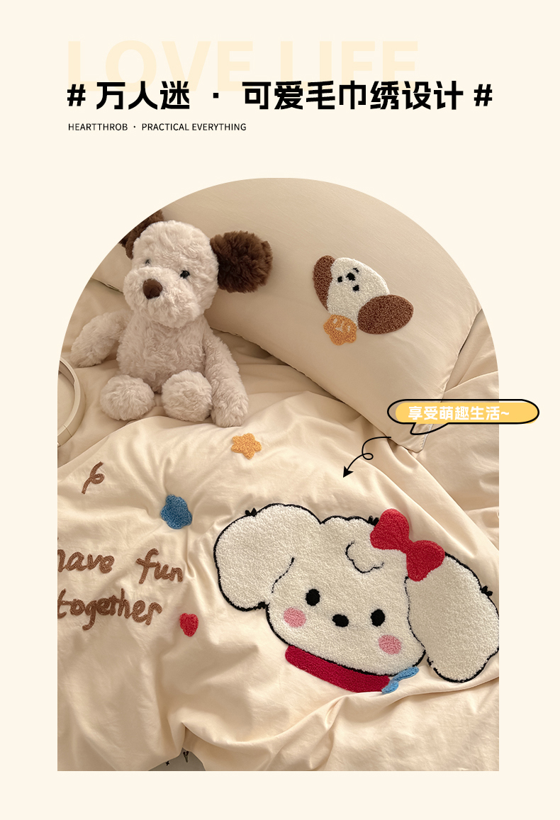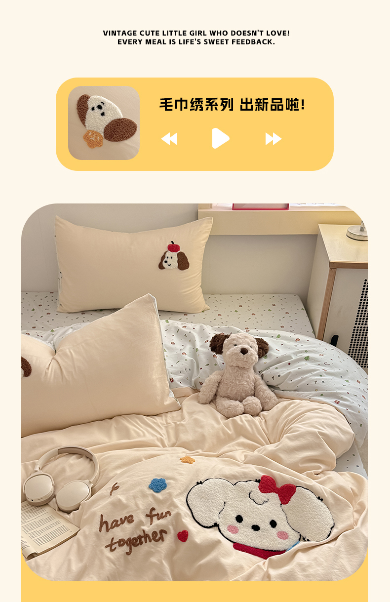 当前位置: 91家纺网 > 商品网购 > 床品套件 > 四件套 > 水洗棉四件套 > 沃朴家居 2025春夏新款亲肤水洗棉毛巾绣四件套 奶乎狗狗