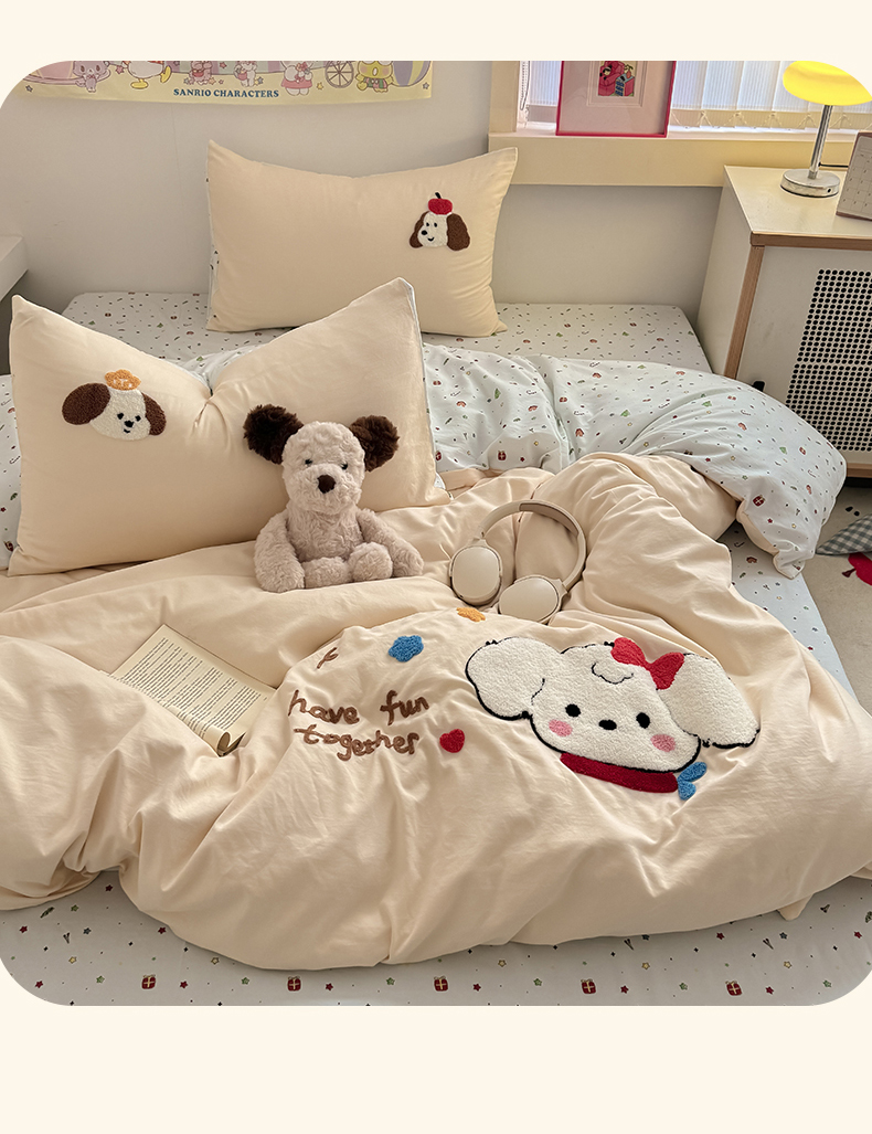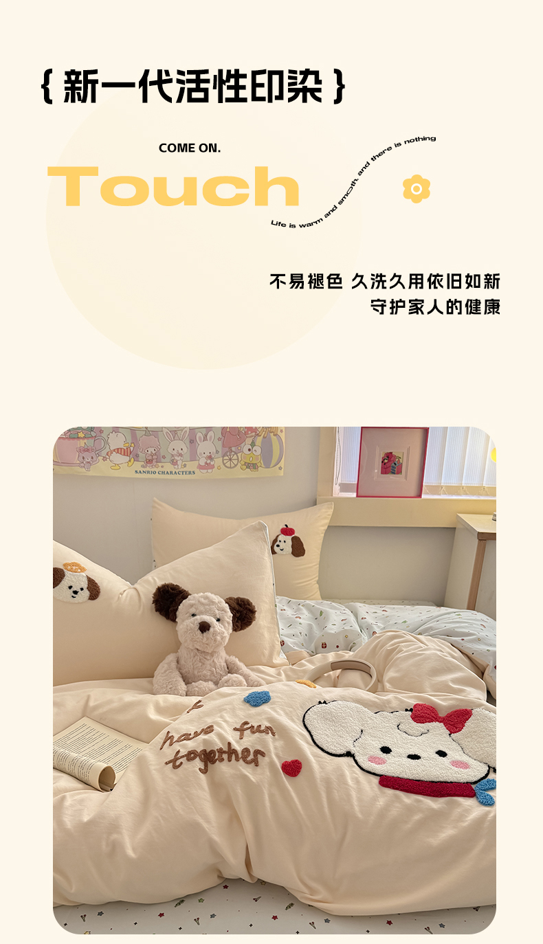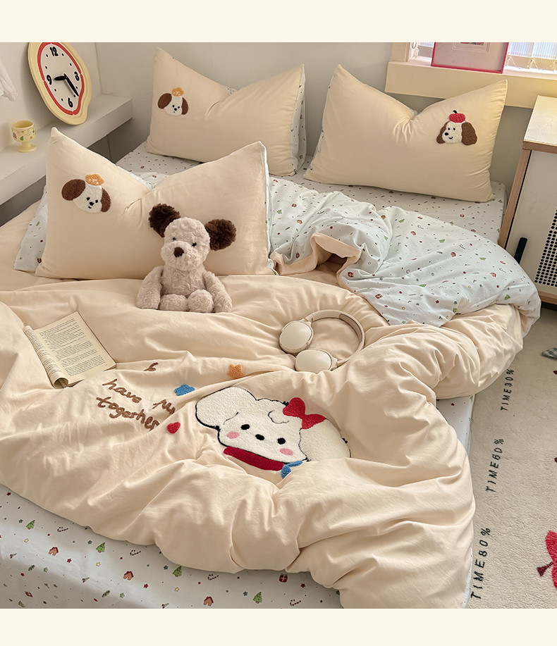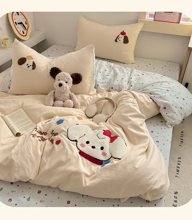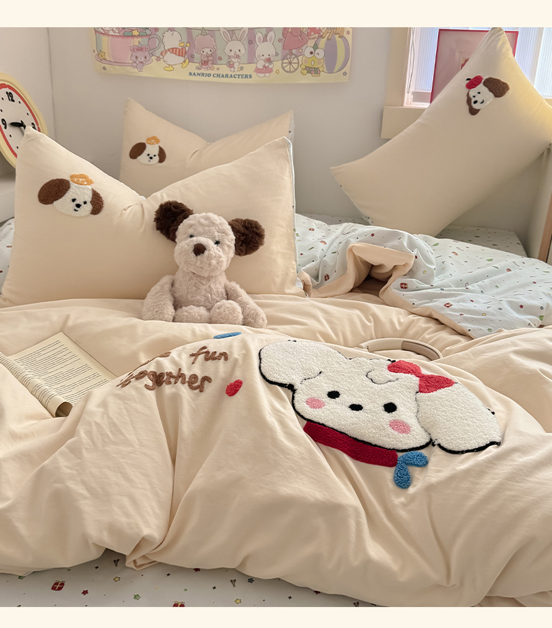 当前位置: 91家纺网 > 商品网购 > 床品套件 > 四件套 > 水洗棉四件套 > 沃朴家居 2025春夏新款亲肤水洗棉毛巾绣四件套 奶乎狗狗