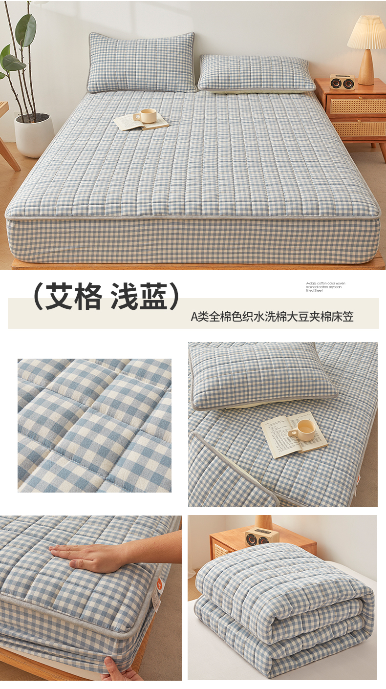 (总)伊人坊 2025新款A类全棉色织水洗棉大豆夹棉床笠,艾格 浅粉,艾格 浅蓝,森屿 粉蓝,森屿 咖黄,森屿 咖蓝,森屿 雾灰