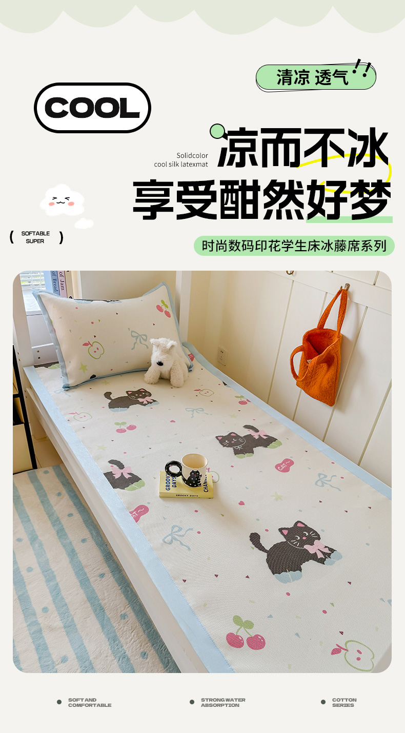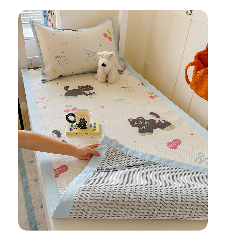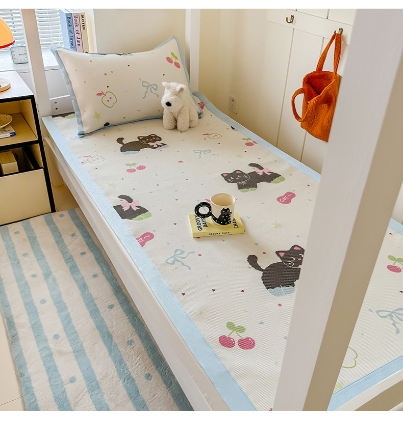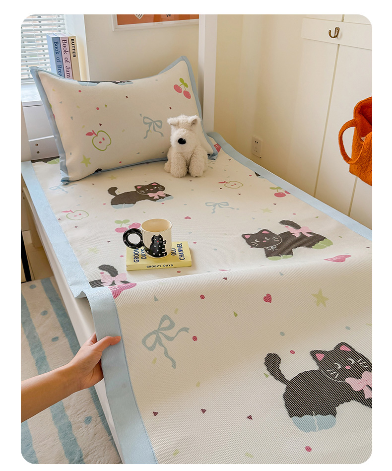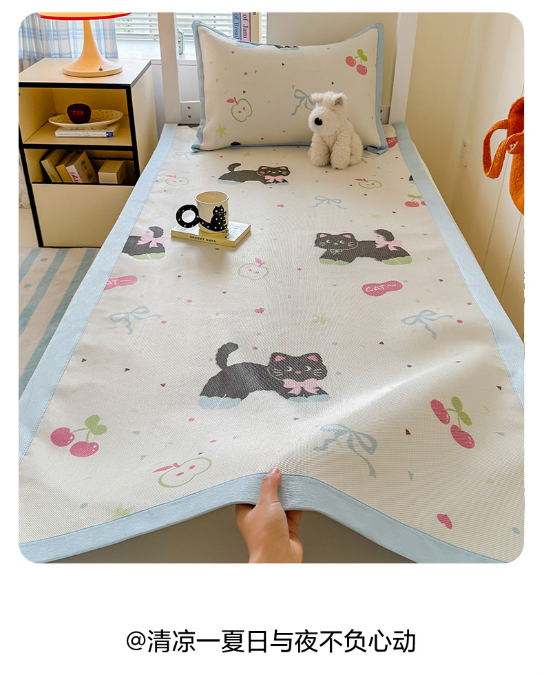 商品名称:安哆啦家纺 2025新款A类小清新卡通学生季宿舍床儿童用冰藤凉席席子两件套 冰藤席-黑猫日记