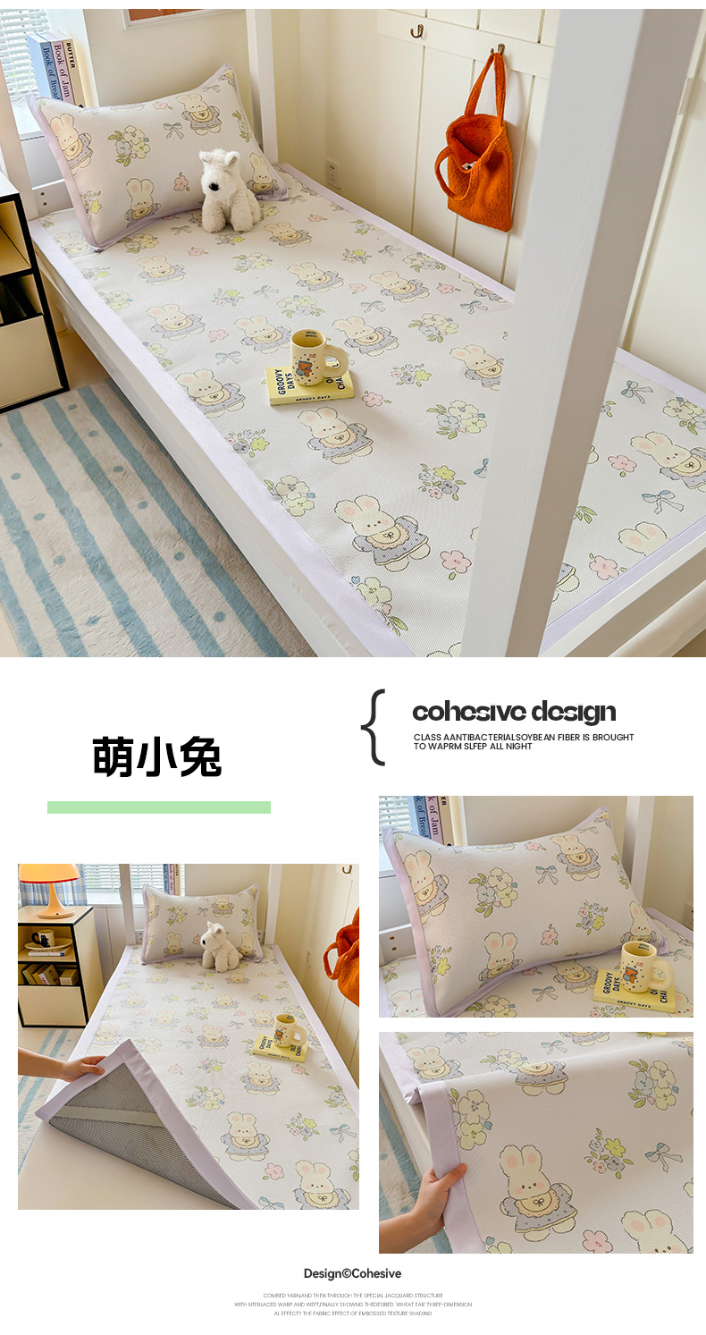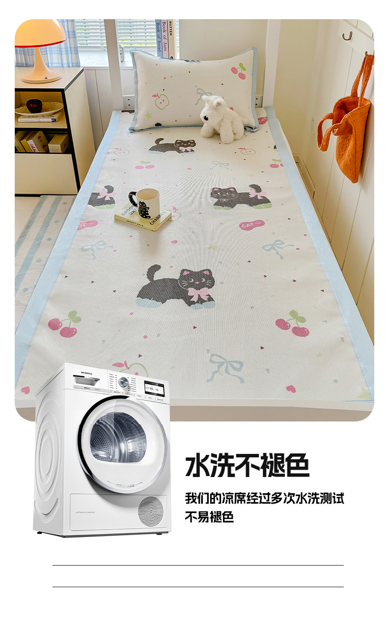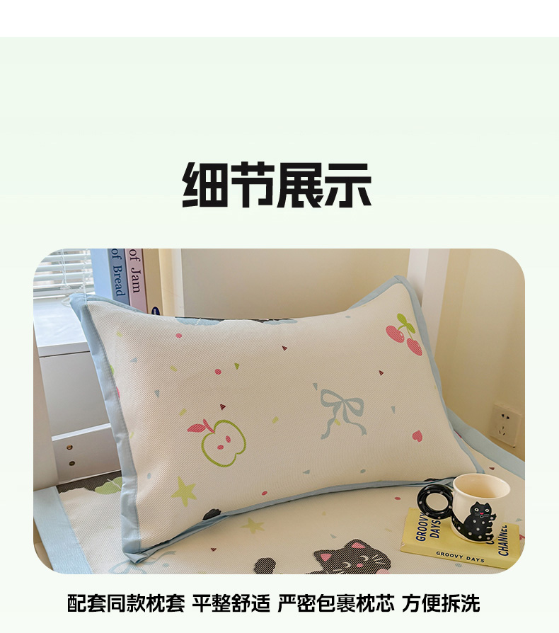 商品名称:安哆啦家纺 2025新款A类小清新卡通学生季宿舍床儿童用冰藤凉席席子两件套 冰藤席-黑猫日记