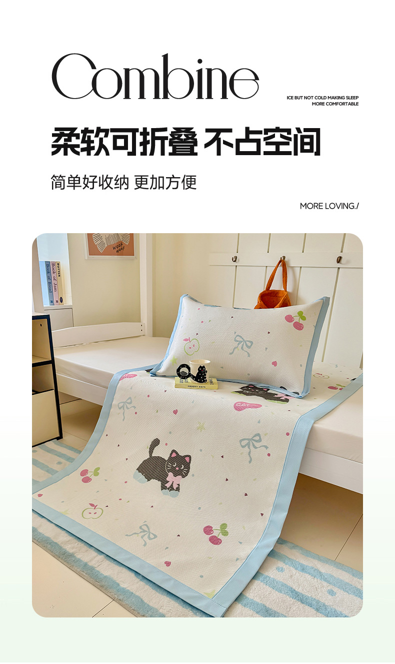 安哆啦家纺 2025新款A类小清新卡通学生季宿舍床儿童用冰藤凉席席子两件套 冰藤席-黑猫日记