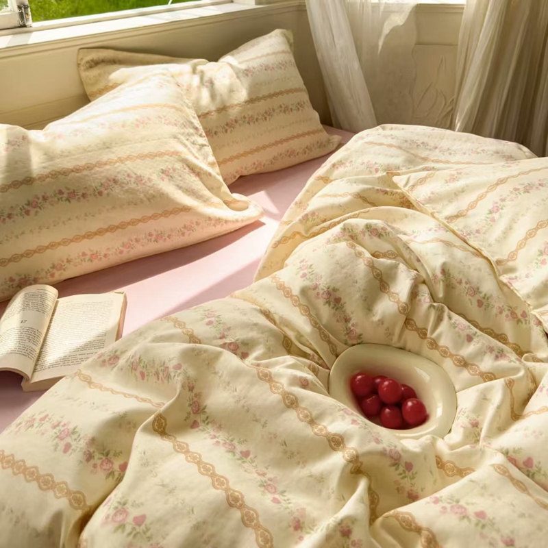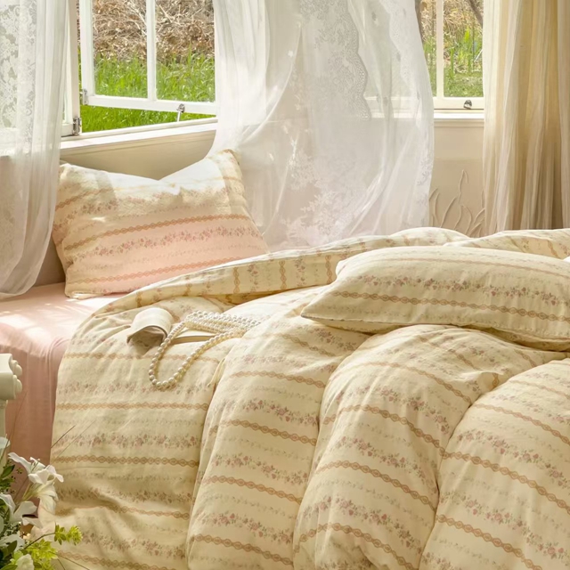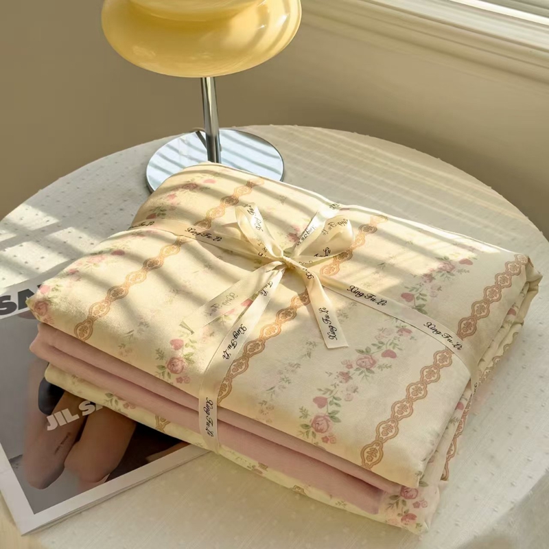 栩裕纺织 2025新款全棉双层纱四件套 蕾丝少女