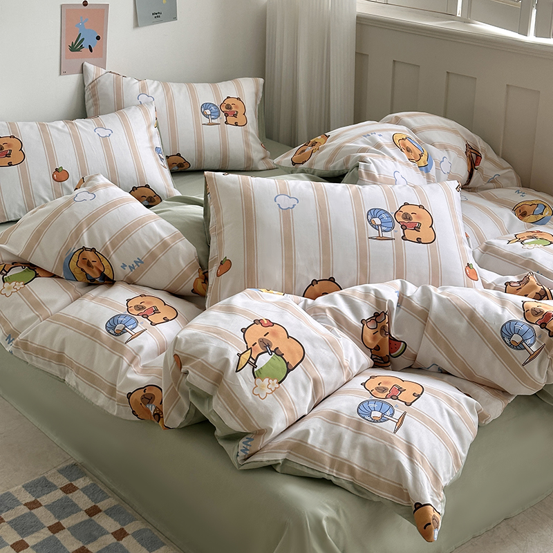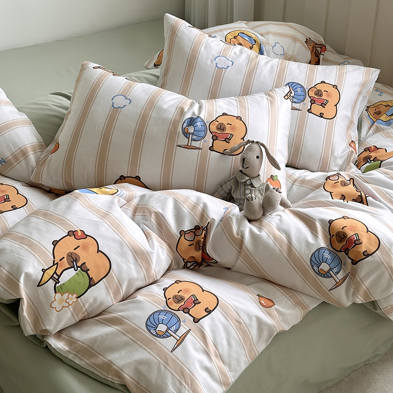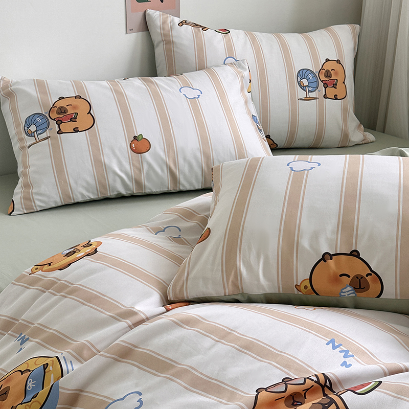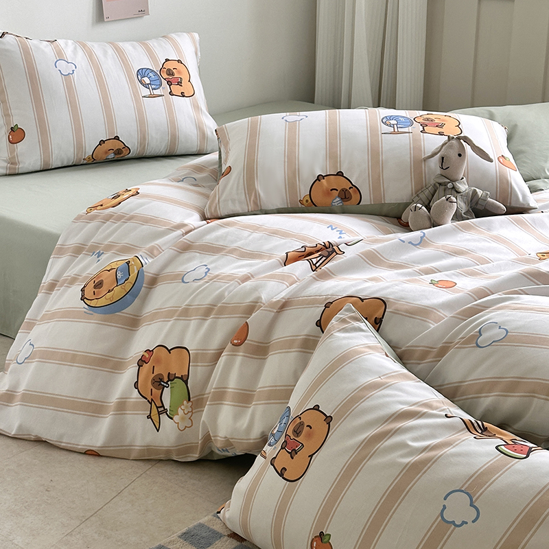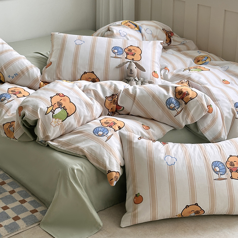 徕米家居 2025新款全棉13372小圆网卡皮吧啦套件 条纹卡皮巴拉