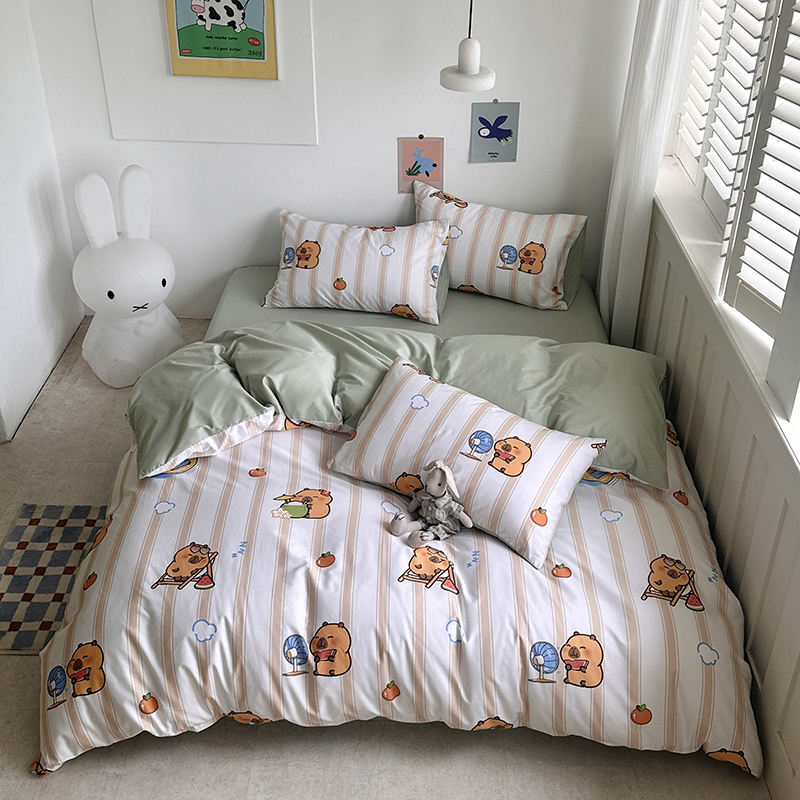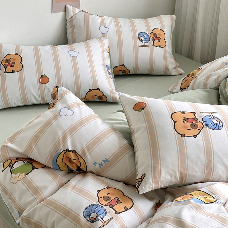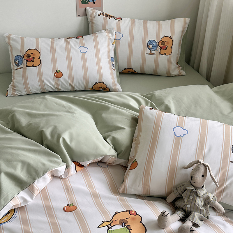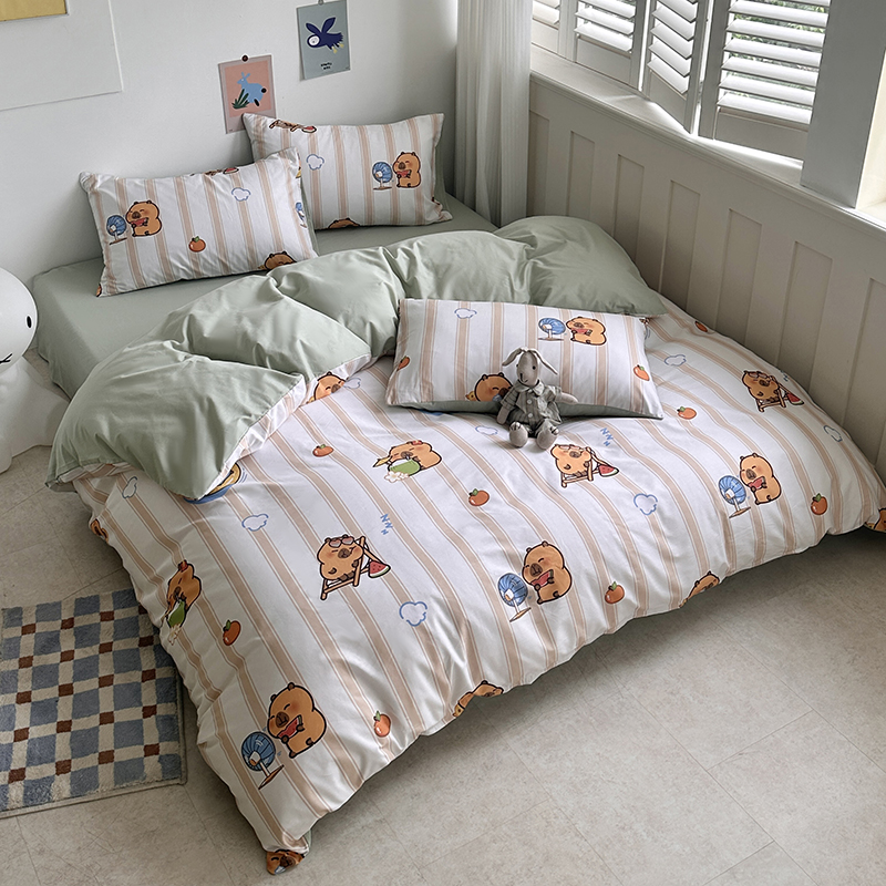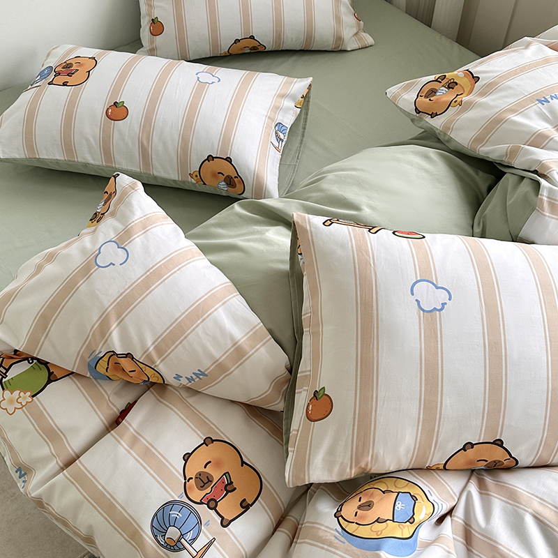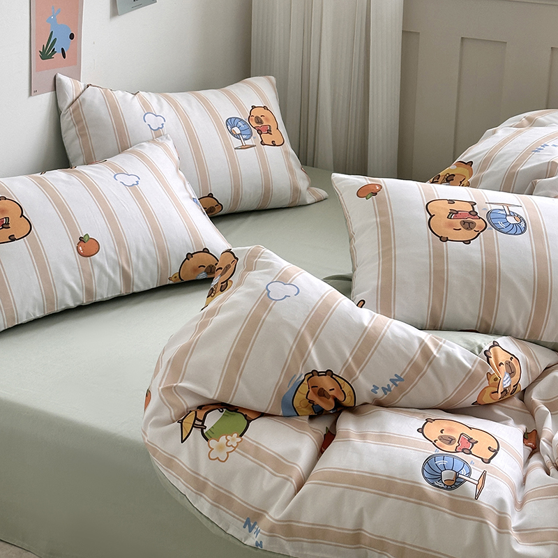 徕米家居 2025新款全棉13372小圆网卡皮吧啦套件 条纹卡皮巴拉
