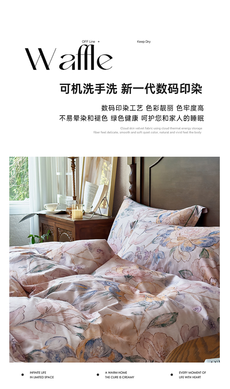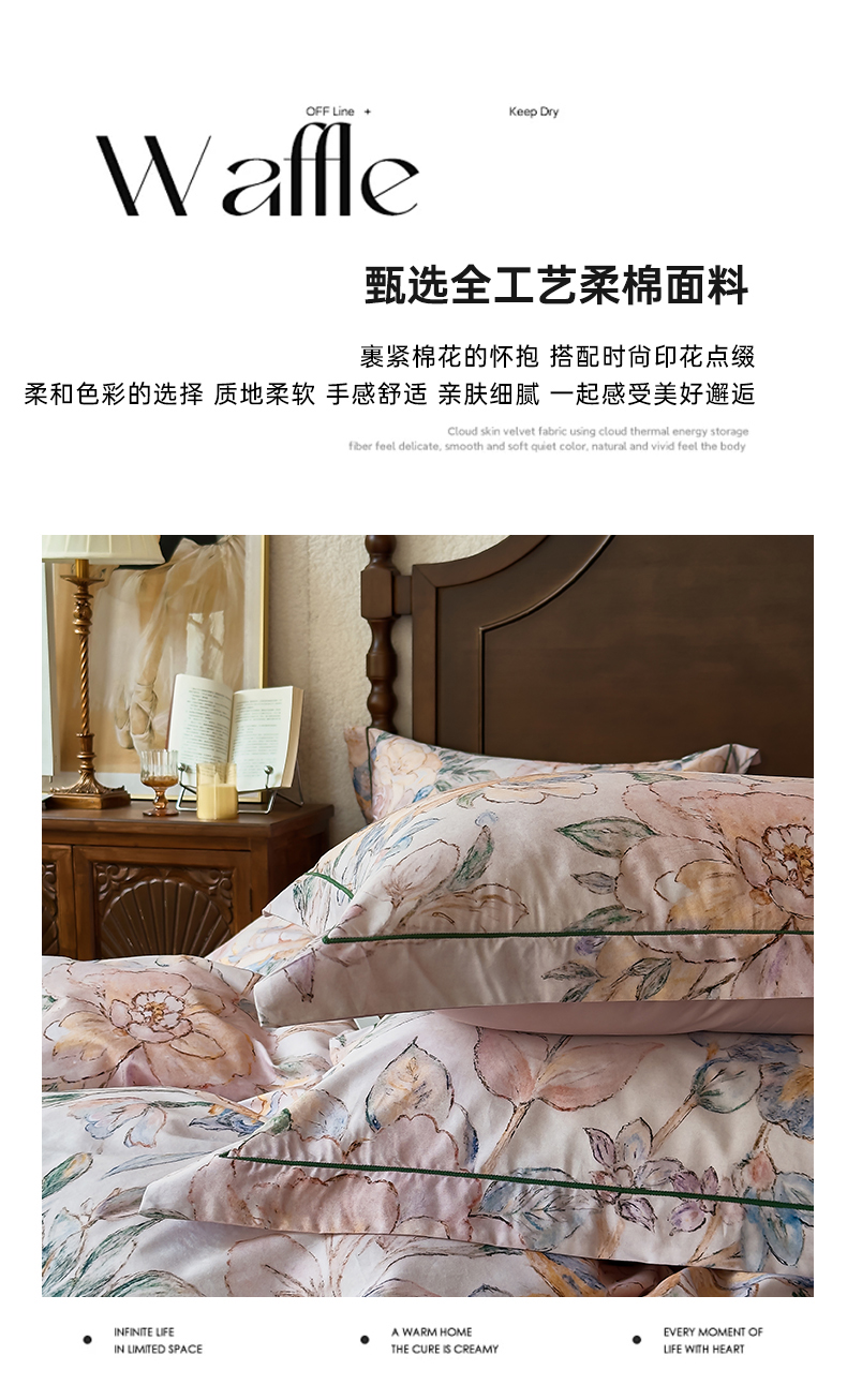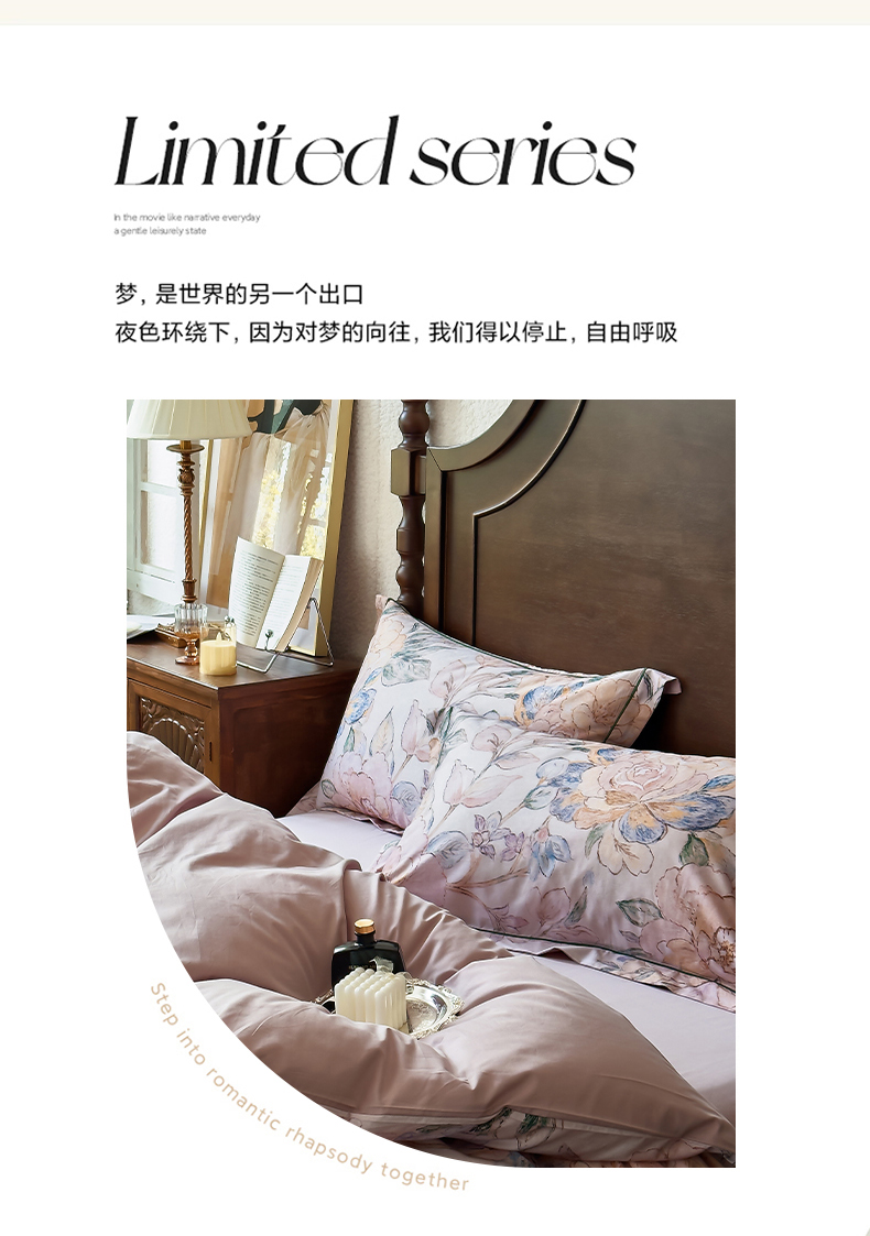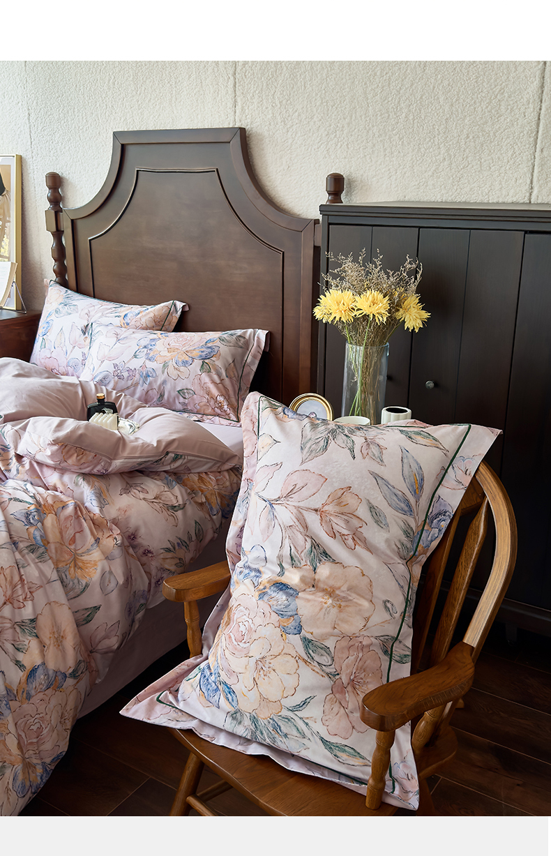 (总)由丽家纺 2025新款亲肤舒适全棉纯棉臻棉数码印花四件套系列,繁花似锦,感棉-粉,金溪-灰,金溪-咖,茂林-兰,明羽-黄,沐恩-绿,野玫瑰-紫,感棉-绿,玫瑰颂-粉