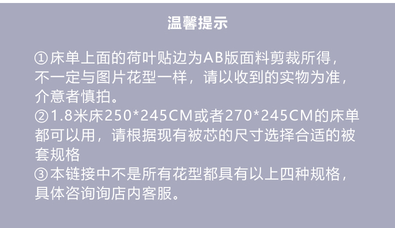 3、通州区市场监督局友情提醒,近期涉及到床上用品不褪色不掉毛不缩水的投诉和以世界知名品牌图案为面料的床品举报较多。请各商家自检自查,对照整改或进行下架处理。