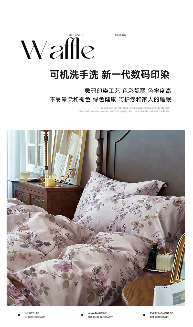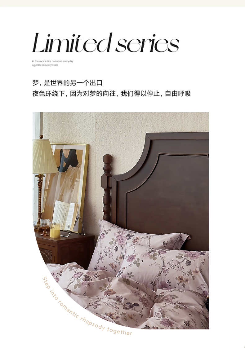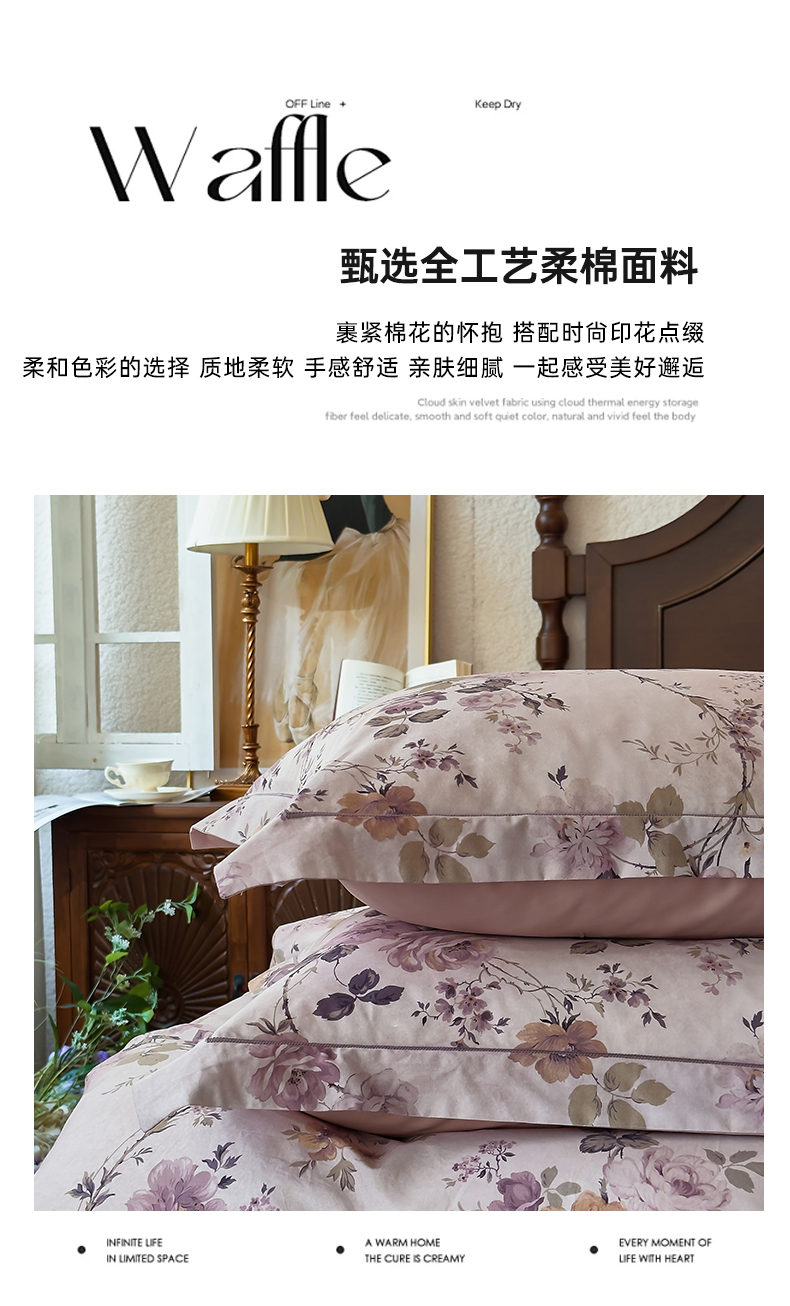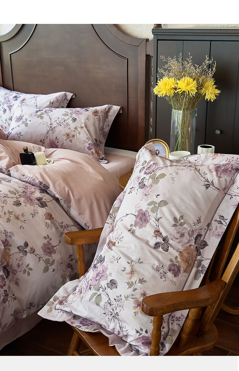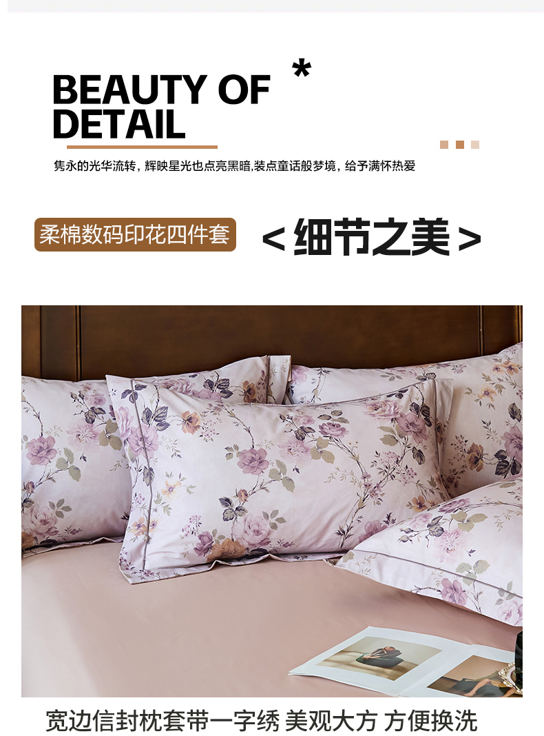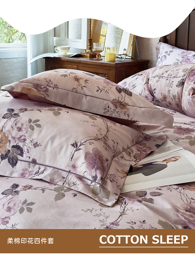(总)由丽家纺 2025新款亲肤舒适全棉纯棉臻棉数码印花四件套系列,繁花似锦,感棉-粉,金溪-灰,金溪-咖,茂林-兰,明羽-黄,沐恩-绿,野玫瑰-紫,感棉-绿,玫瑰颂-粉