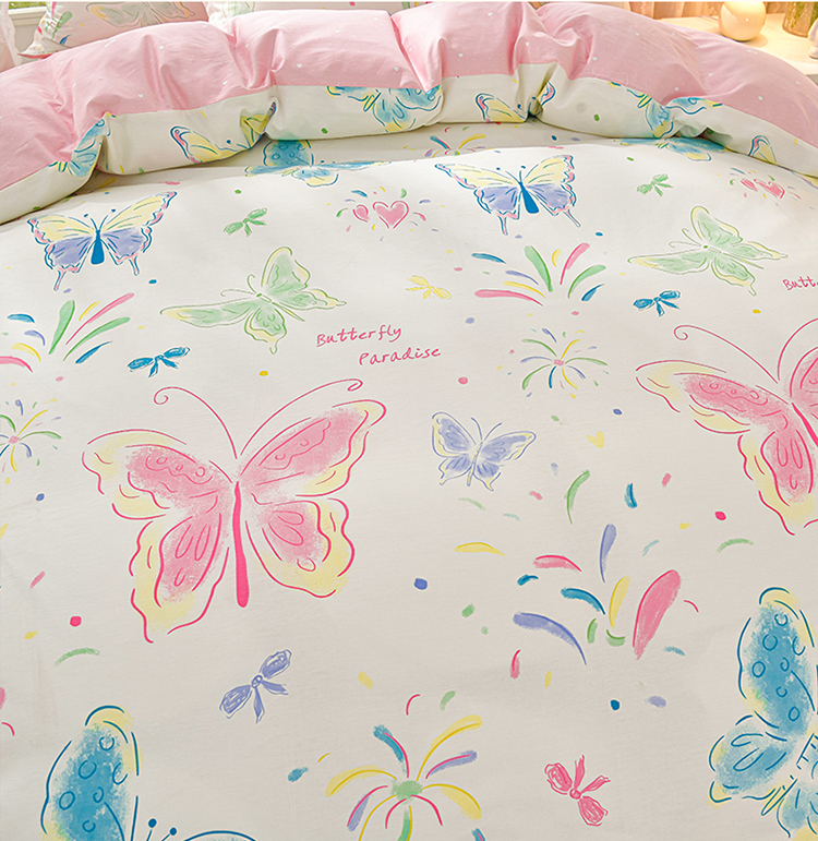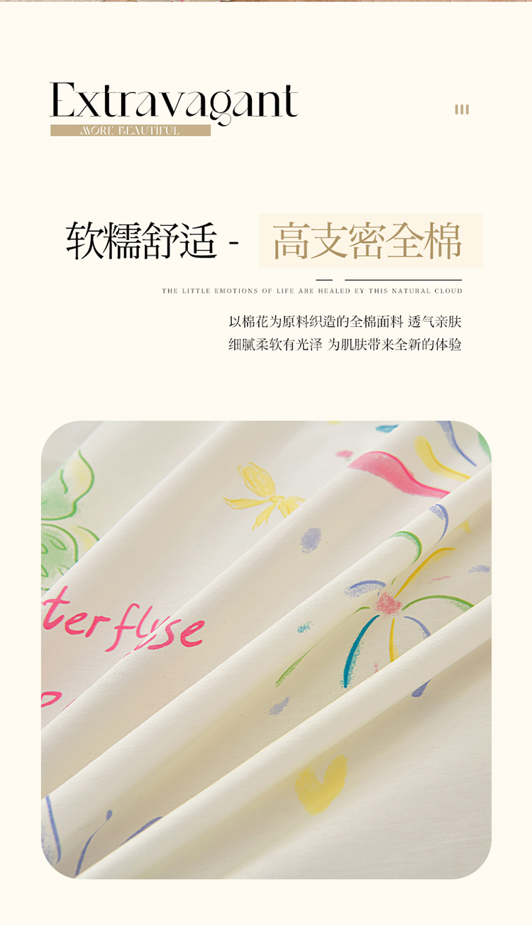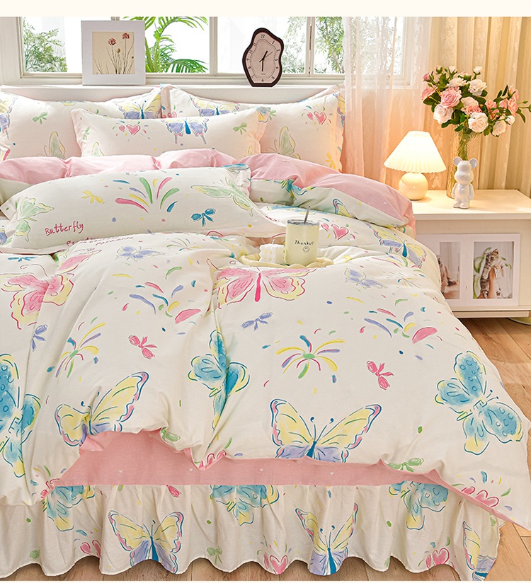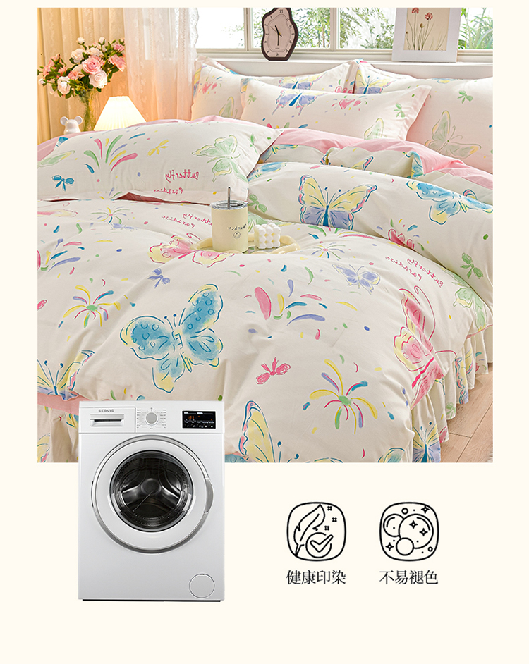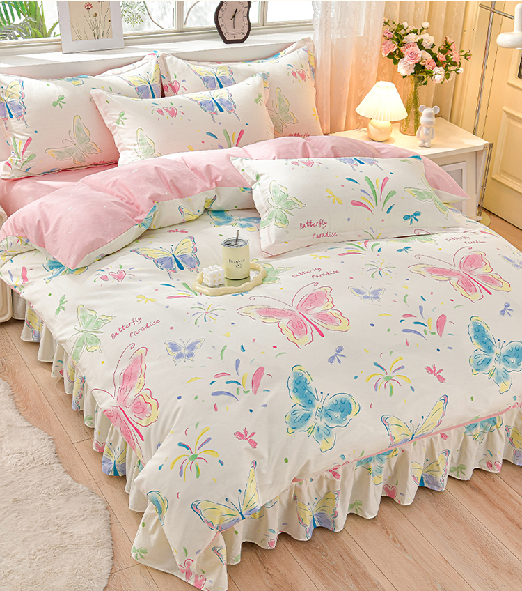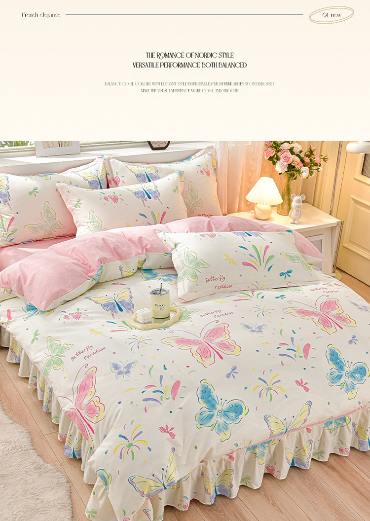 商品名称:绘萱家居 2025新款100%全棉床裙款斜纹印花四件套 轻舞飞扬