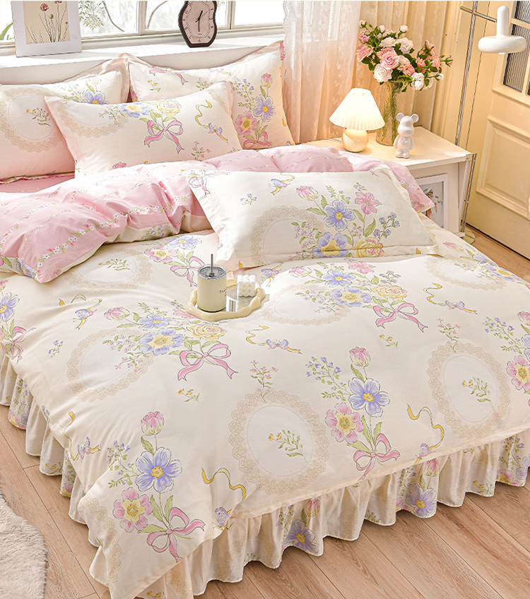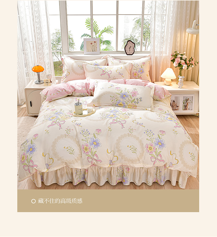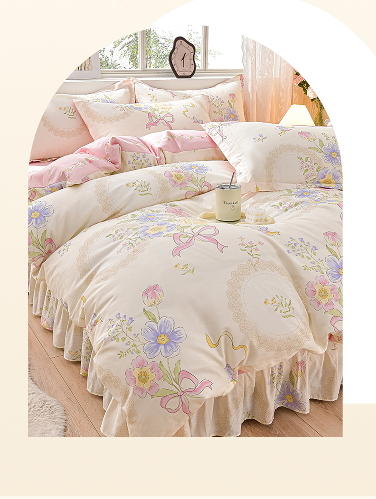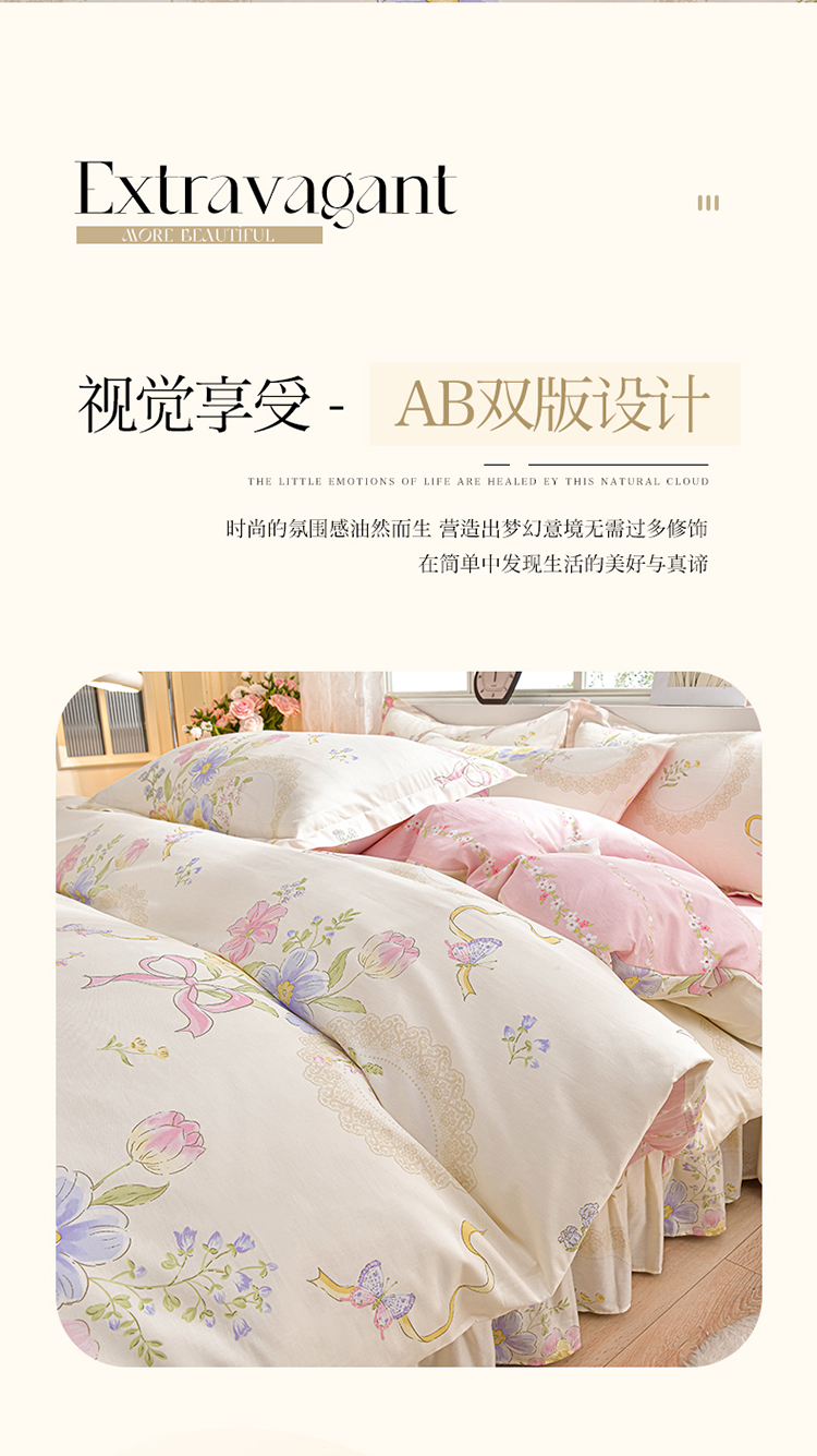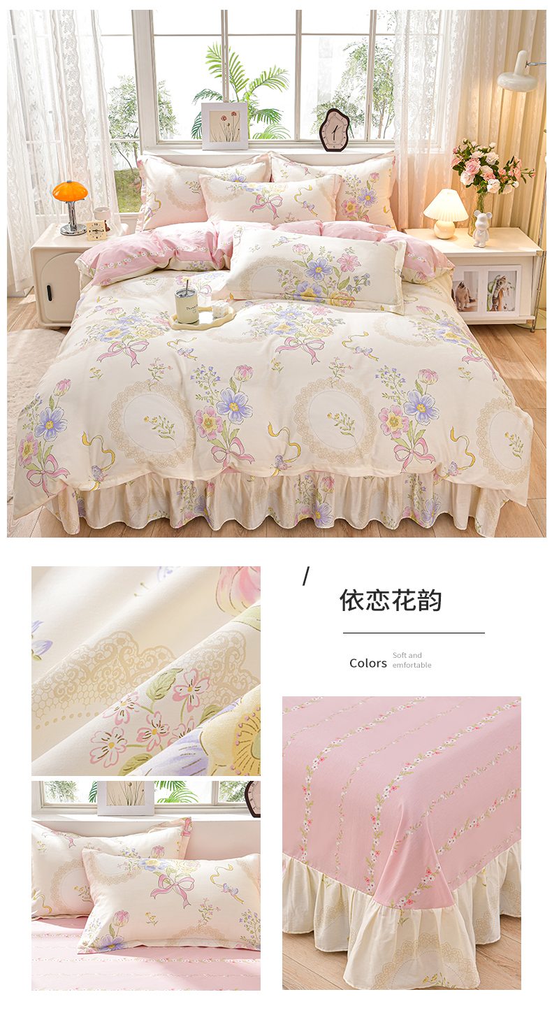 商品名称:绘萱家居 2025新款100%全棉床裙款斜纹印花四件套 依恋花韵