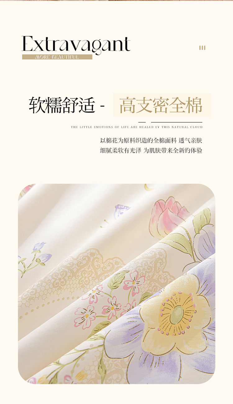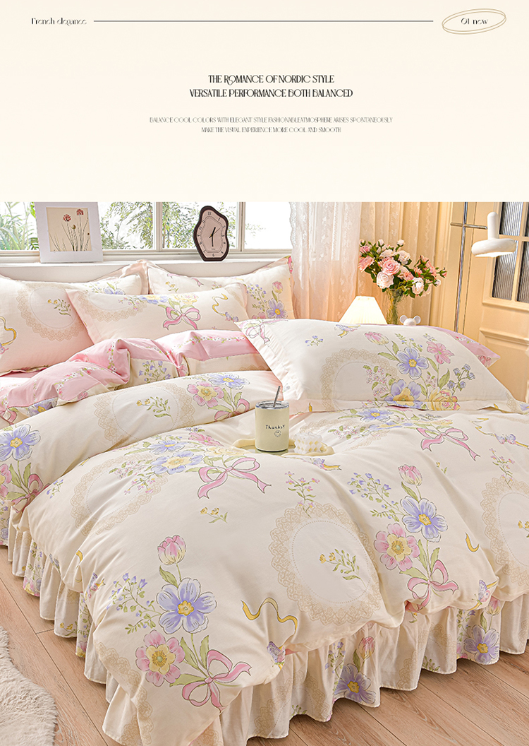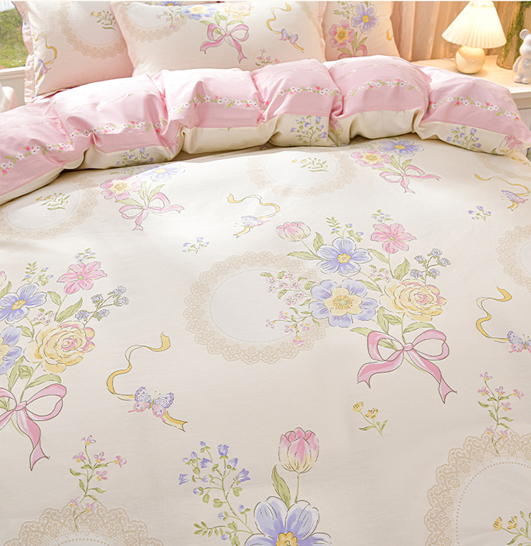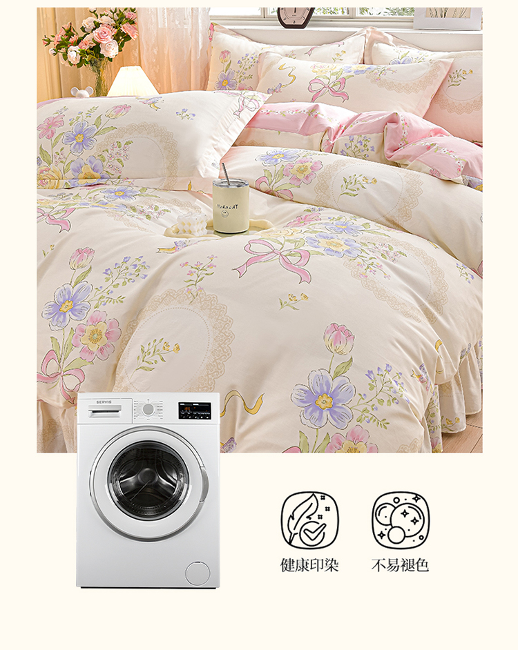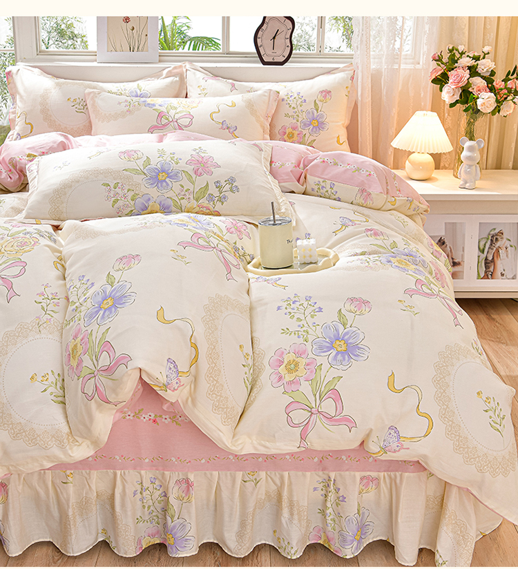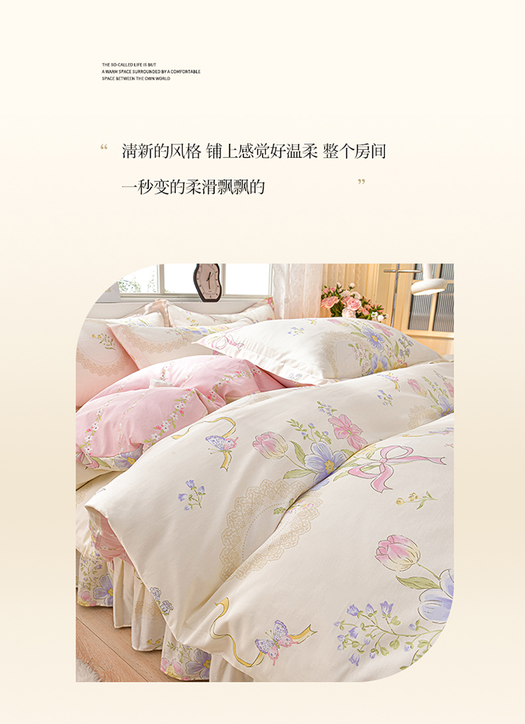 商品名称:绘萱家居 2025新款100%全棉床裙款斜纹印花四件套 依恋花韵