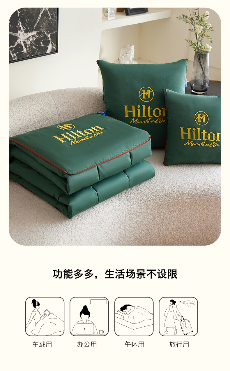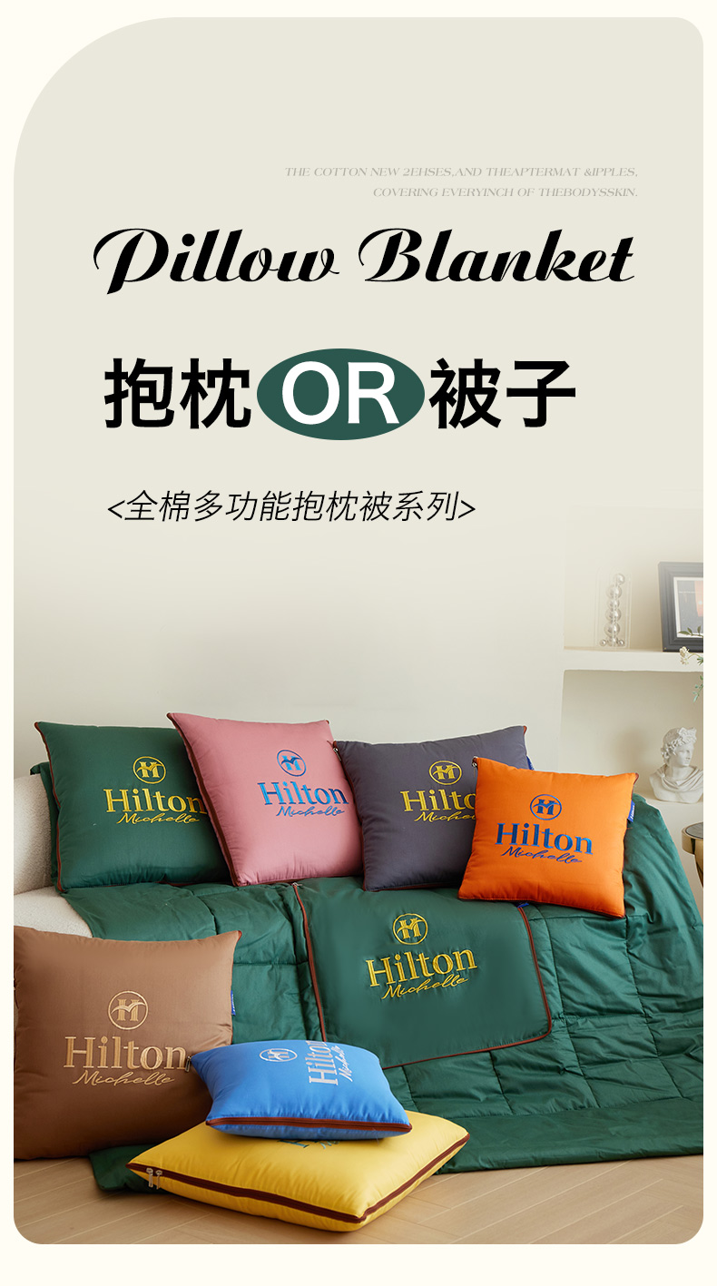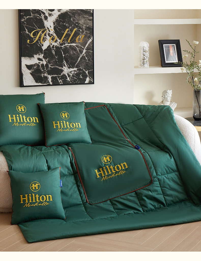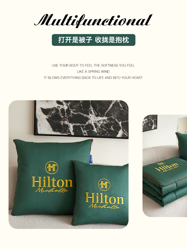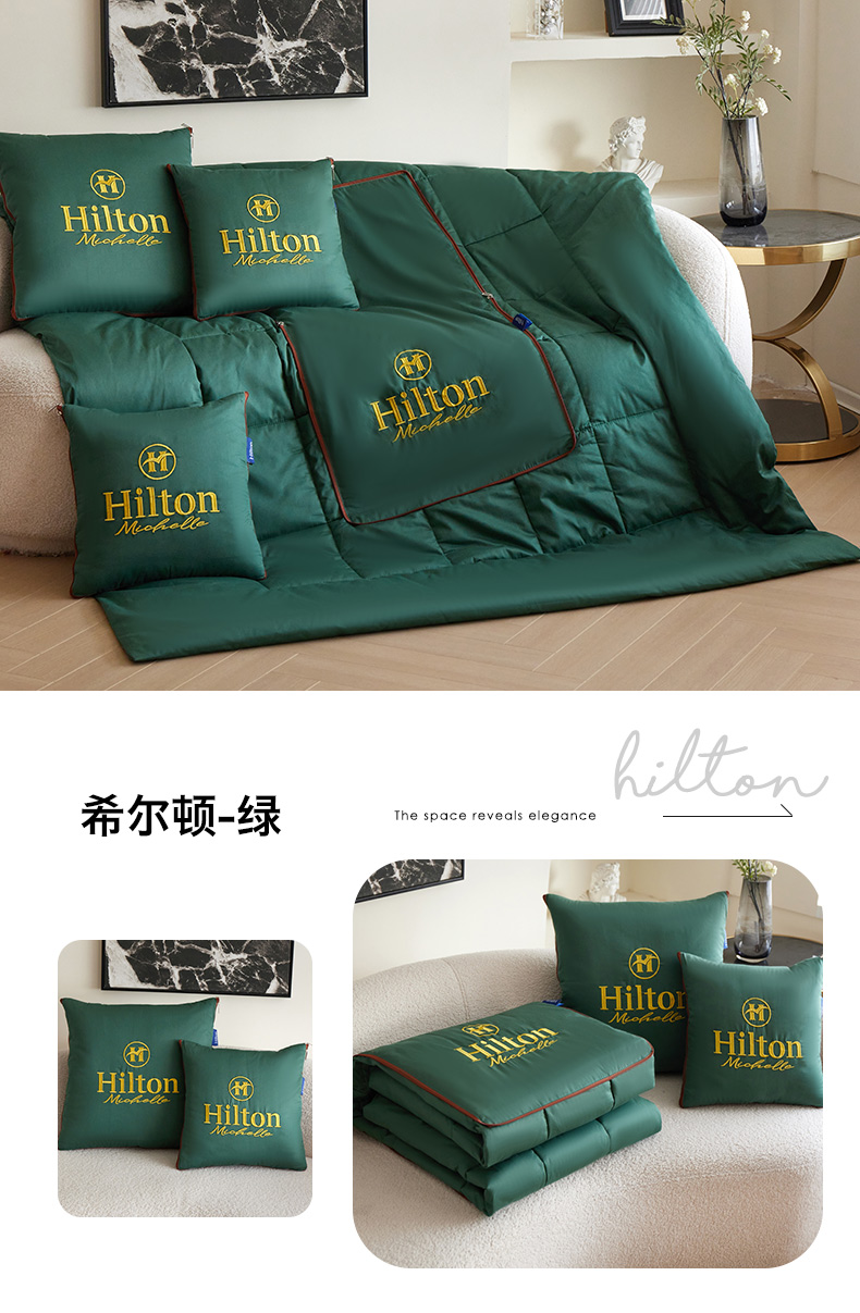 商品名称:宝马家纺(原梦童画) 2025新款全棉刺绣希尔顿四季款抱枕被 希尔顿-绿