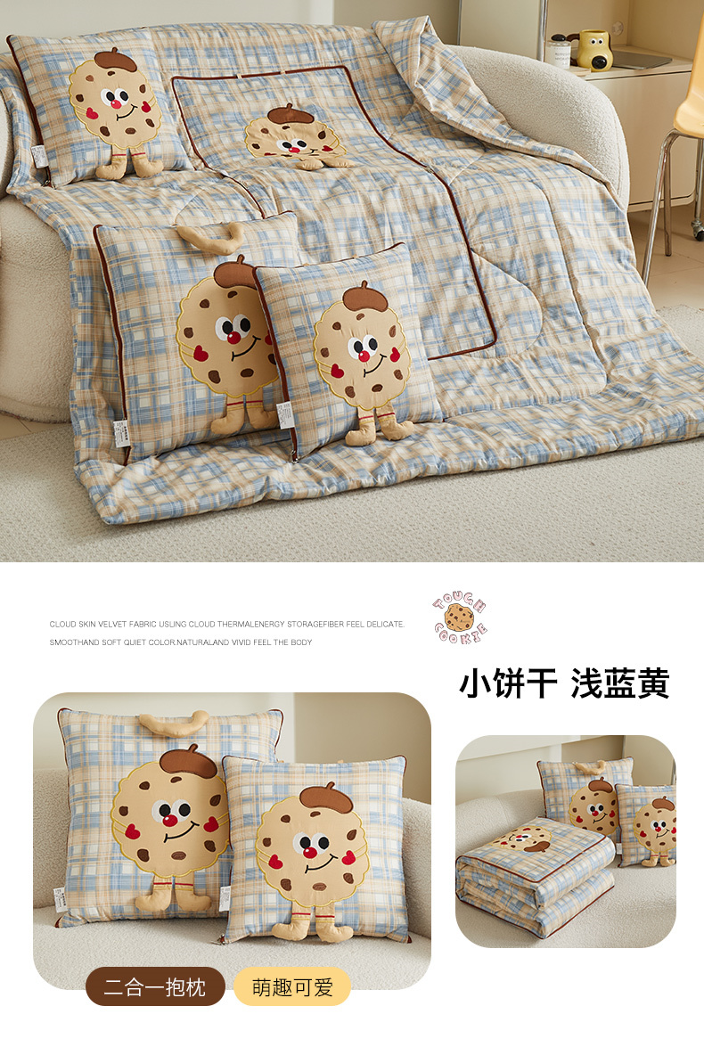 商品名称:宝马家纺(原梦童画) 2025新款全棉四季款小饼干抱枕被 小饼干-浅蓝黄