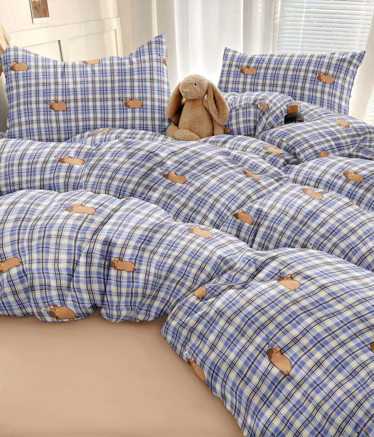 张先生的店 兔毛印花面料盖毯/套件面料-床模图