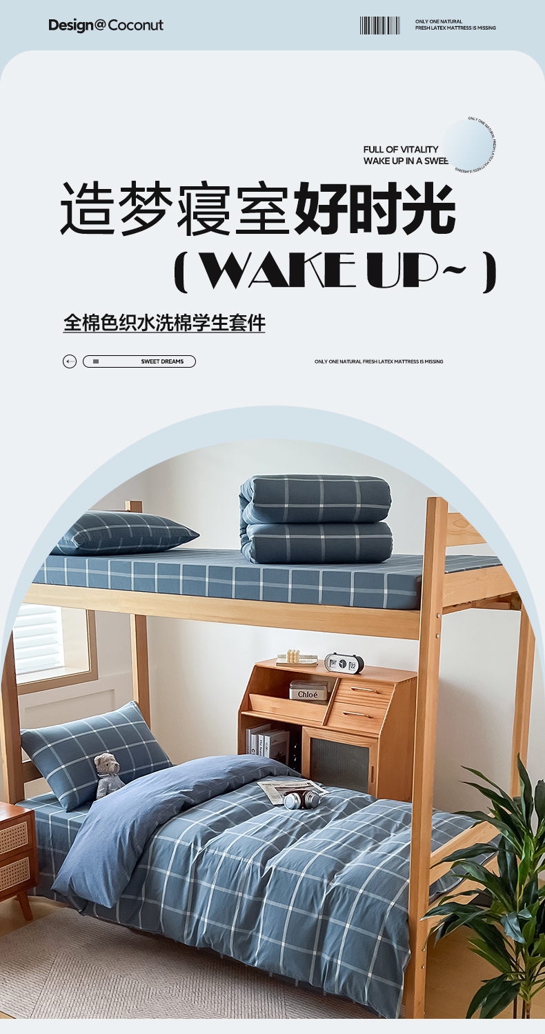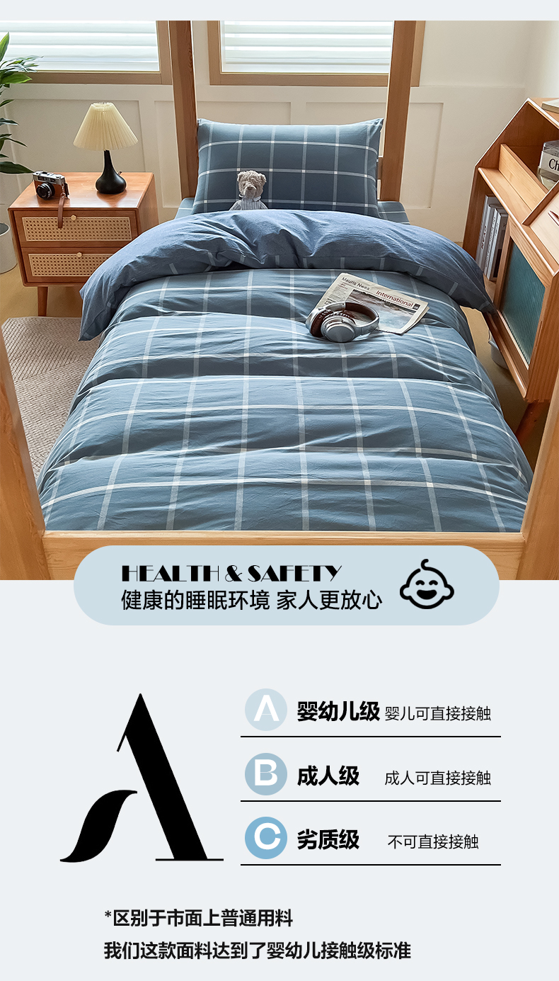 商品名称:鸣升家纺 2025新款全棉纯棉色织水洗棉学生三件套 柏拉图兰