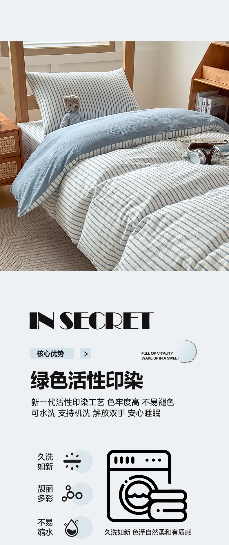 商品名称:鸣升家纺 2025新款全棉纯棉色织水洗棉学生三件套 青春-海兰