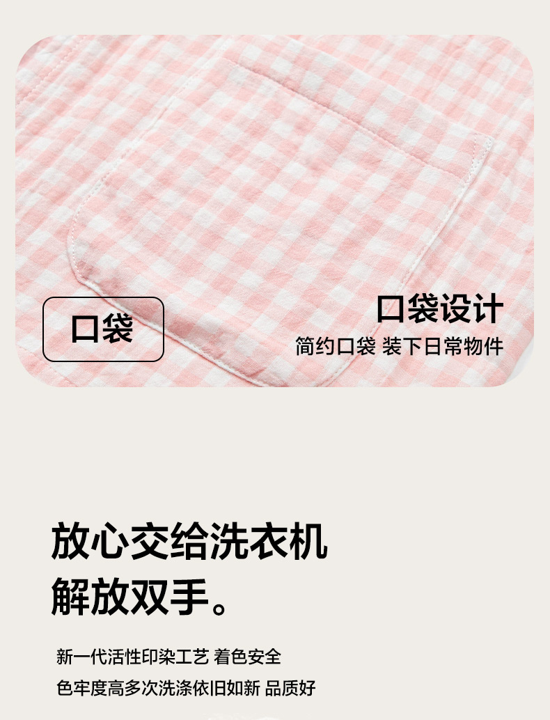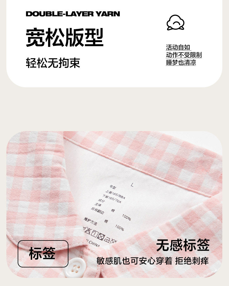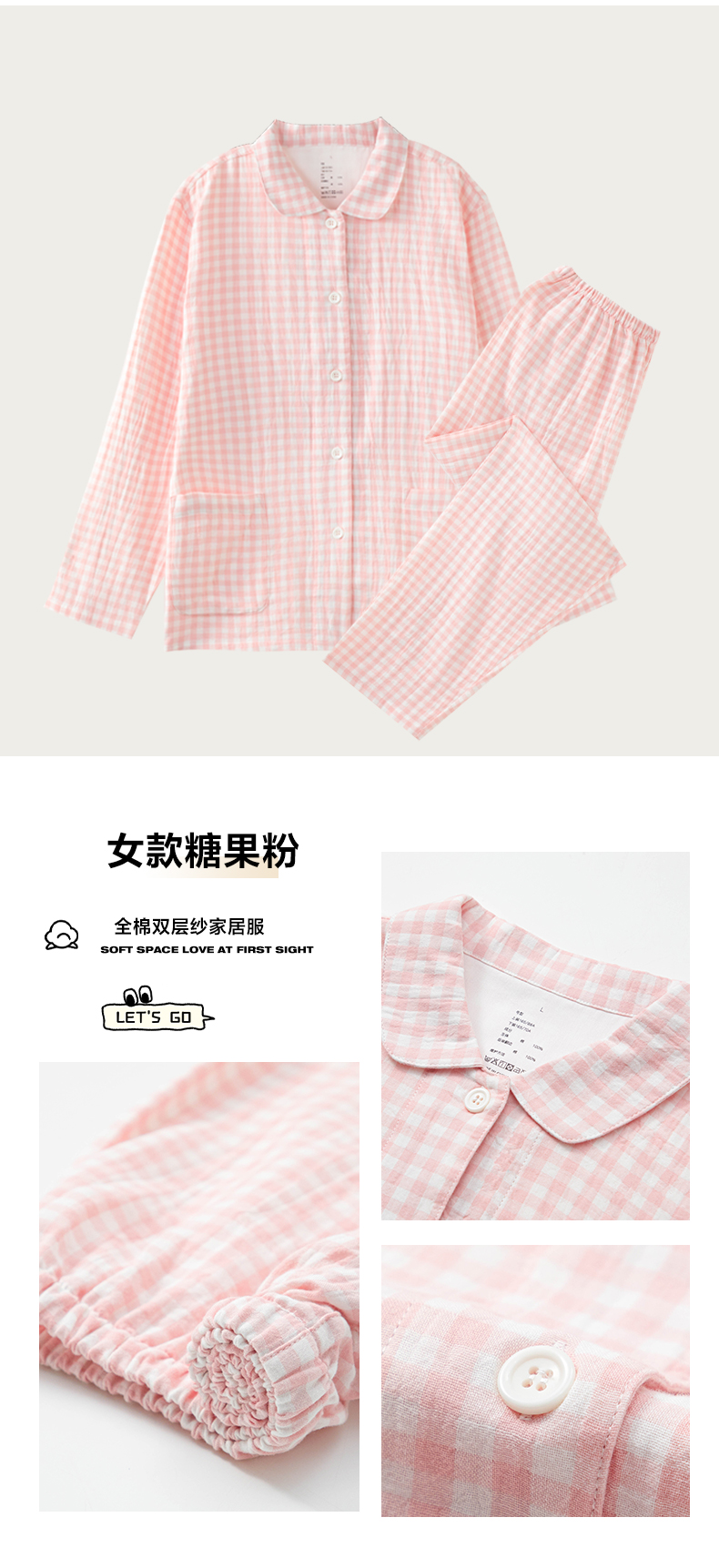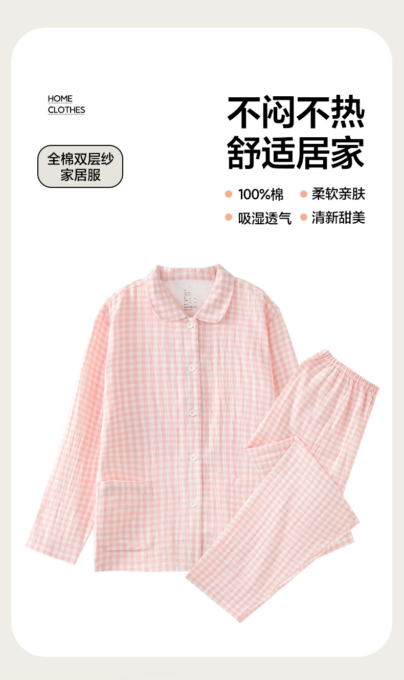 玖弘家居 2025新款全棉双层纱长袖家居服【控价 抖音69.9 视频号 69.9 小红书 89】 女款糖果粉长袖