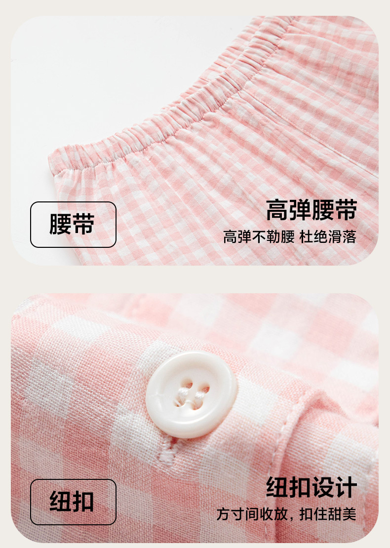 商品名称:玖弘家居 2025新款全棉双层纱长袖家居服【控价 抖音69.9 视频号 69.9 小红书 89】 女款糖果粉长袖