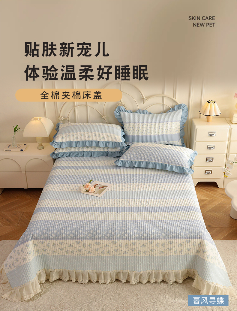 商品名称:美达家纺 2025新款全棉夹棉密道款床盖单品床盖床盖单件 暮风寻蝶(可定制)