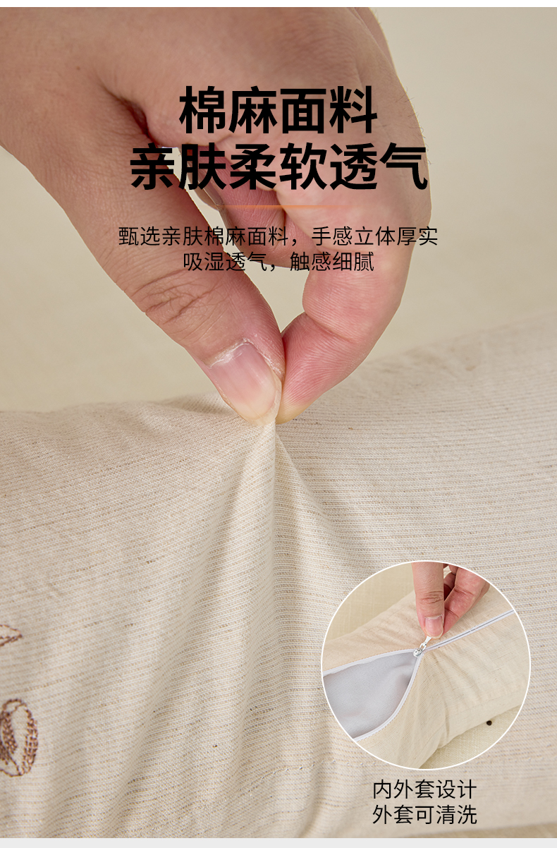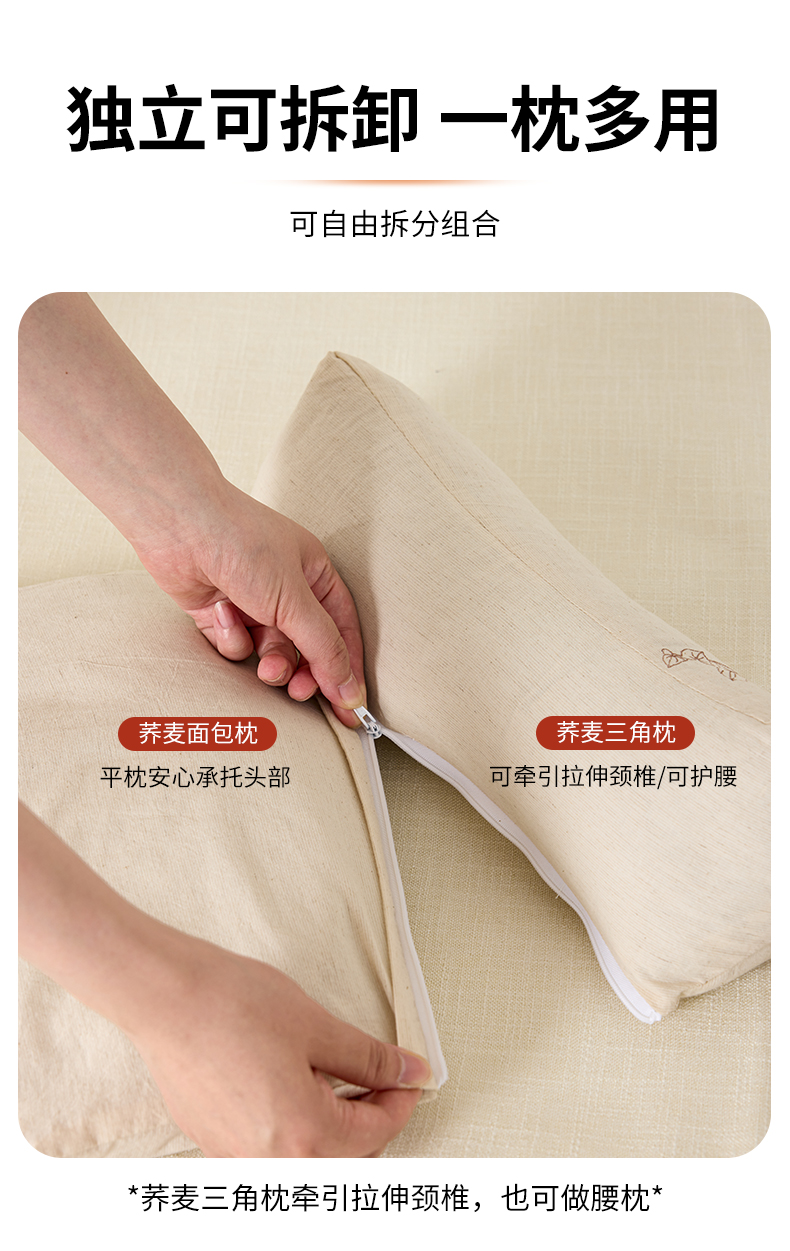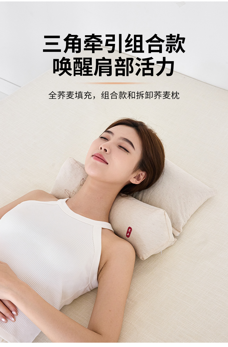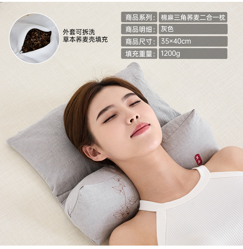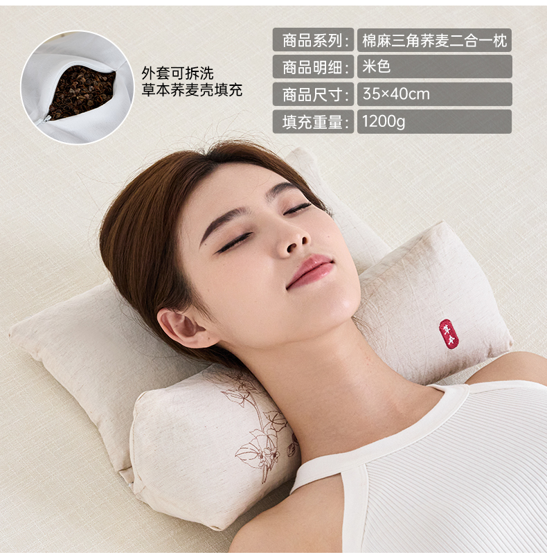 商品名称:(总)昕科 2025新款棉麻三角桥荞麦二合一组合枕芯-棉麻三角枕头草本荞麦壳牵