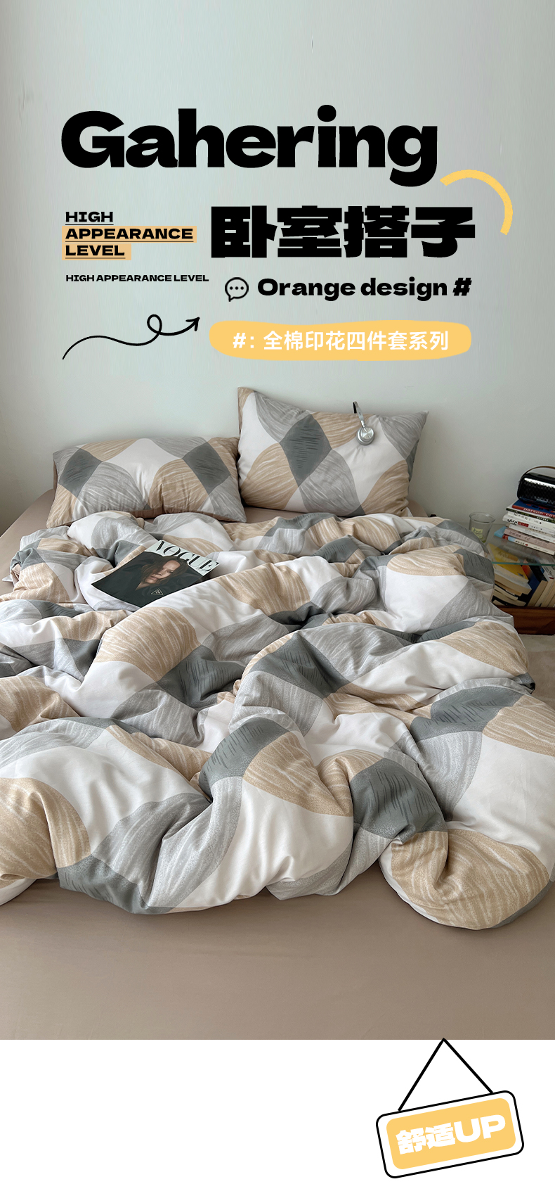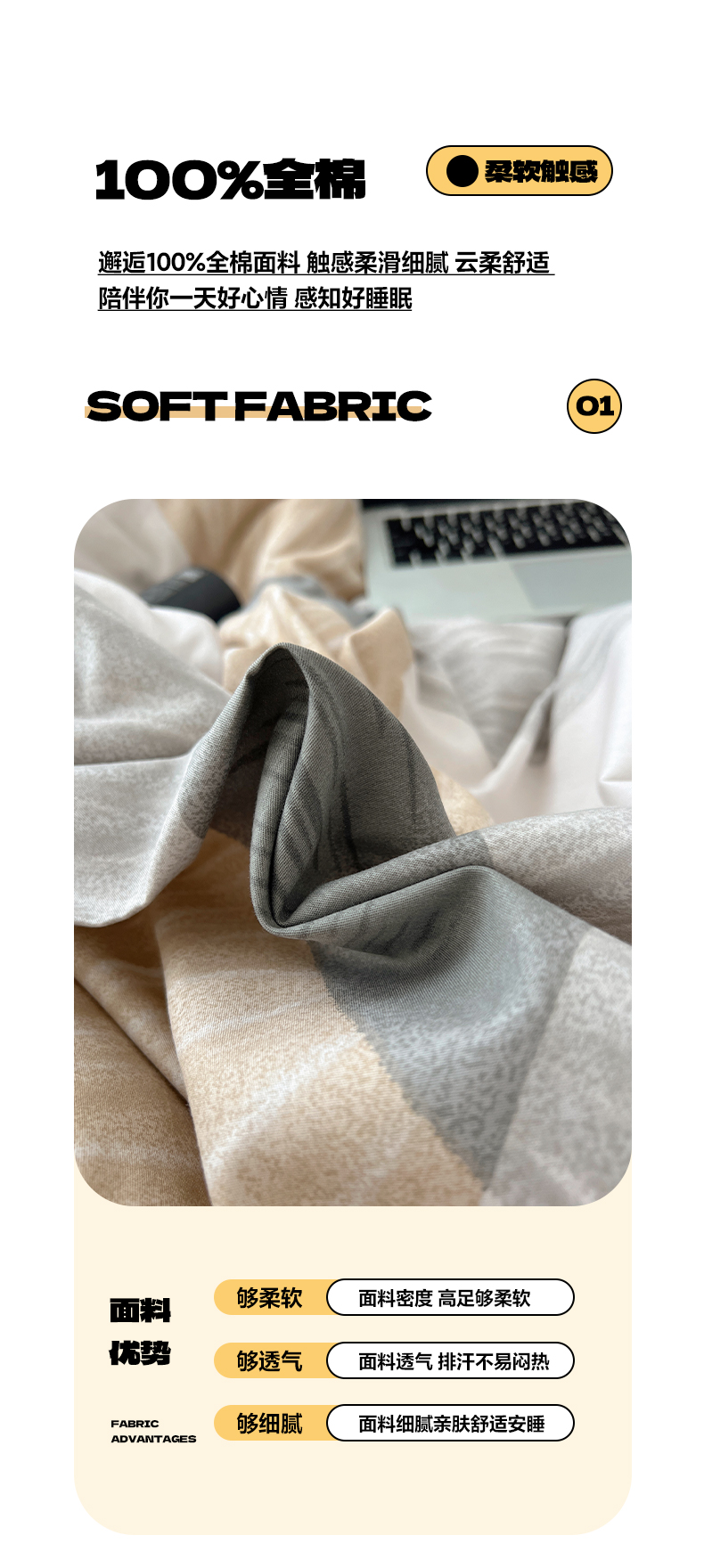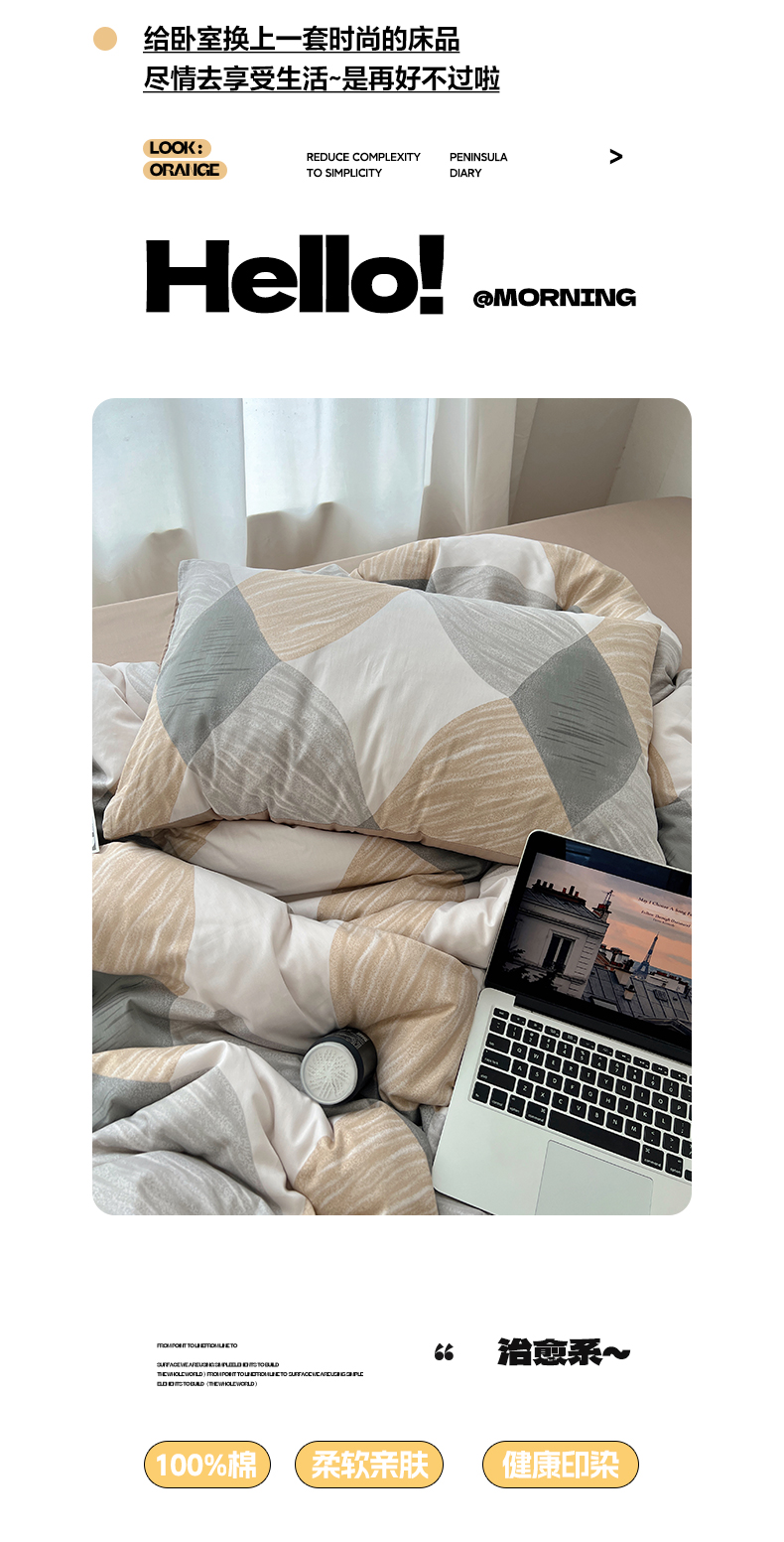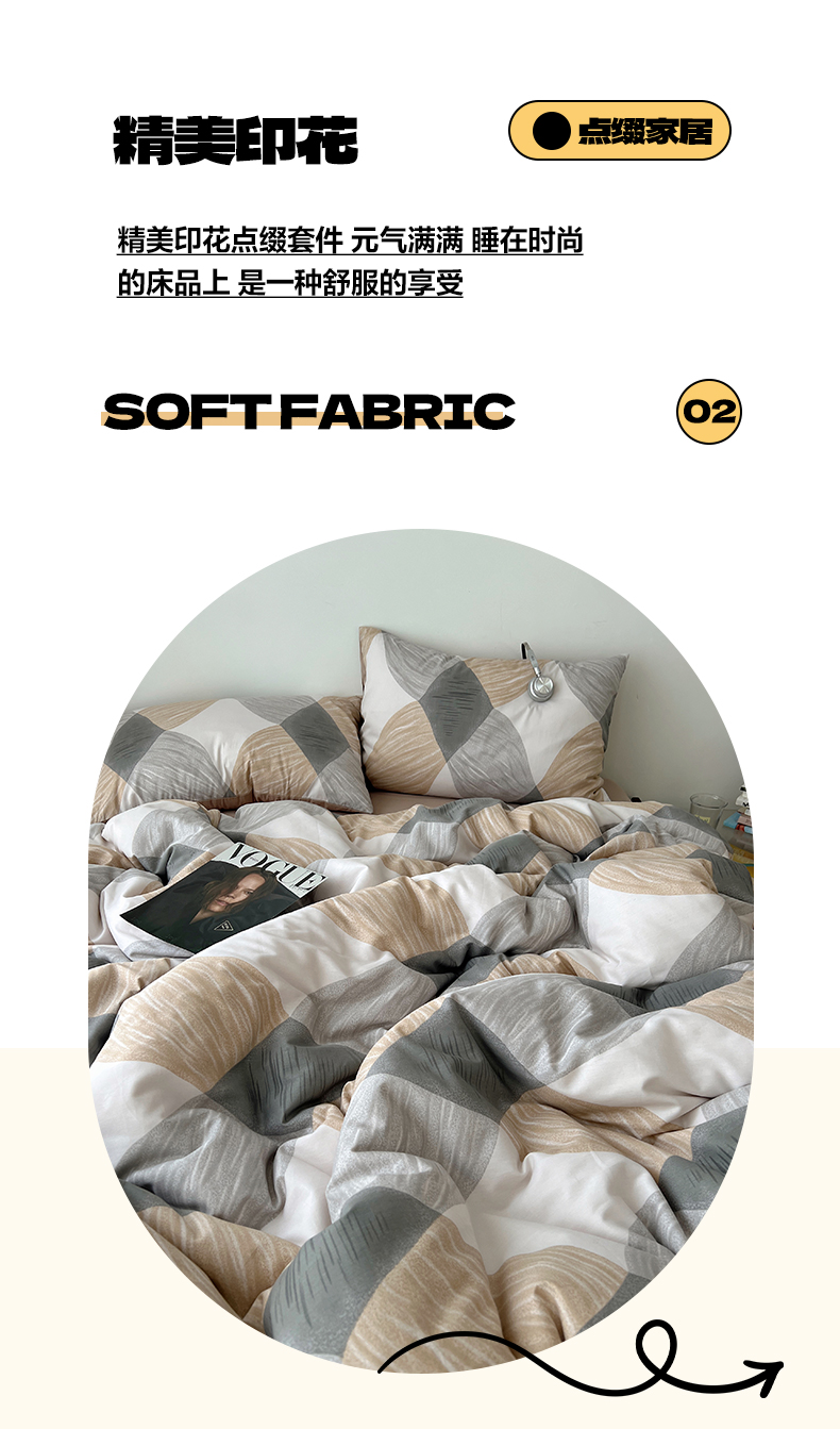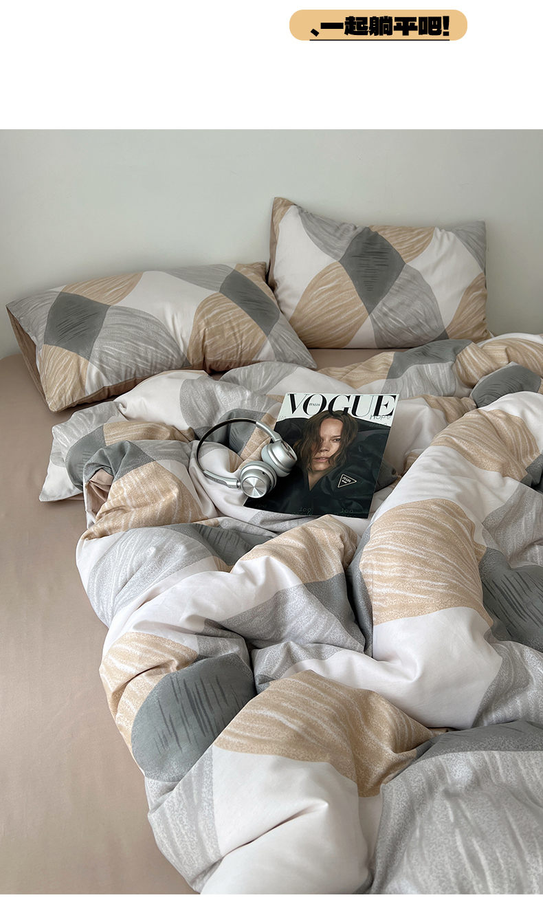 当前位置: 91家纺网 > 商品网购 > 床品套件 > 四件套 > 全棉普通四件套 > 雅居纺家纺 2025春夏新款全棉纯棉印花四件套 菱形卡其