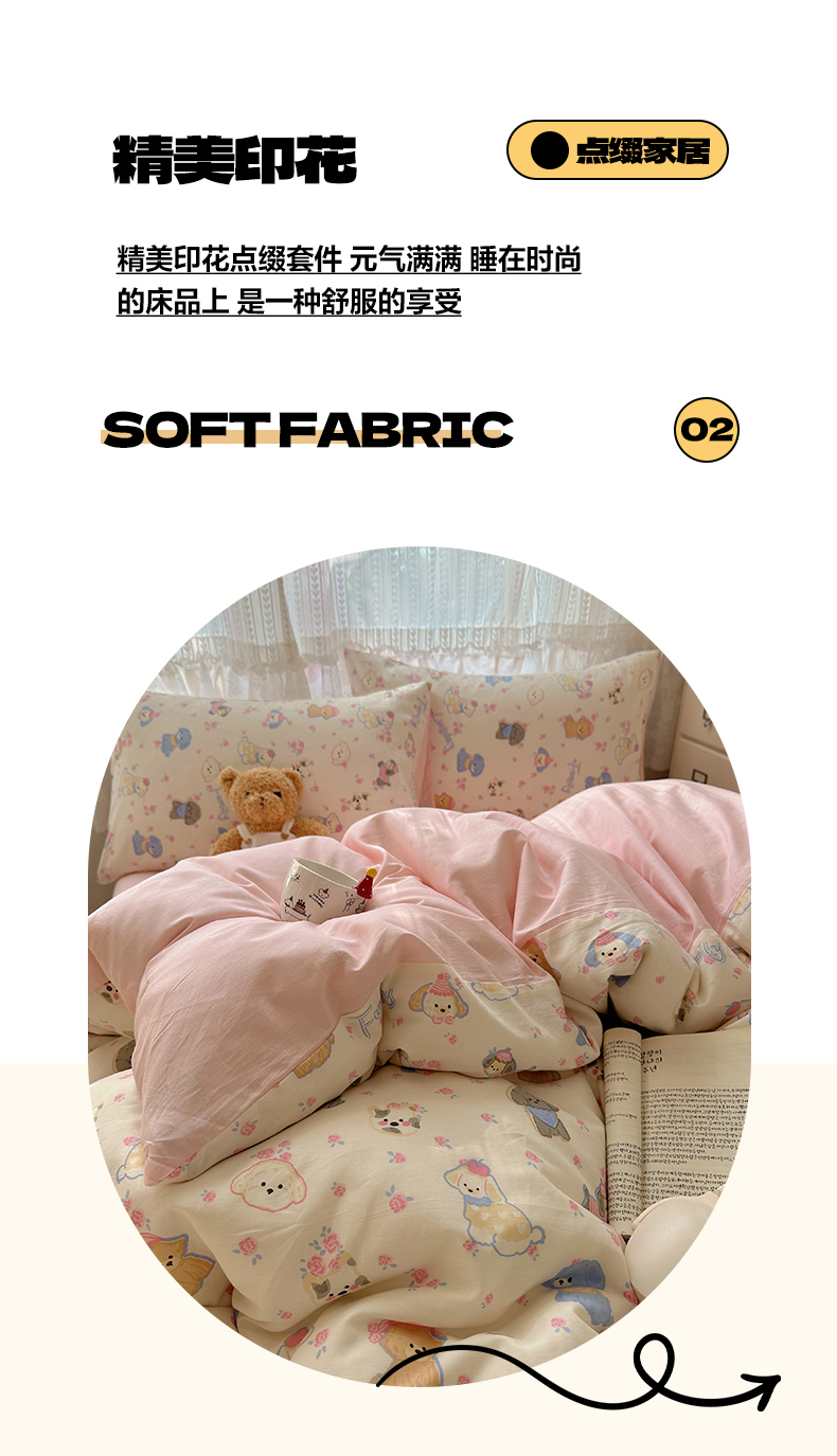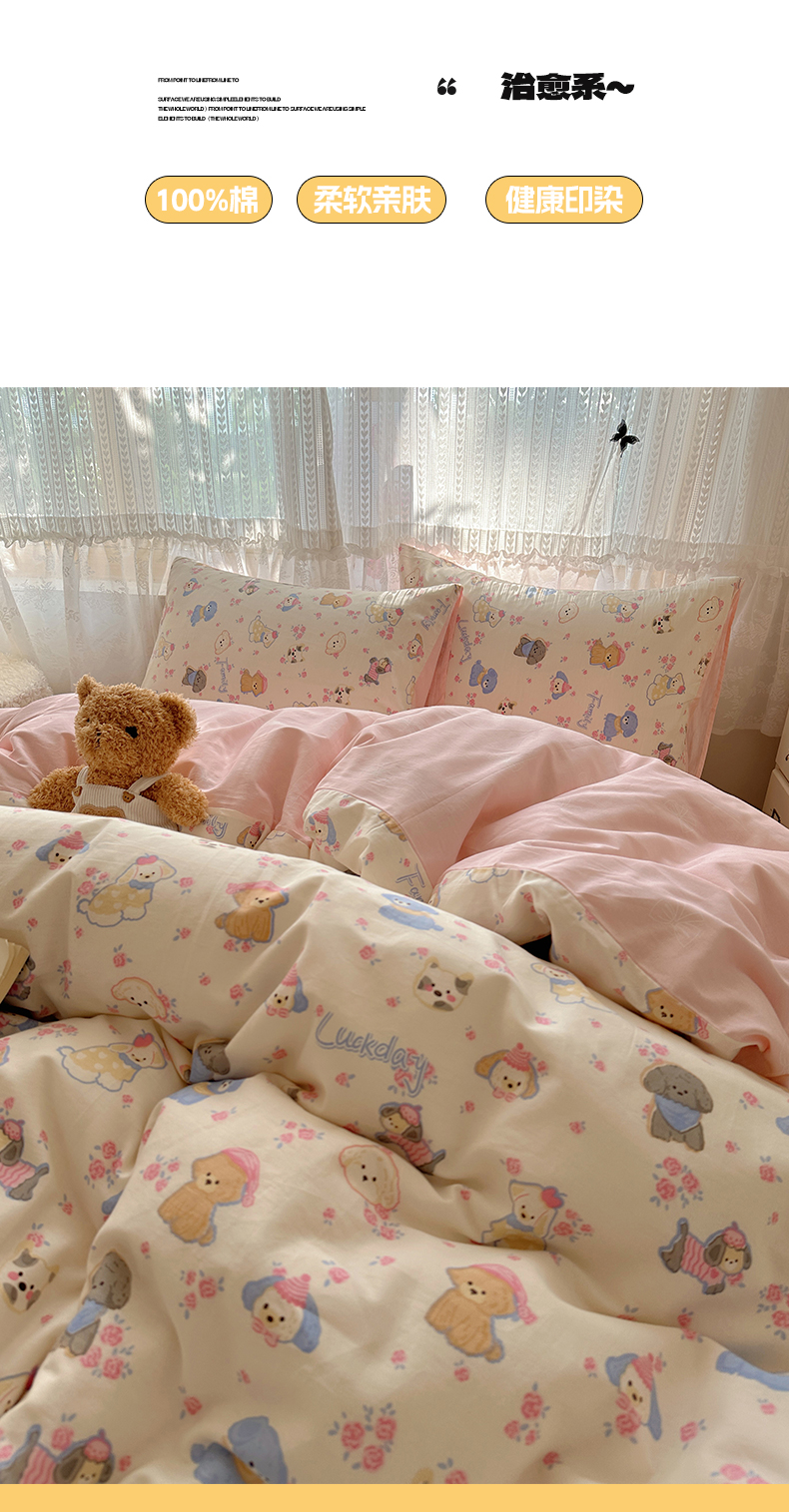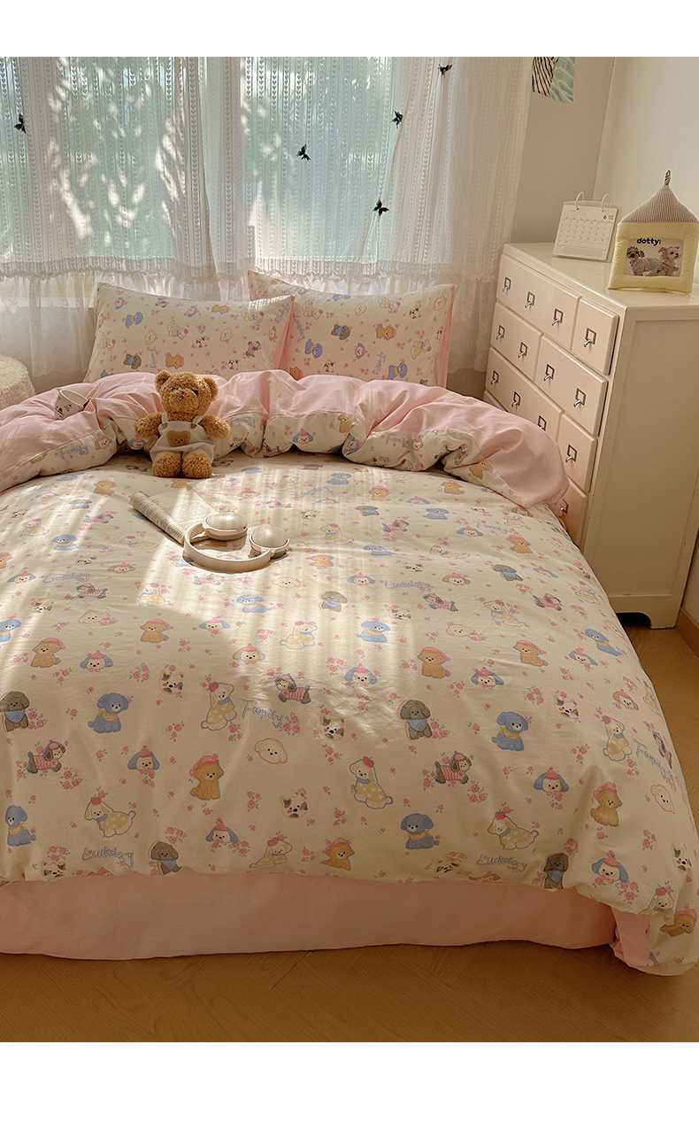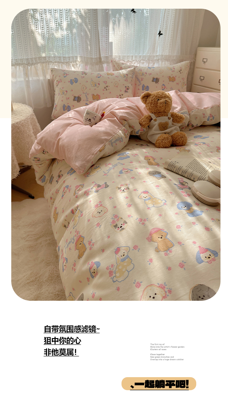 当前位置: 91家纺网 > 商品网购 > 床品套件 > 四件套 > 全棉普通四件套 > 雅居纺家纺 2025春夏新款全棉纯棉印花四件套 小狗派对