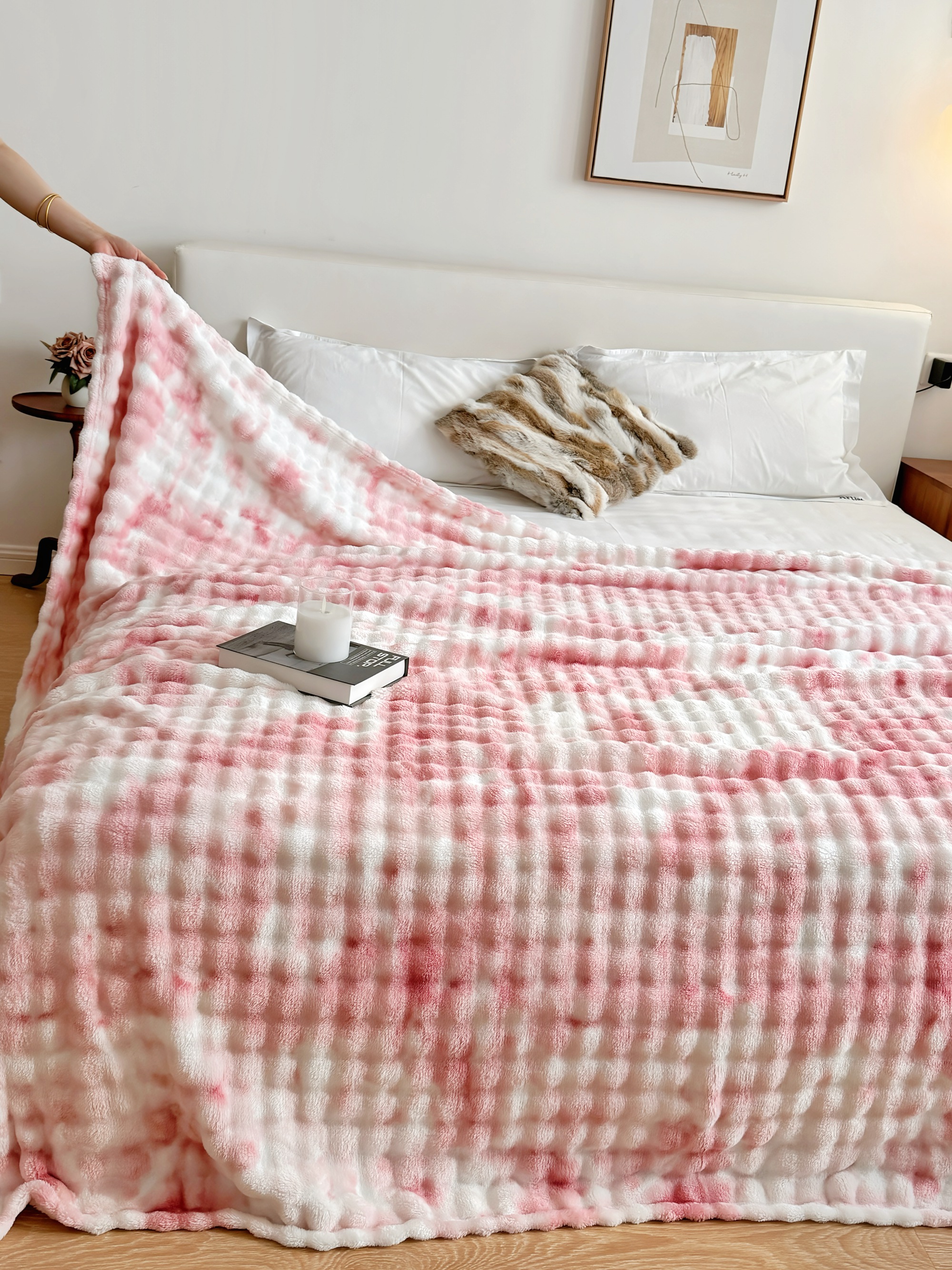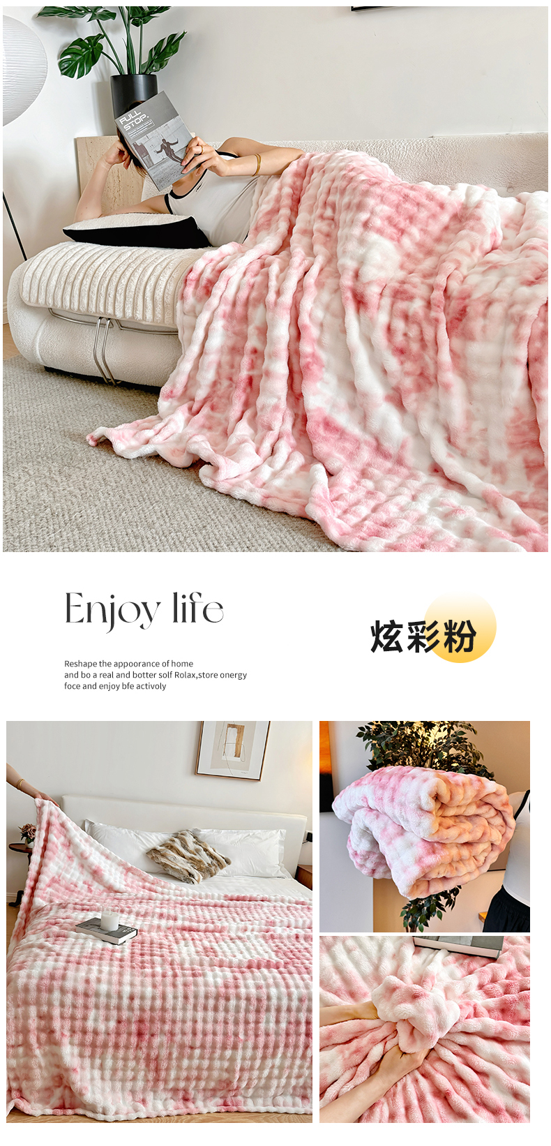 商品名称:兜米2025新款泡泡毛毯 炫彩粉