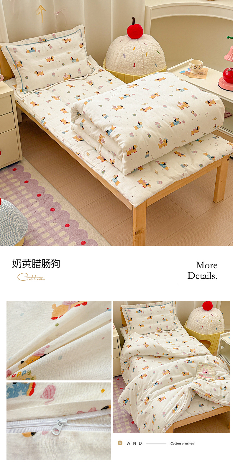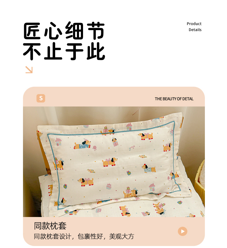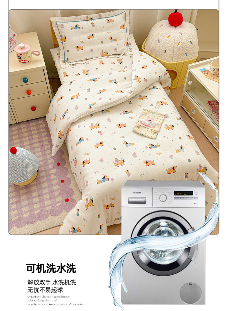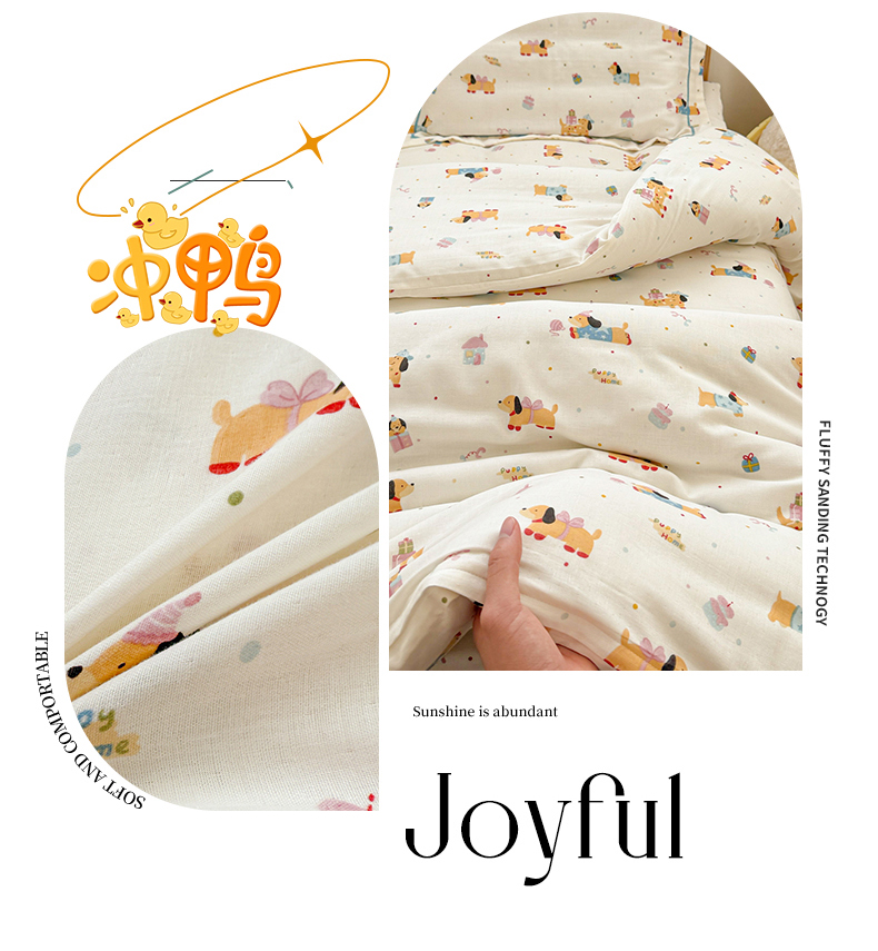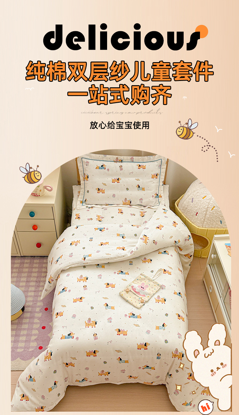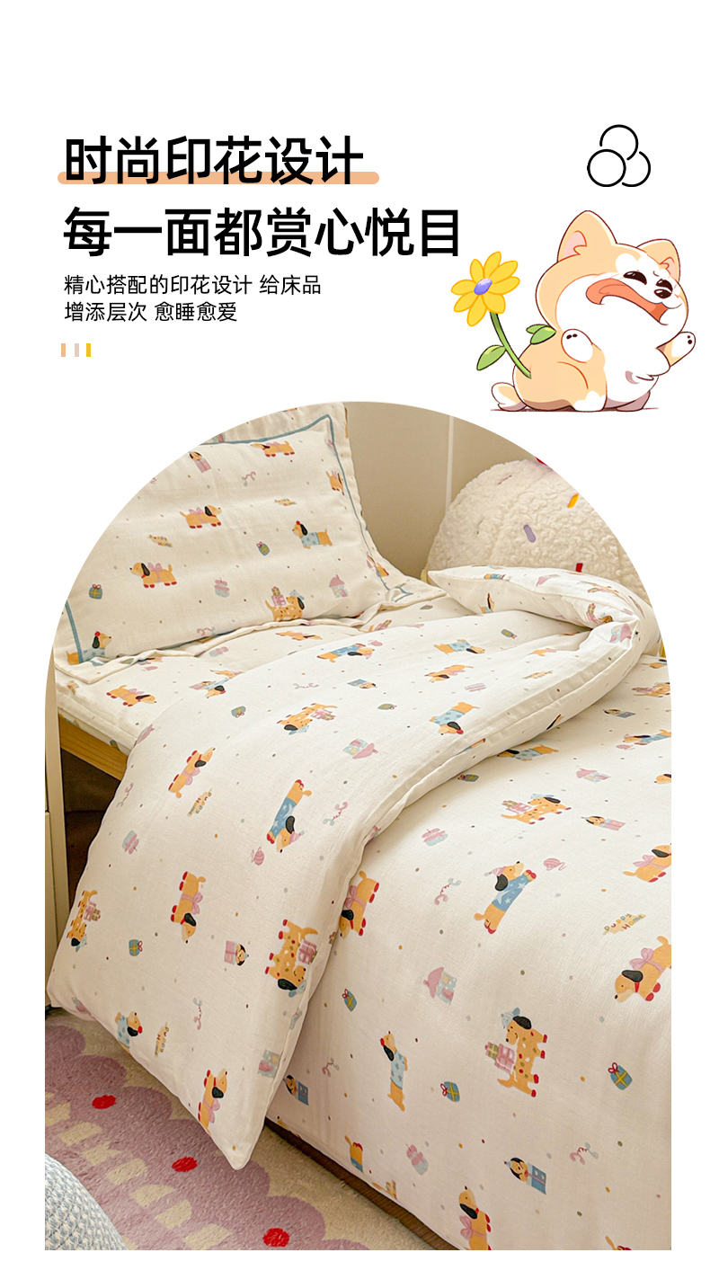 当前位置: 91家纺网 > 商品网购 > 床品套件 > 四件套 > 其它四件套 > 简宜家居(朝初家纺) 2025新款幼儿园双层纱套件 奶黄腊肠狗