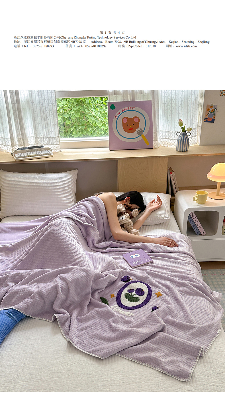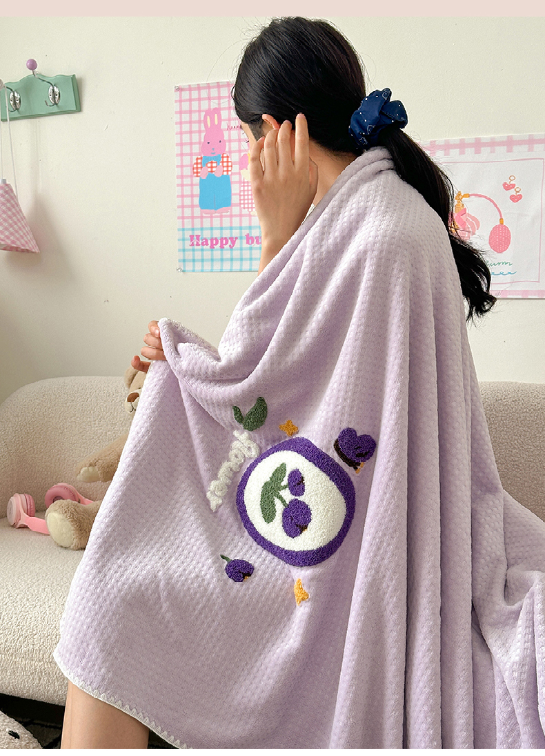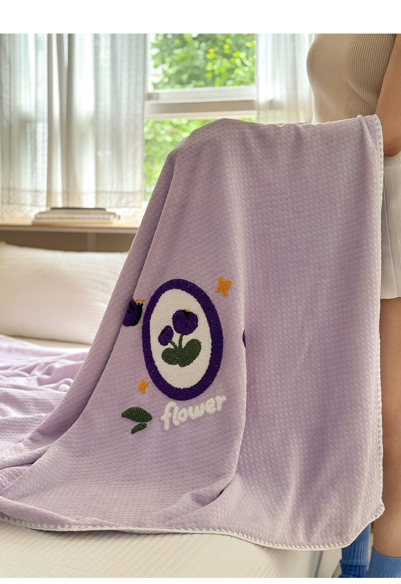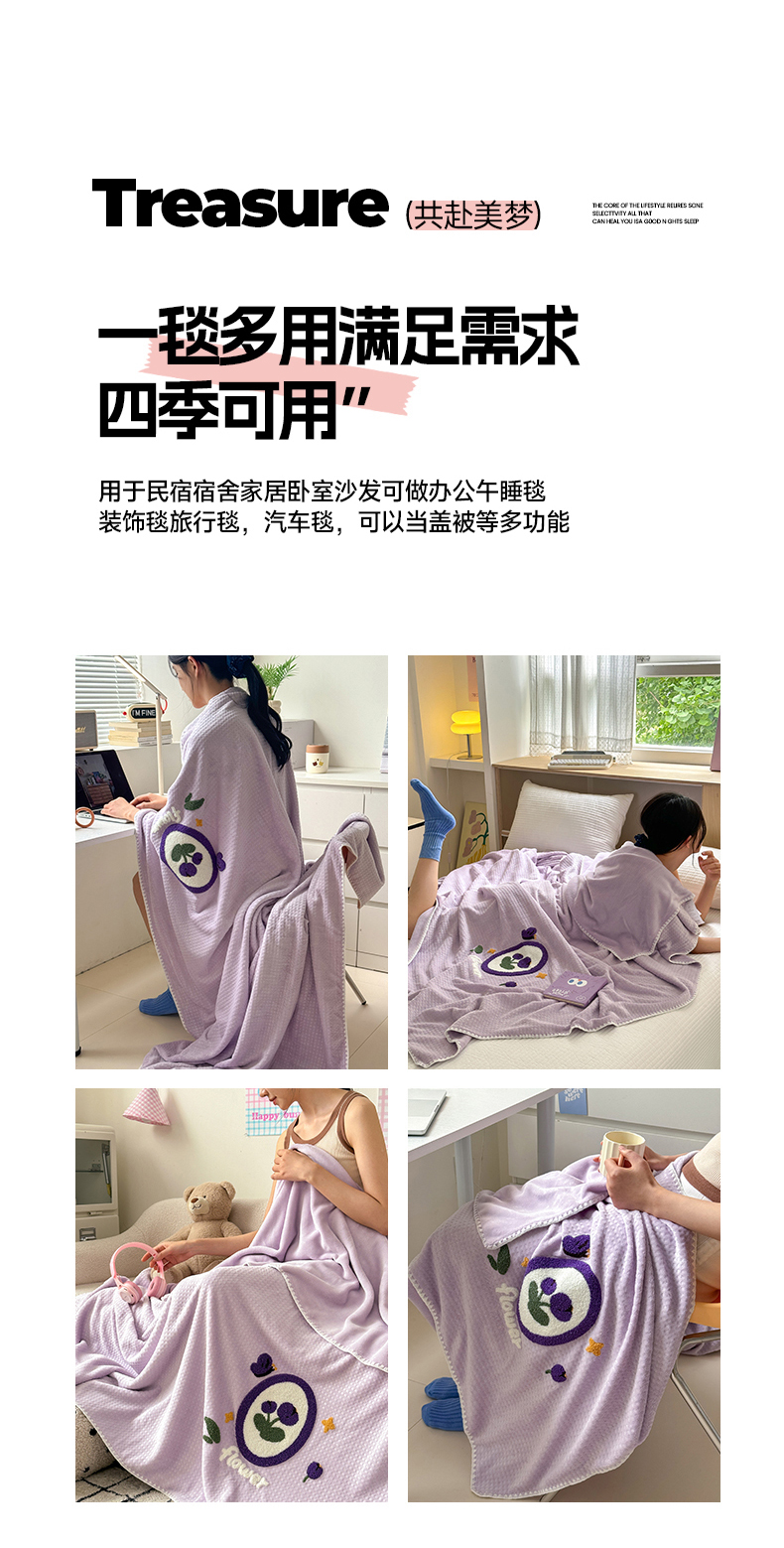 商品名称:艾佳2025新款卡通绣花款小华夫格毛毯毯子 华夫毯-花蝶紫
