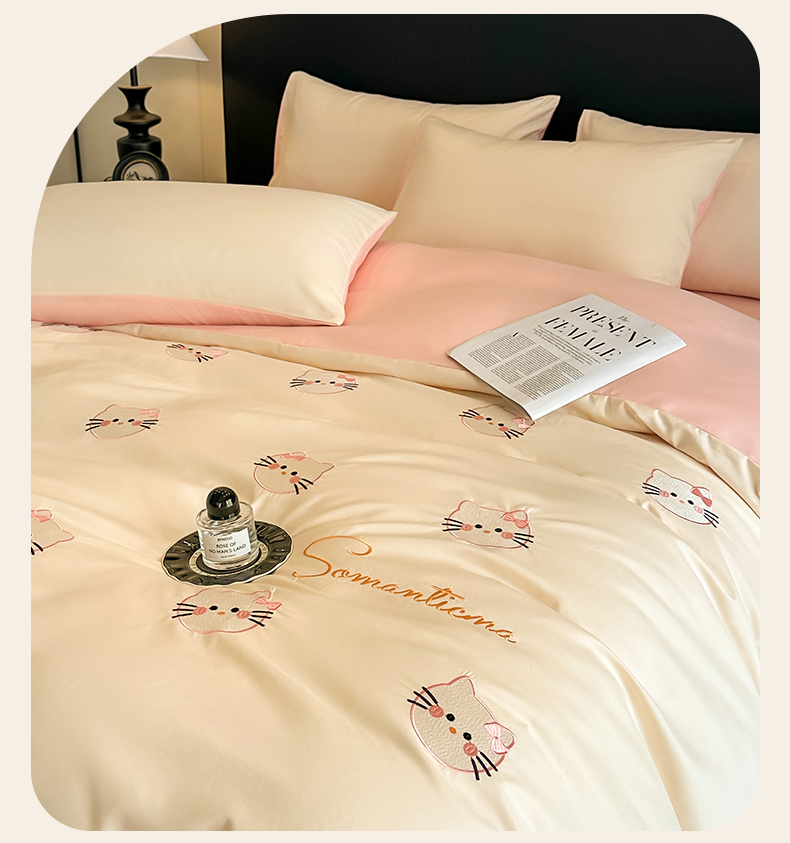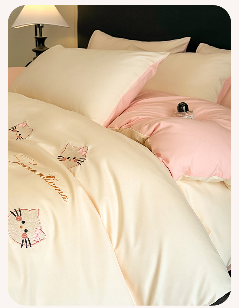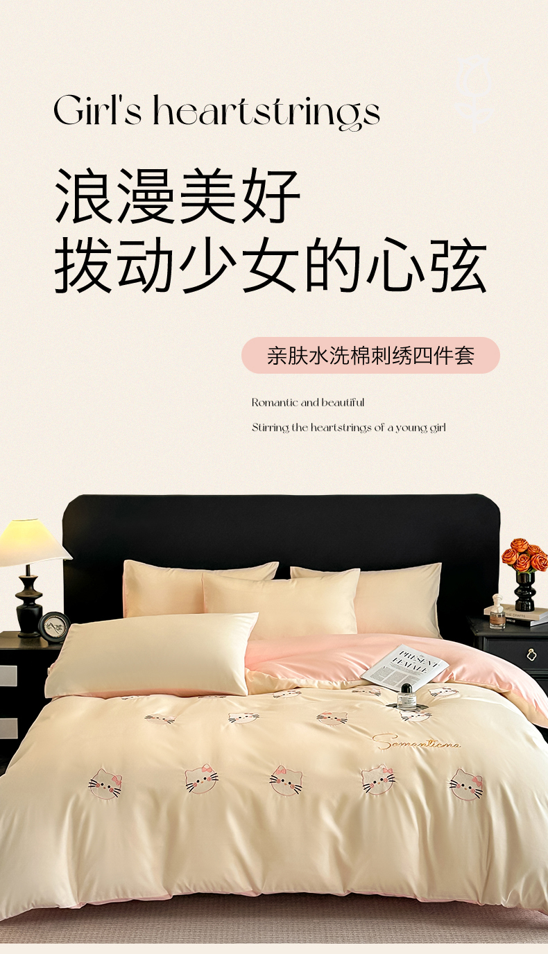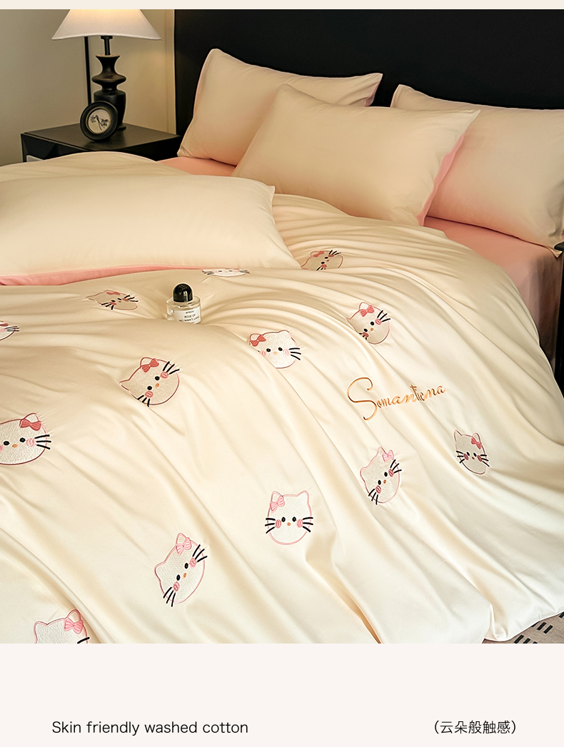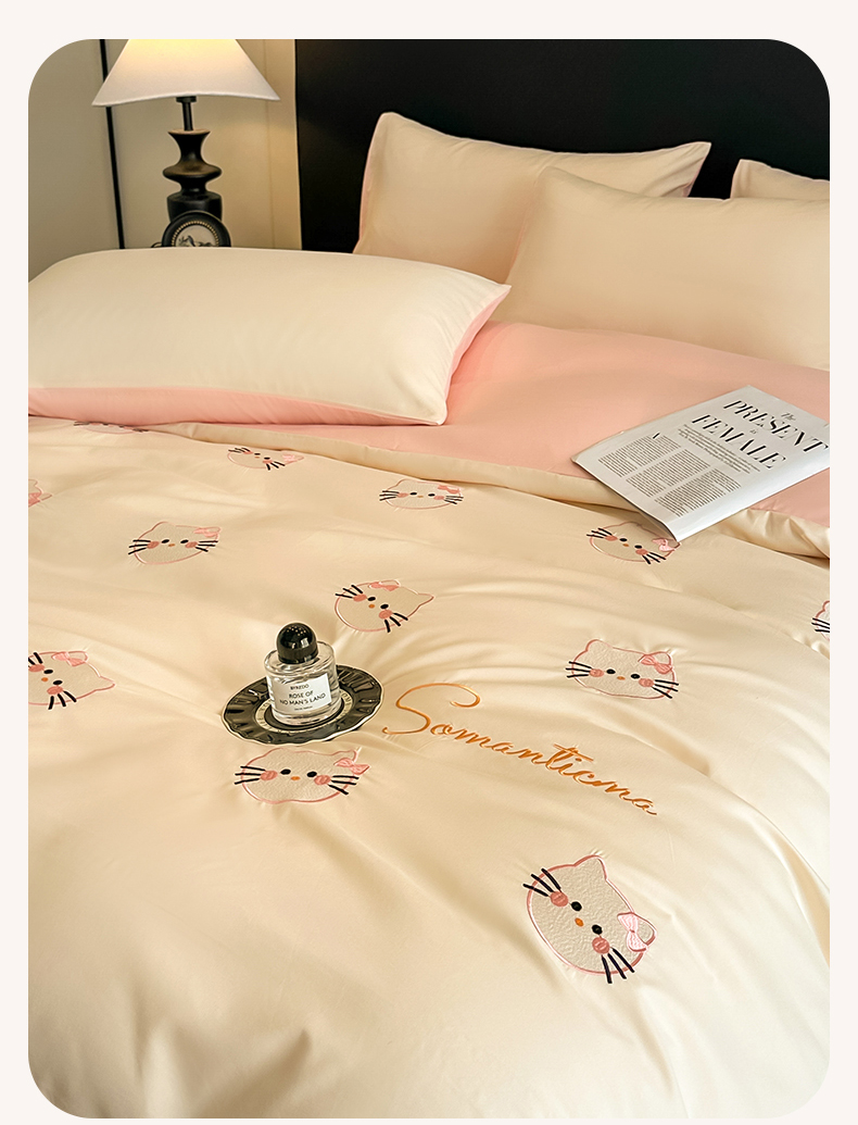 当前位置: 91家纺网 > 商品网购 > 床品套件 > 四件套 > 水洗棉四件套 > 笙意家纺 2025新款亲肤水洗棉刺绣满绣四件套 可爱猫-奶昔白+奶油粉