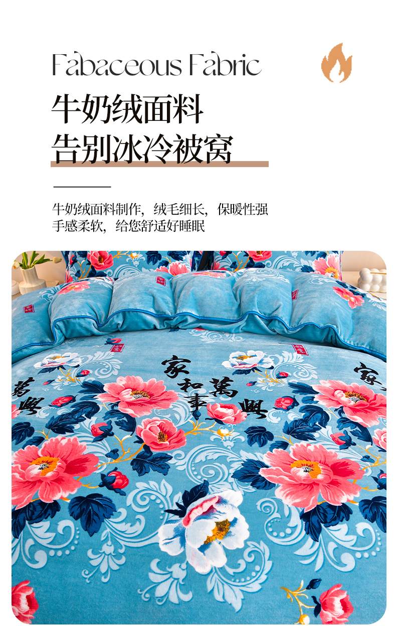缘莉娜家纺 2025高克重8斤牛奶绒四件套金貂绒法莱绒加厚保暖直播电商爆款 如花似锦,如花似锦