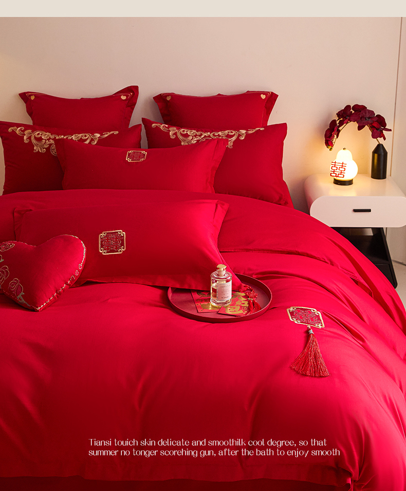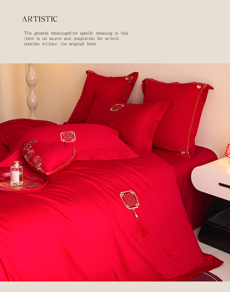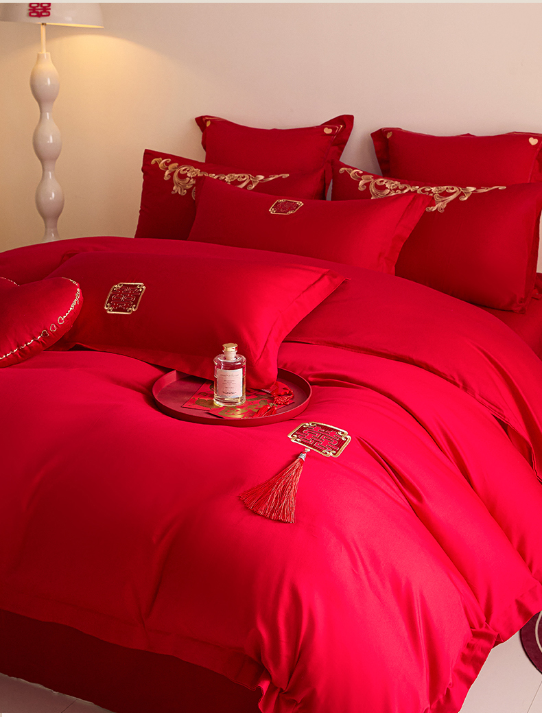(总)东方合美(原:皇家传奇) 2025新款全棉纯棉新中式刺绣婚庆多件套-爱你,爱你-红,爱你-金