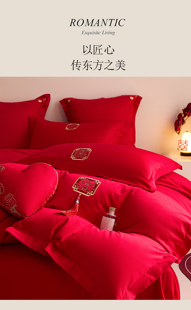 商品名称:(总)东方合美(原:皇家传奇) 2025新款长绒棉纯棉婚庆刺绣小红书系列四件套