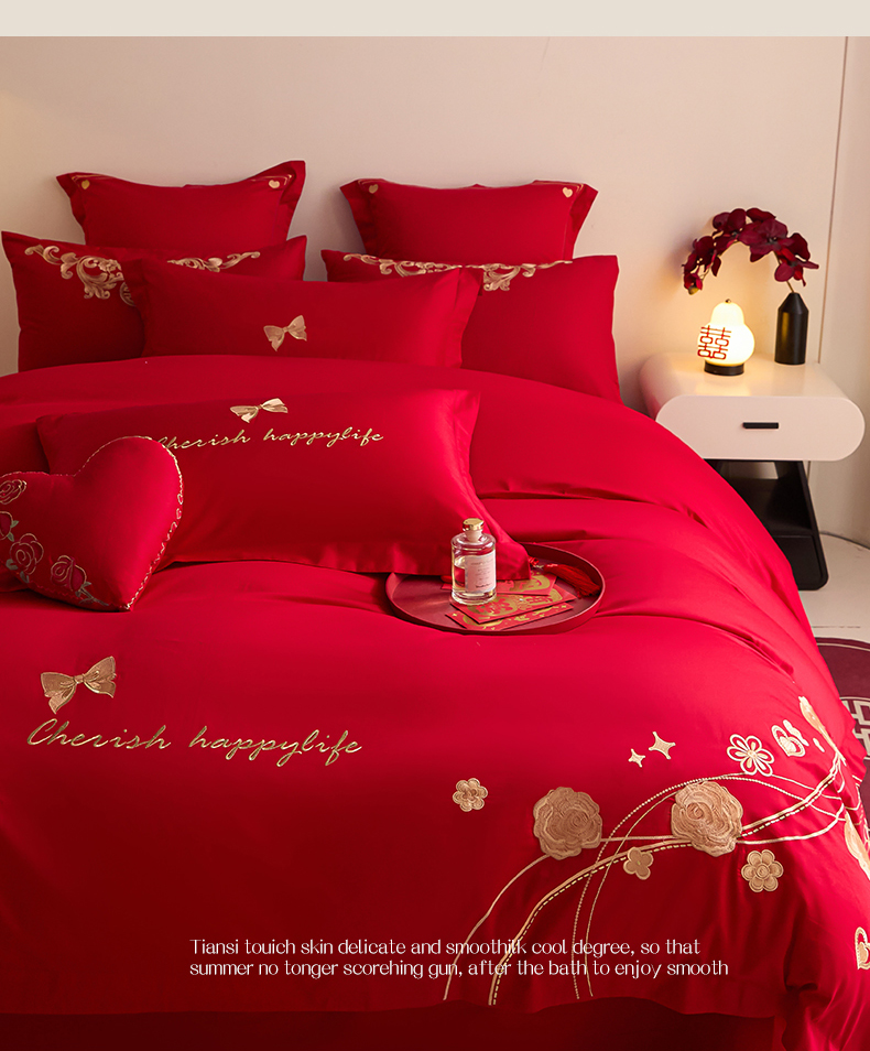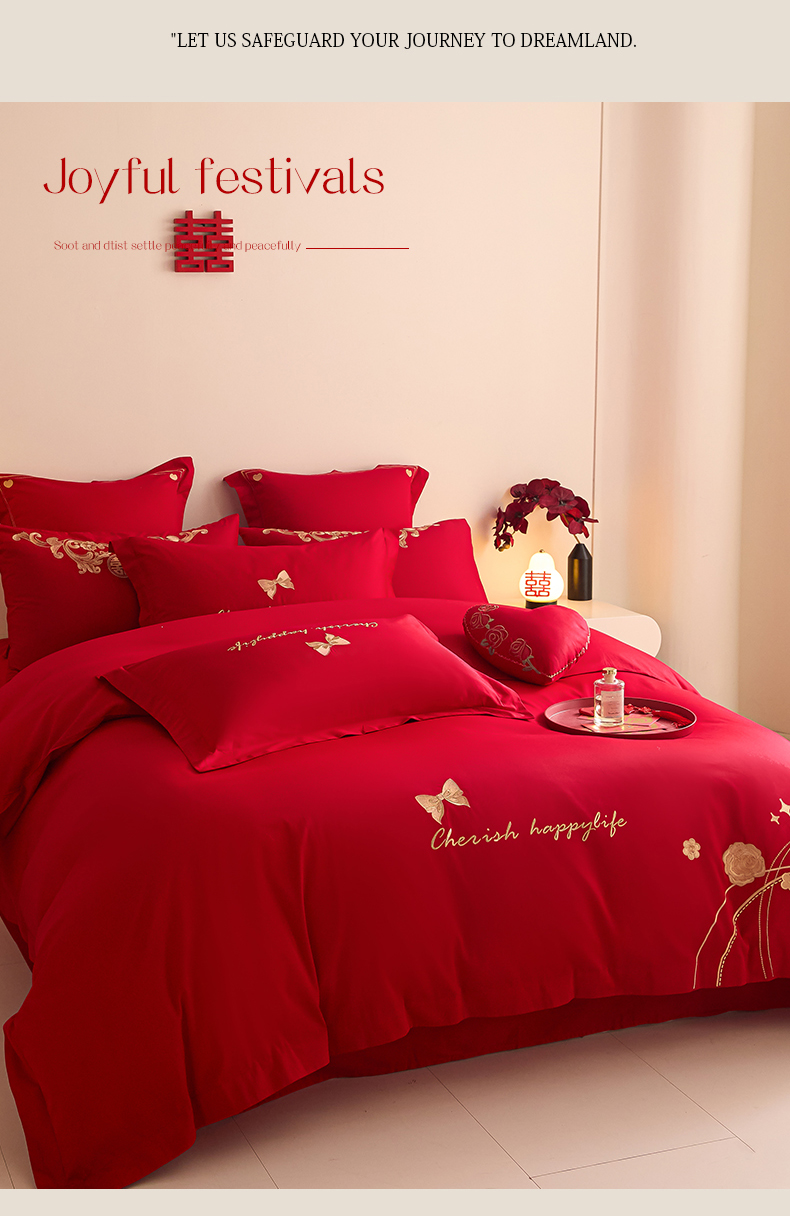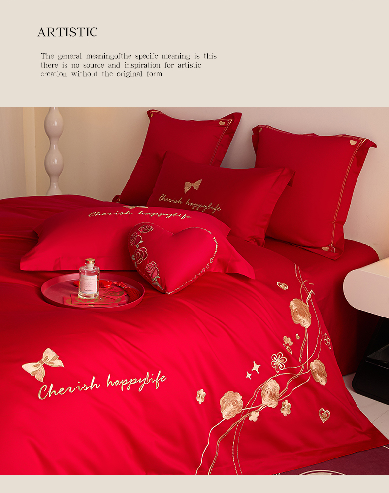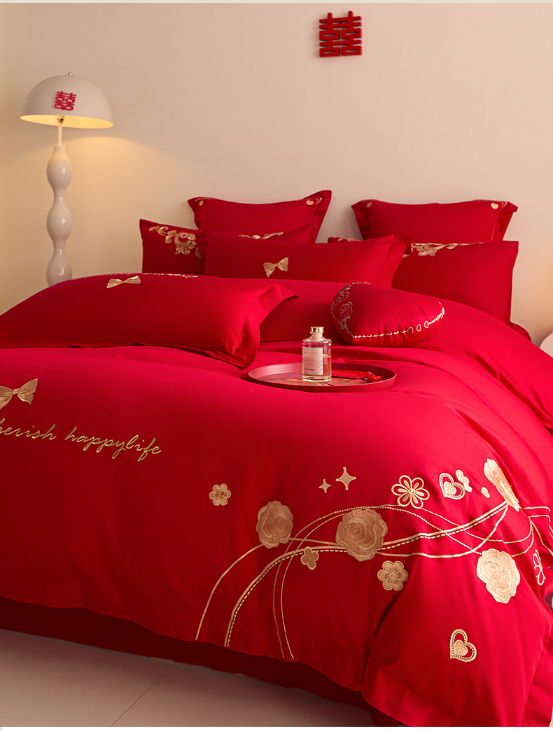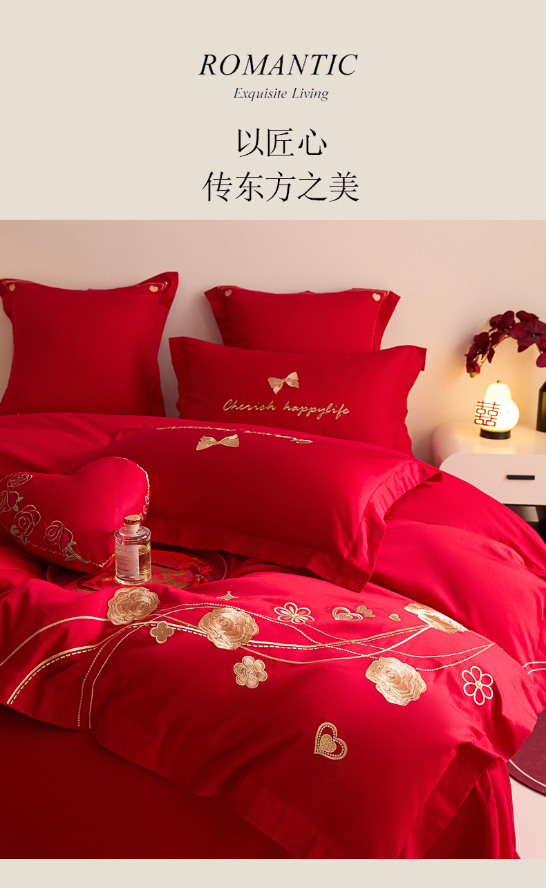 当前位置: 91家纺网 > 商品网购 > 床品套件 > 四件套 > 婚庆四件套 > 东方合美(原:皇家传奇) 2025新款长绒棉纯棉婚庆刺绣小红书系列四件套 玫瑰