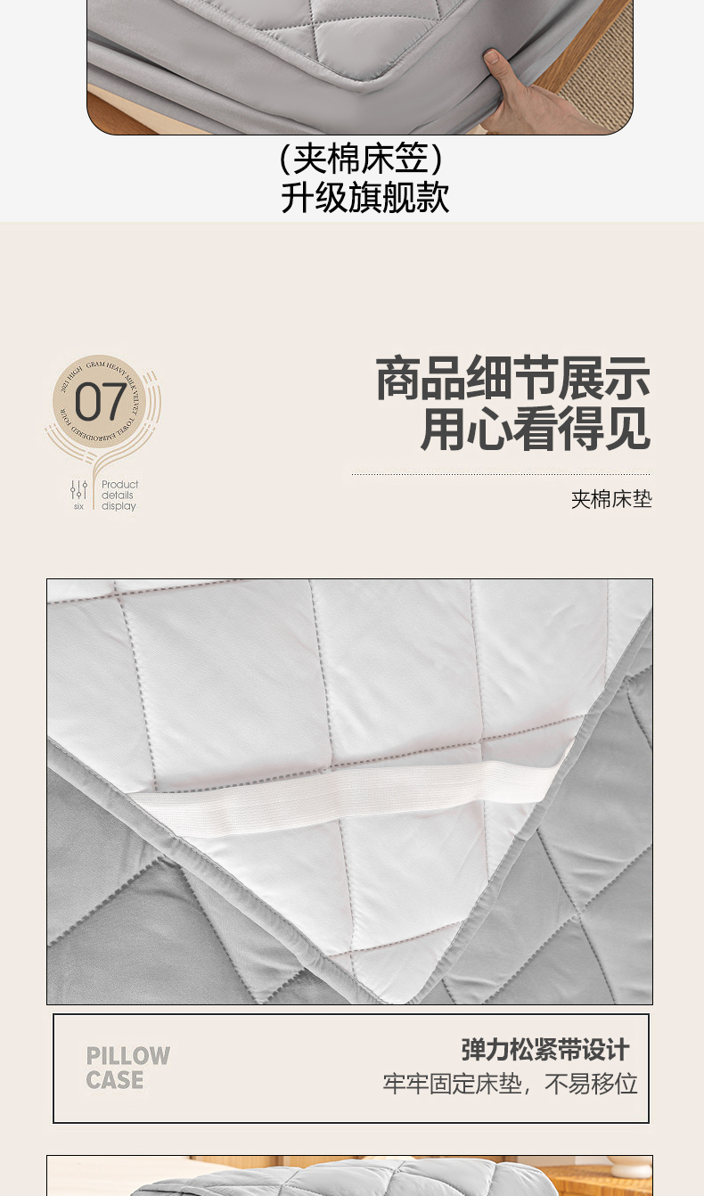 当前位置: 91家纺网 > 商品网购 > 床上用品 > 床笠 > 憨豆家纺 2025新款水洗棉磨毛夹棉床笠四季床垫褥子床护垫薄款学生宿舍榻榻米垫被跨境加棉保护垫 床护垫-灰色
