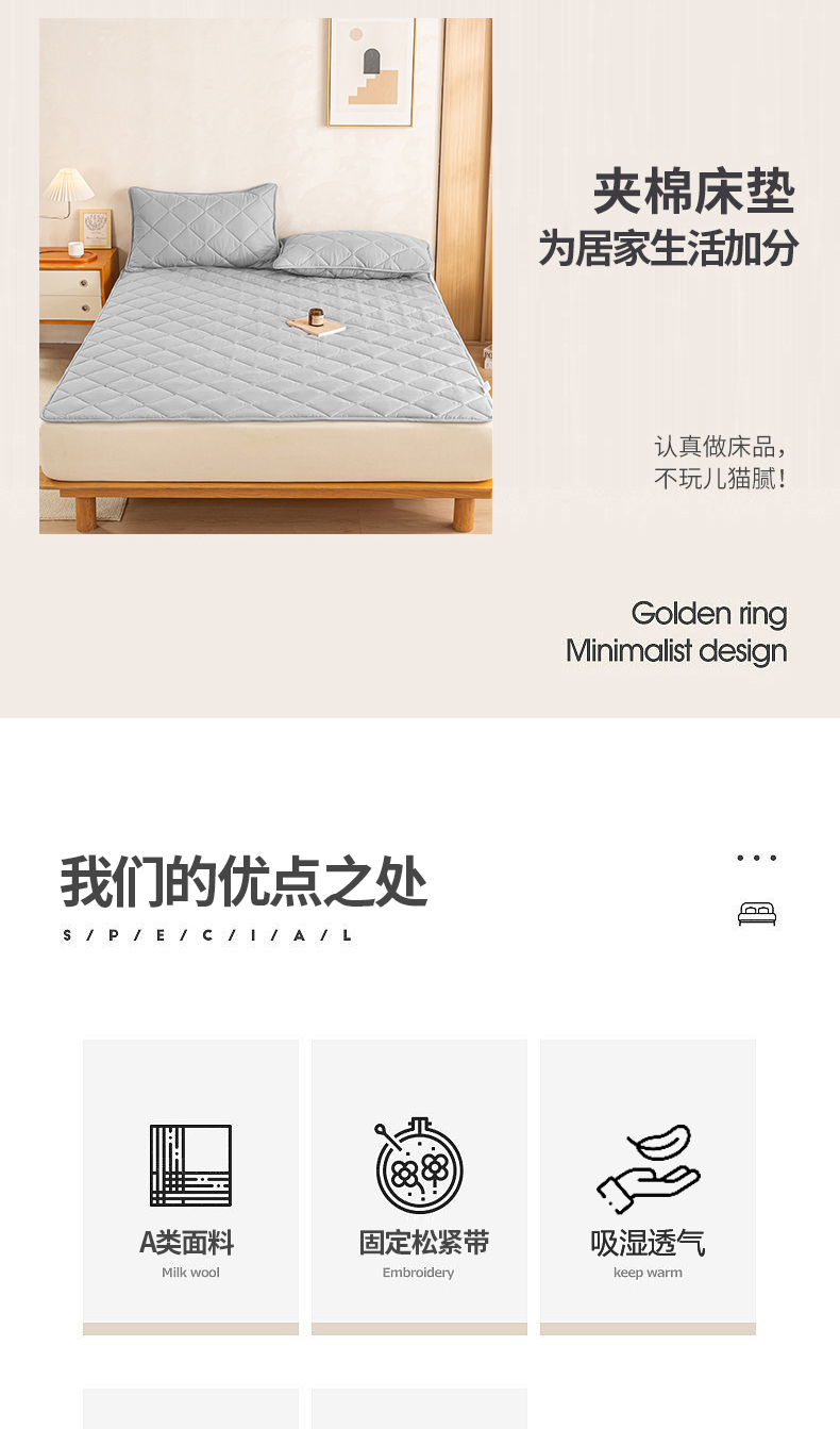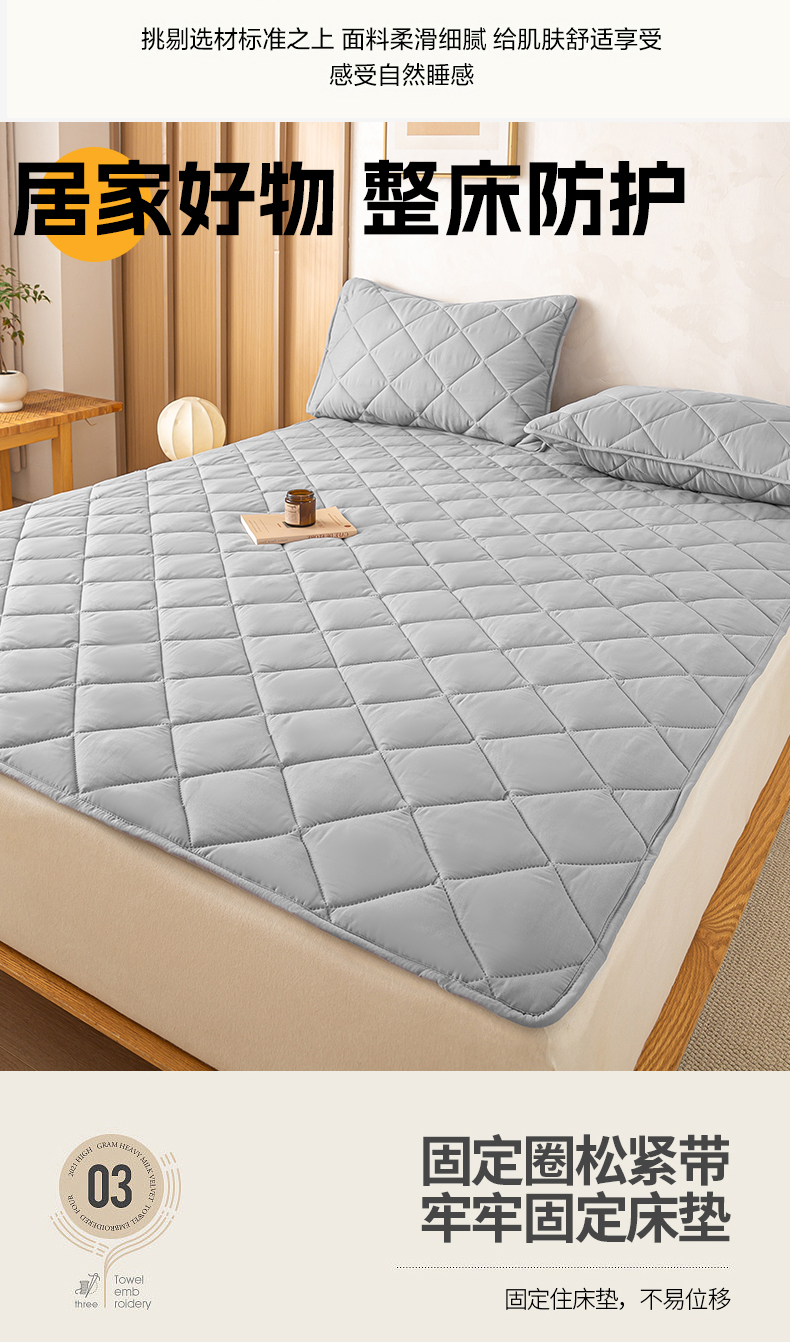 • 91家纺网 家纺一手货源 找家纺 憨豆家纺 2025新款水洗棉磨毛夹棉床笠四季床垫褥子床护垫薄款学生宿舍榻榻米垫被跨境加棉保护垫 床护垫-灰色