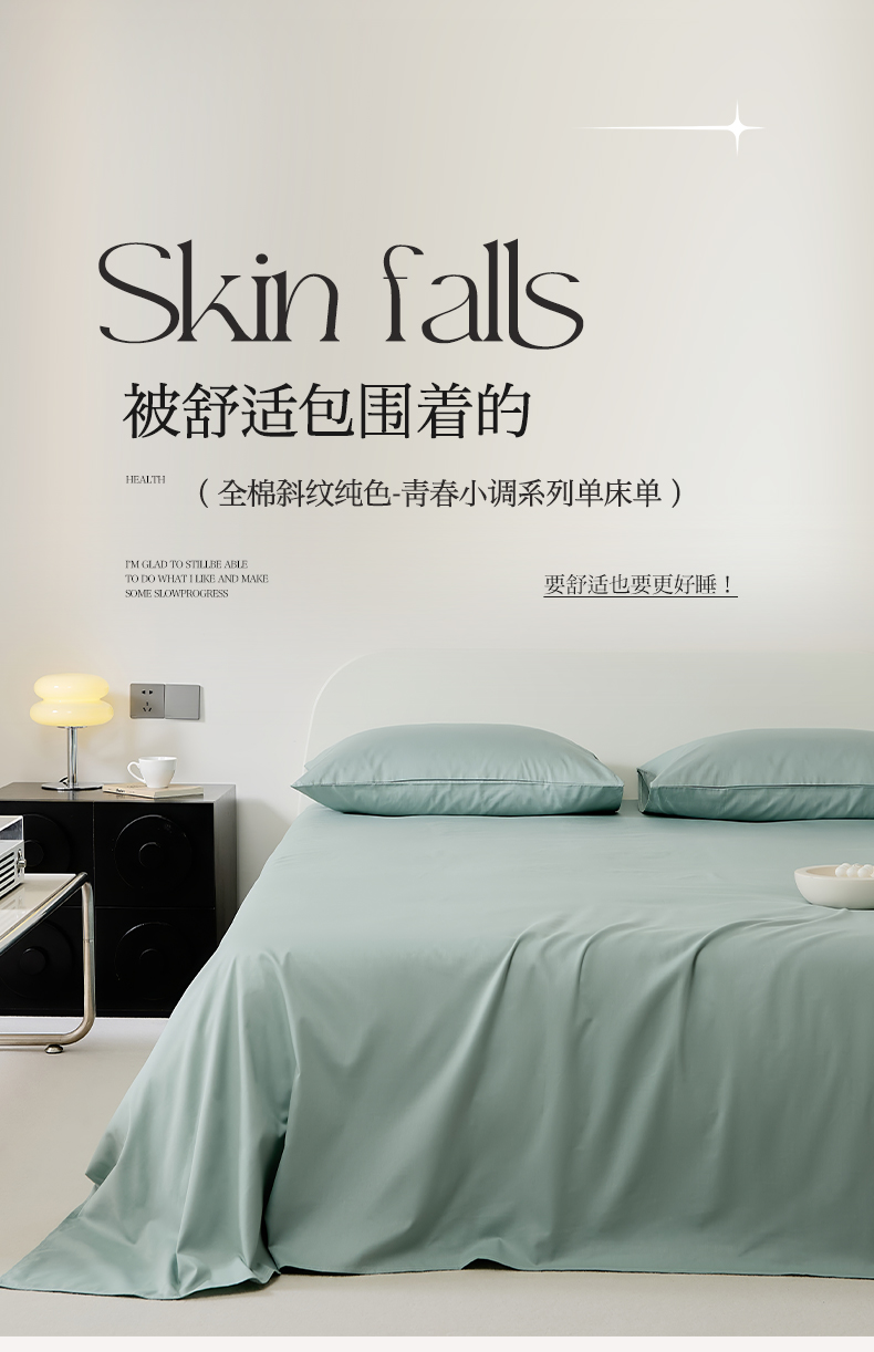 EH家居 2025新款全棉斜纹纯色-青春小调系列单床单 天青色