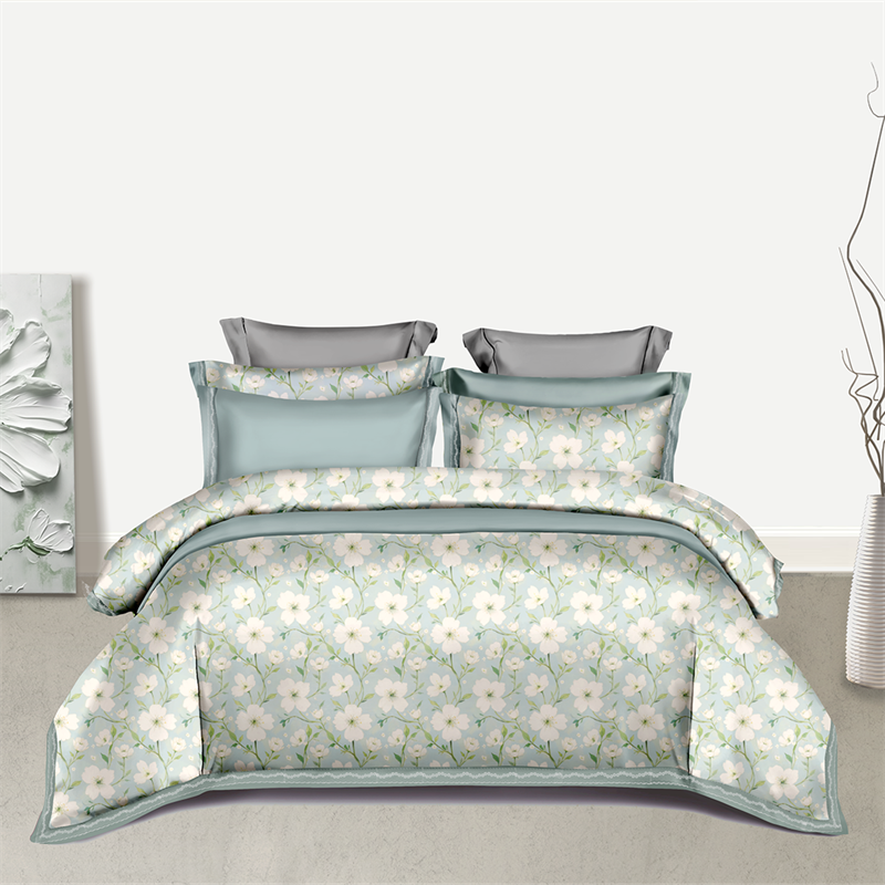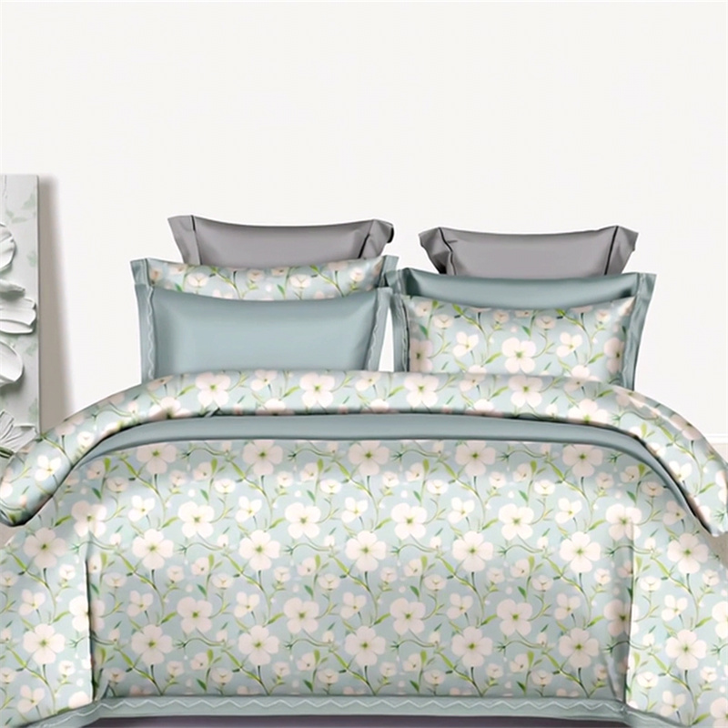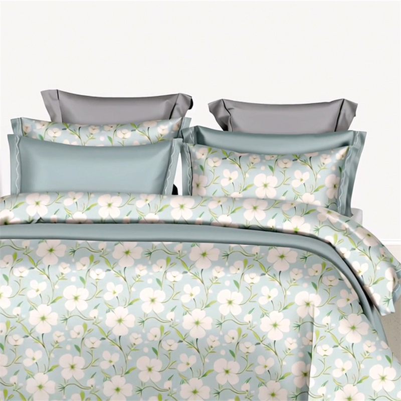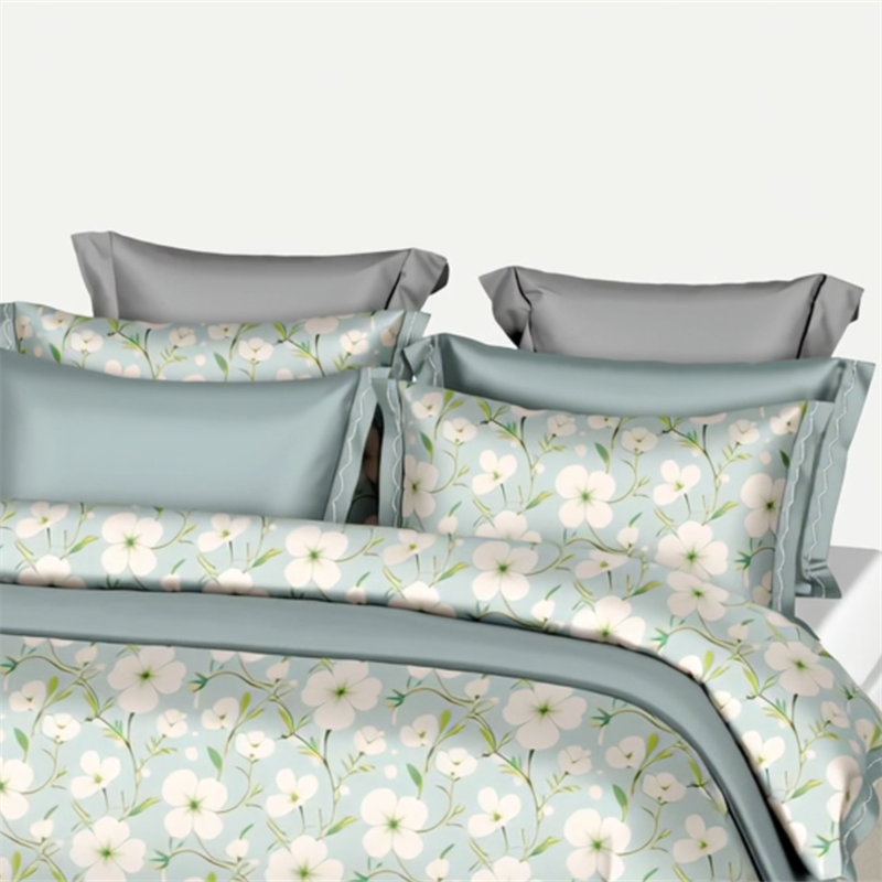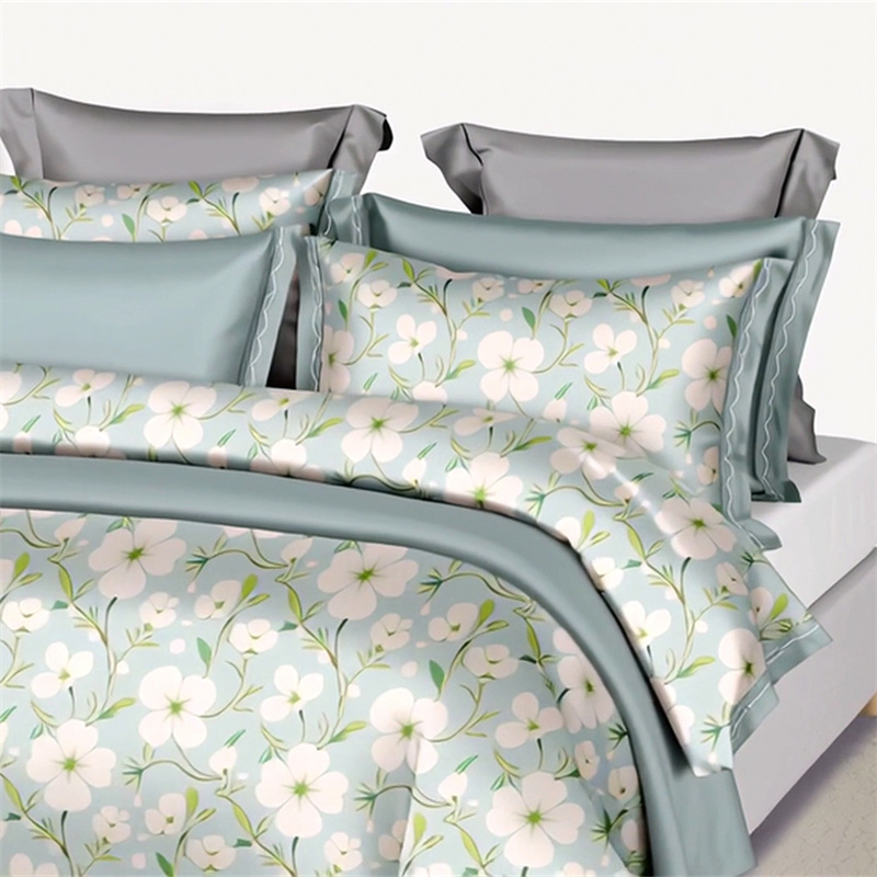 纯色雨家纺 2025新款全棉斜纹跨境日韩欧美纯棉四件套数码印花南通家纺面料尺寸花型可定制 青釉花事,青釉花事