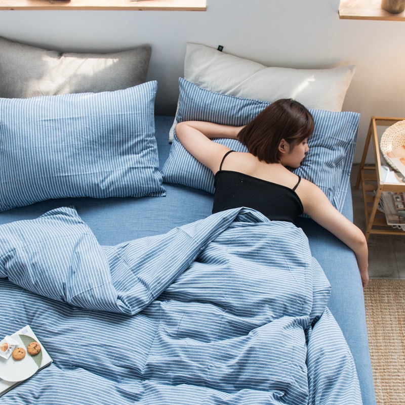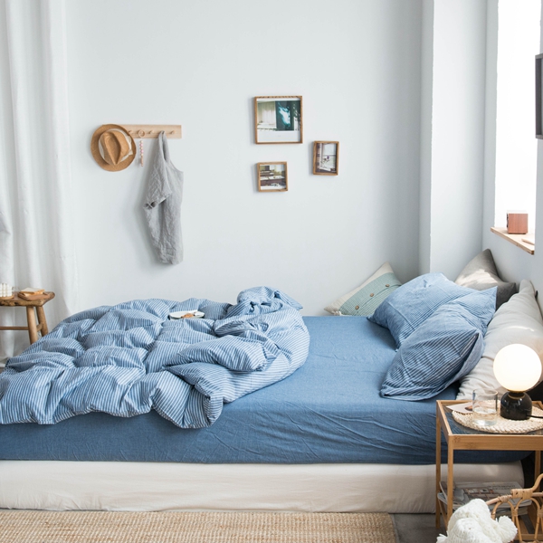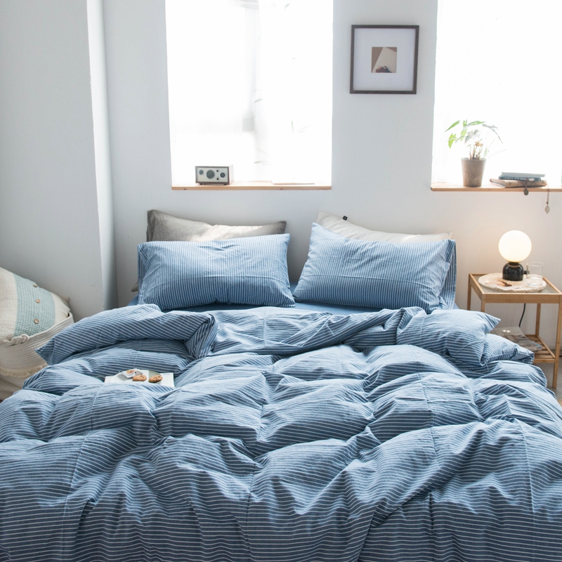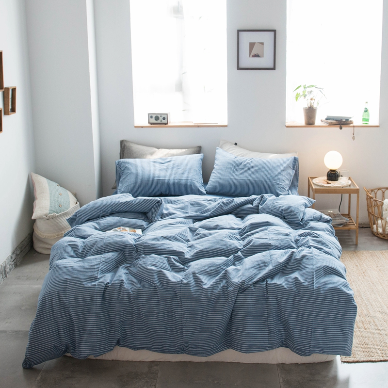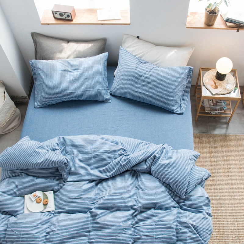 当前位置: 91家纺网 > 商品网购 > 床品套件 > 四件套 > 尚品本色2025年新款简约风全棉水洗棉格子条纹系列四件套 牛仔蓝细条