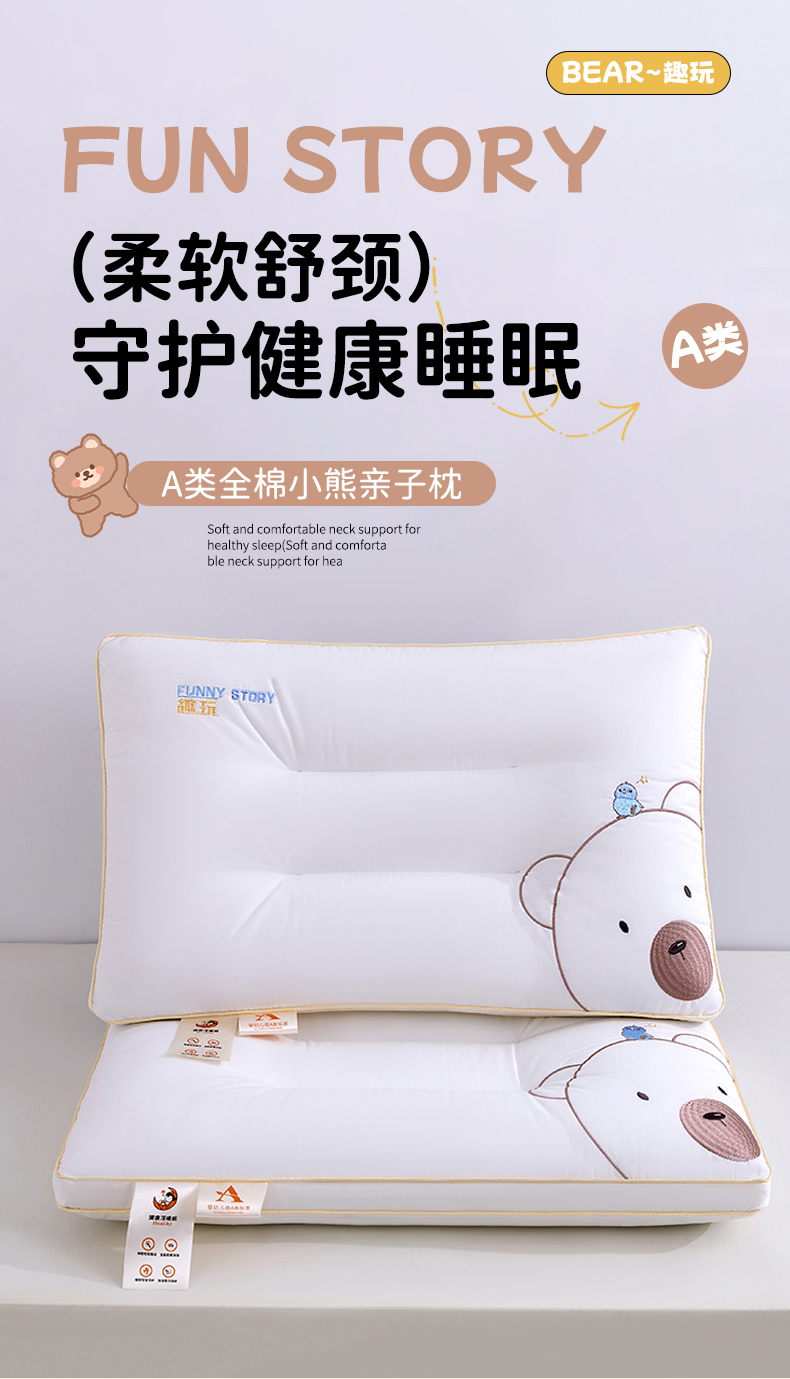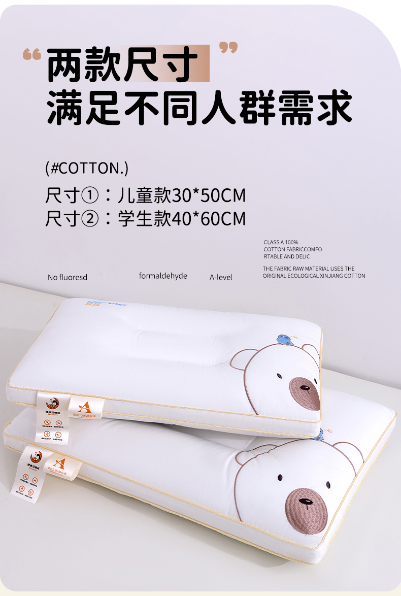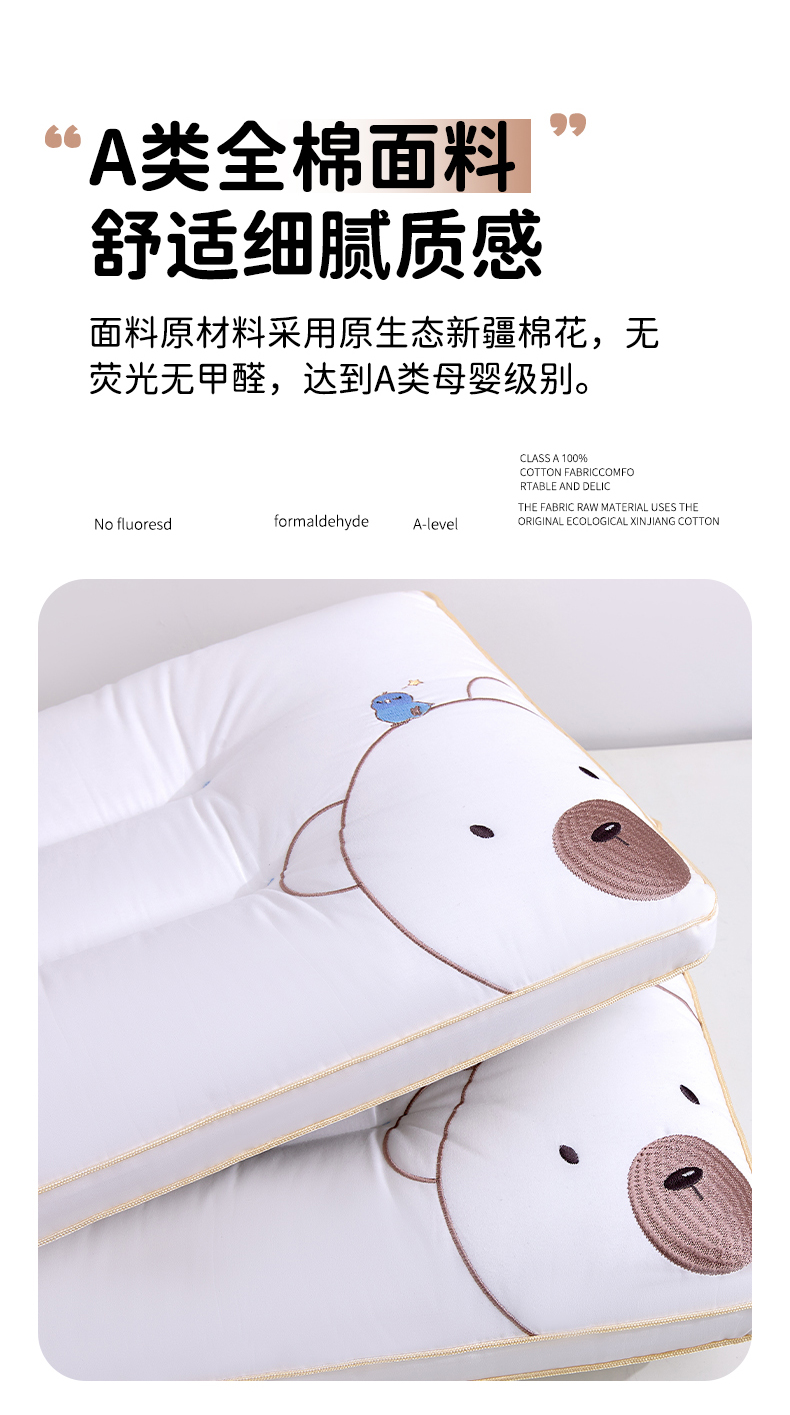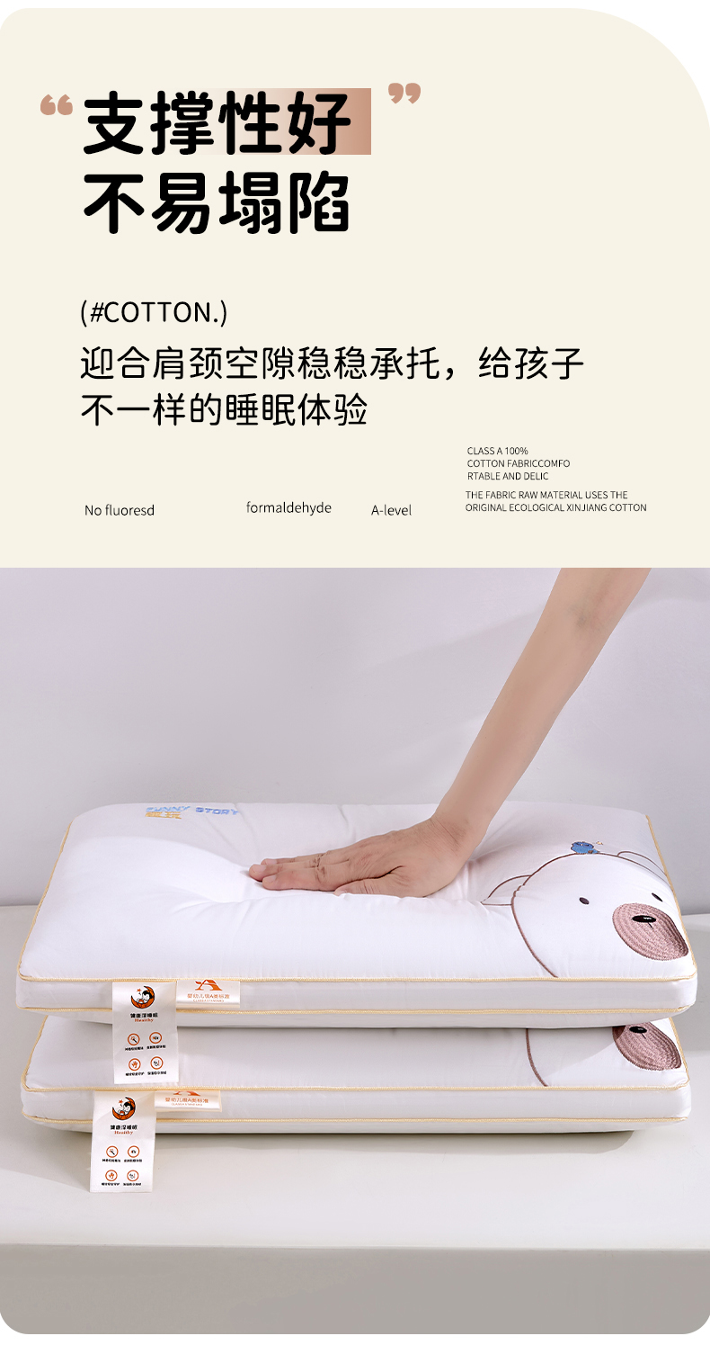 商品名称:(总)织布人 2025新款枕芯A类全棉纯棉刺绣招财猫卡通幼儿园儿童枕头学生宿舍枕头枕芯