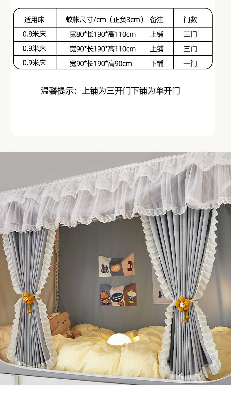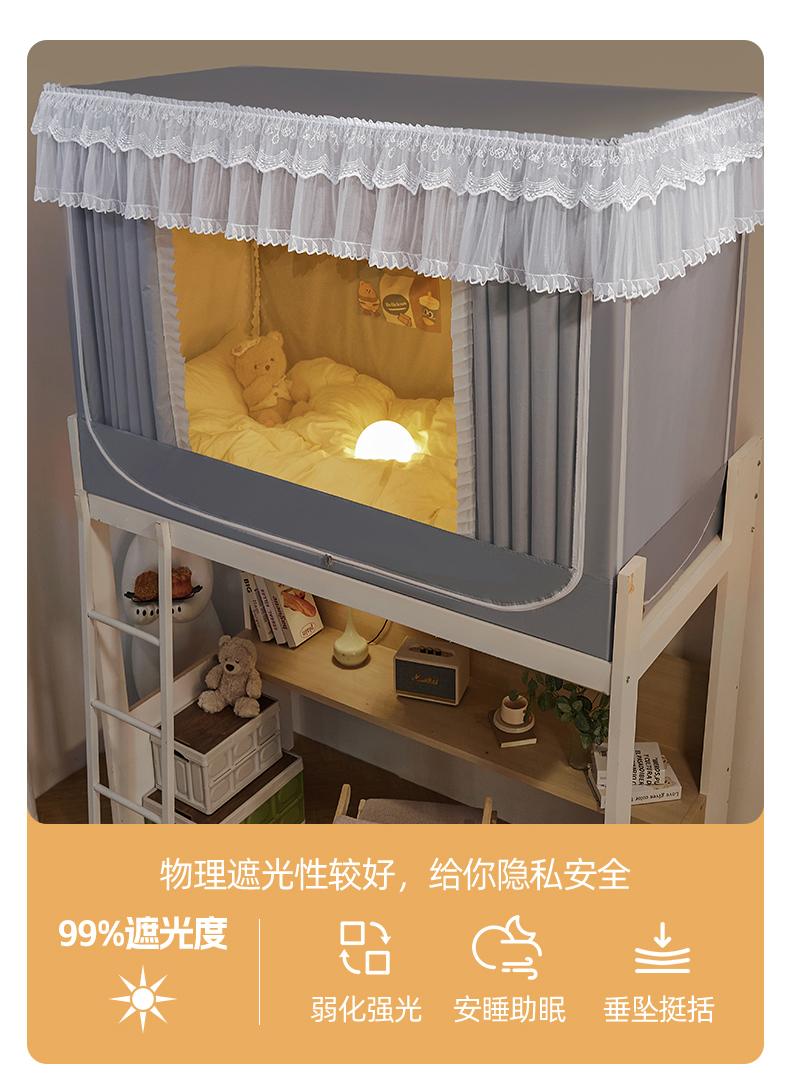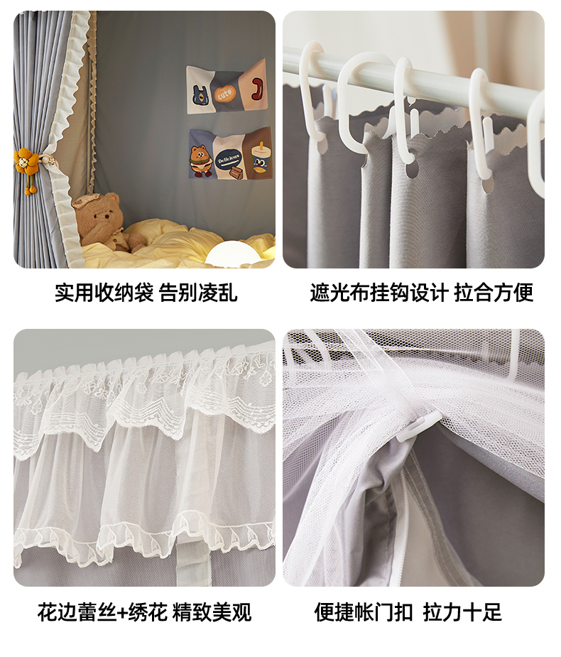 当前位置: 91家纺网 > 商品网购 > 床上用品 > 蚊帐 > 学生蚊帐 > 夏彩 2025新款植绒布蕾丝绣花强遮光铁艺支架学生蚊帐-88625 88625-青术灰