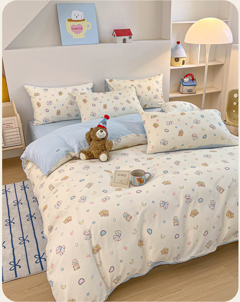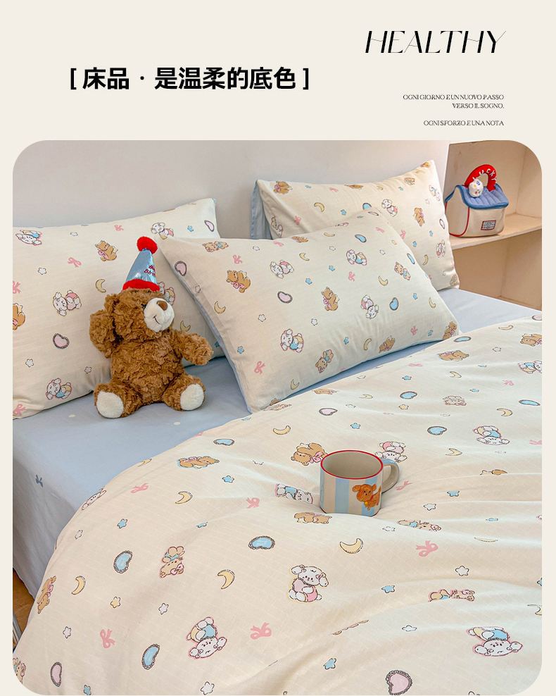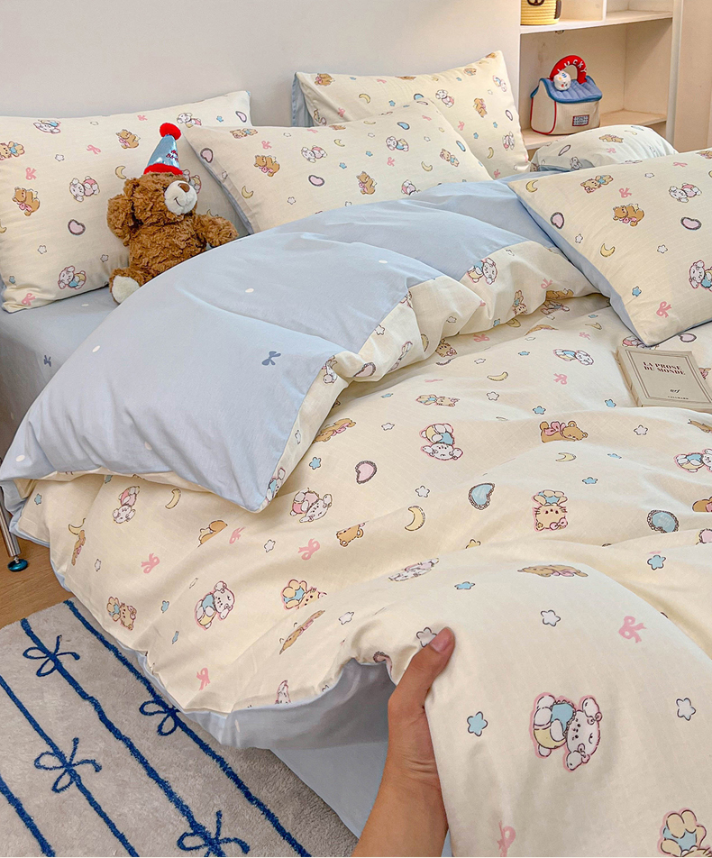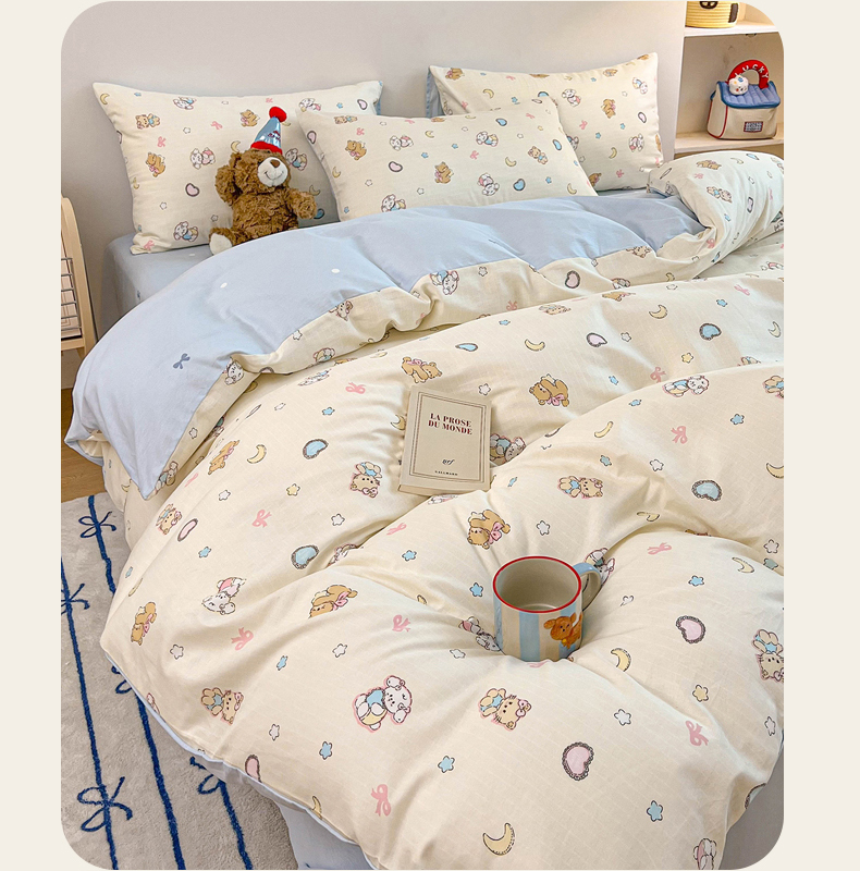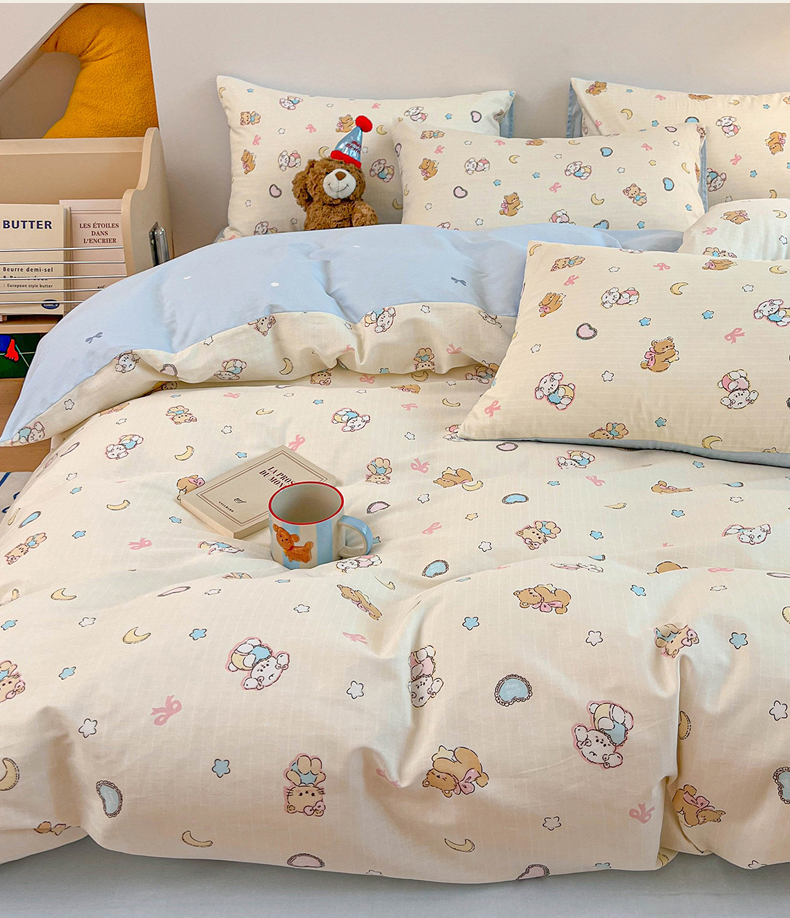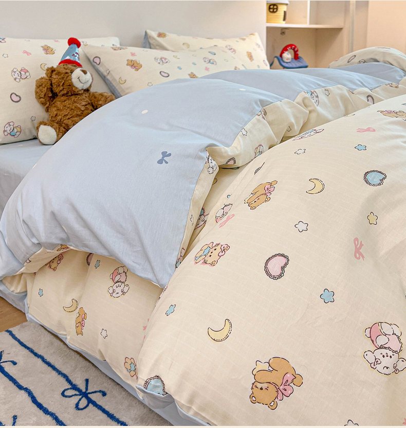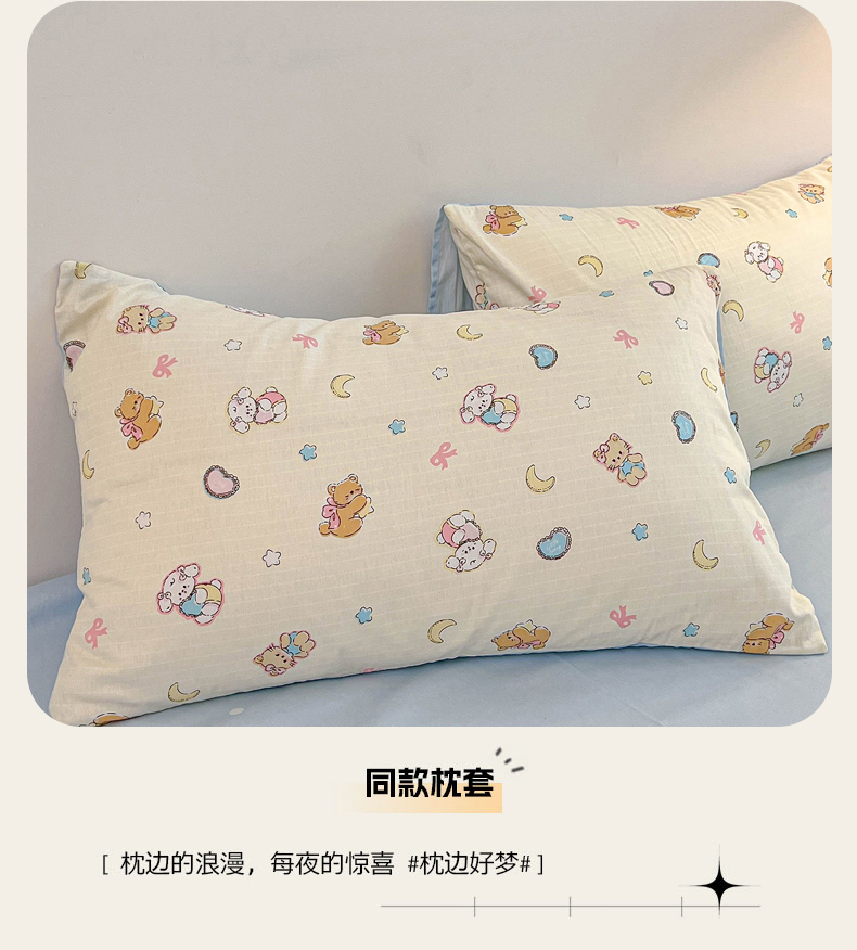 当前位置: 91家纺网 > 商品网购 > 床品套件 > 四件套 > 麦伦家居 2025新款40s斜纹全棉纯棉跑量款卡通小清新四件套 抱抱熊