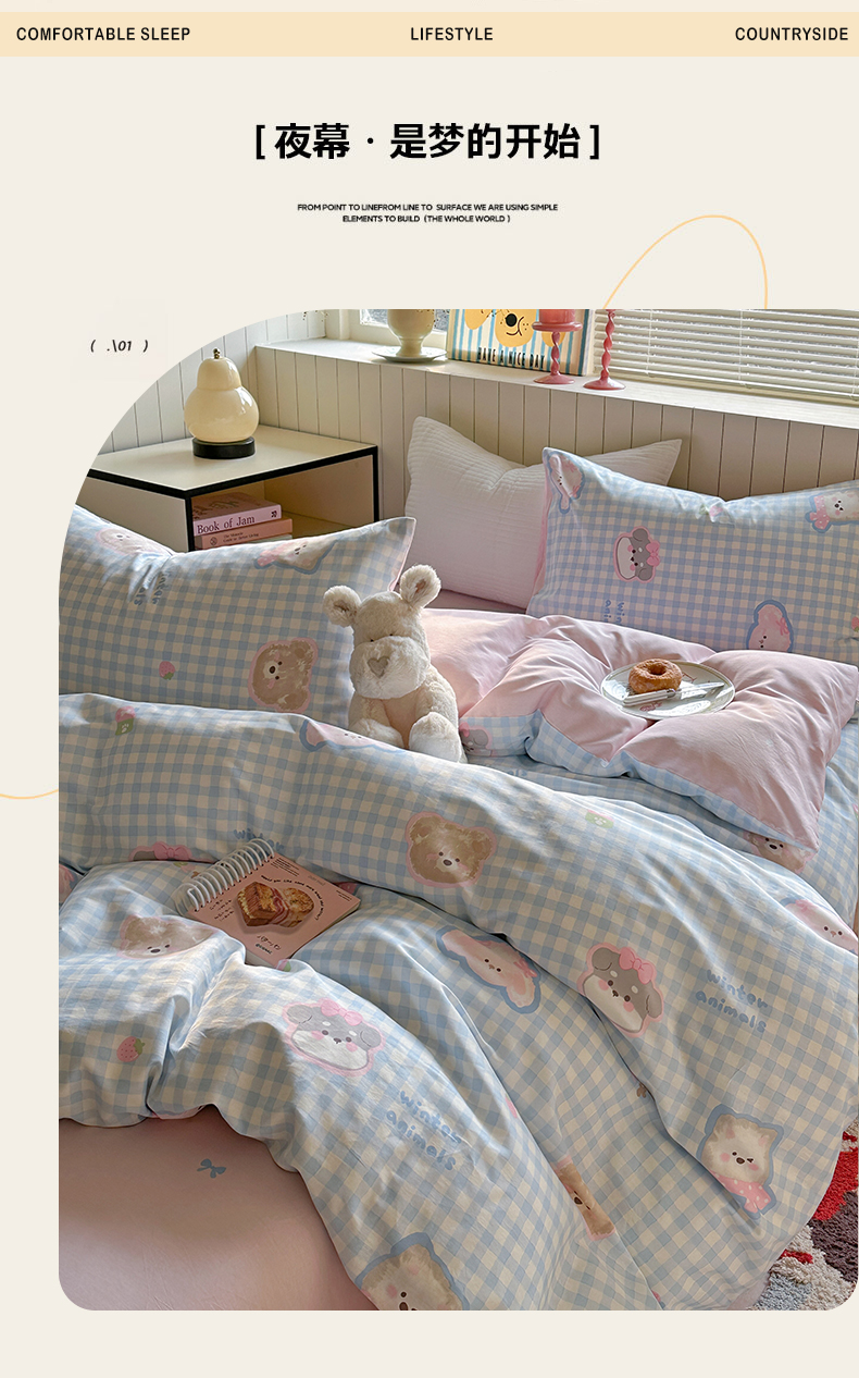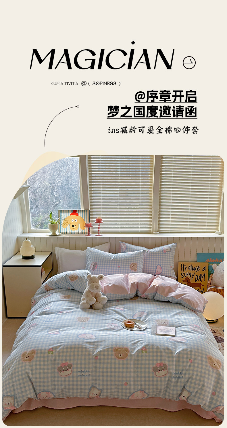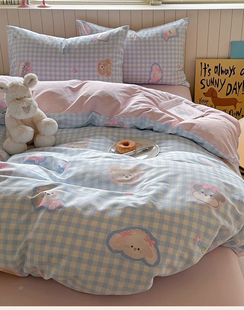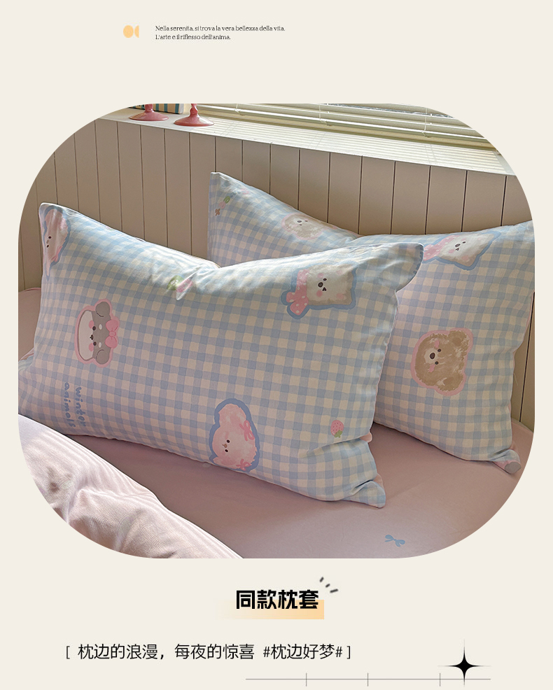 当前位置: 91家纺网 > 商品网购 > 床品套件 > 四件套 > 麦伦家居 2025新款40s斜纹全棉纯棉跑量款卡通小清新四件套 甜蜜小狗