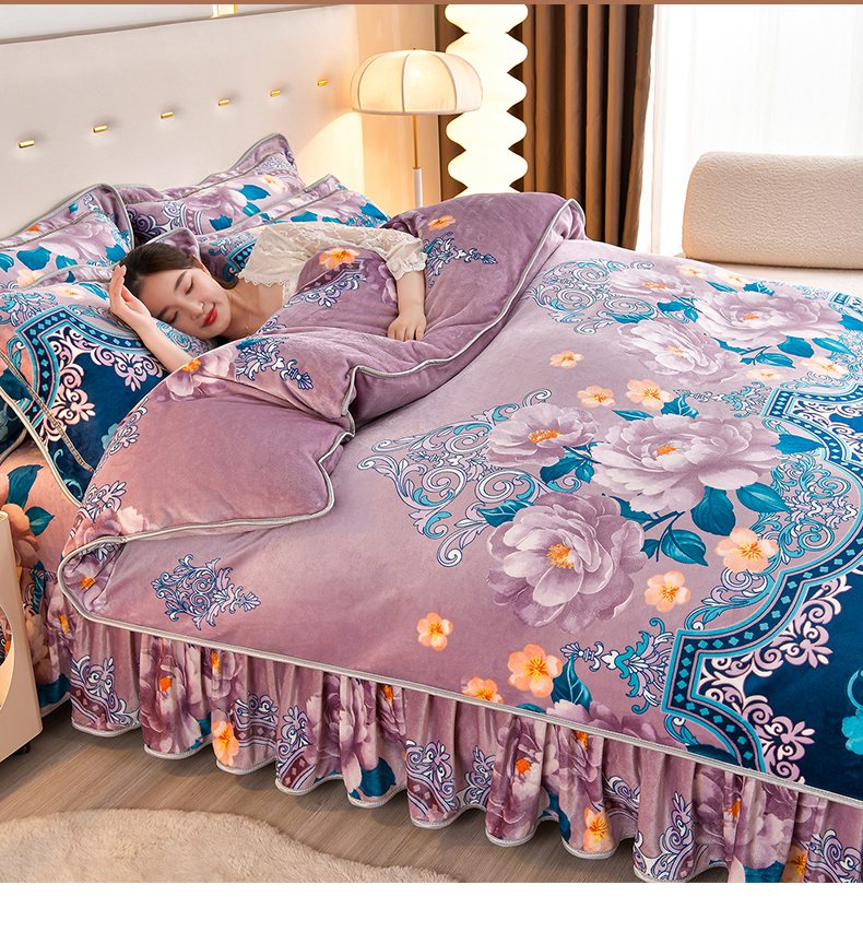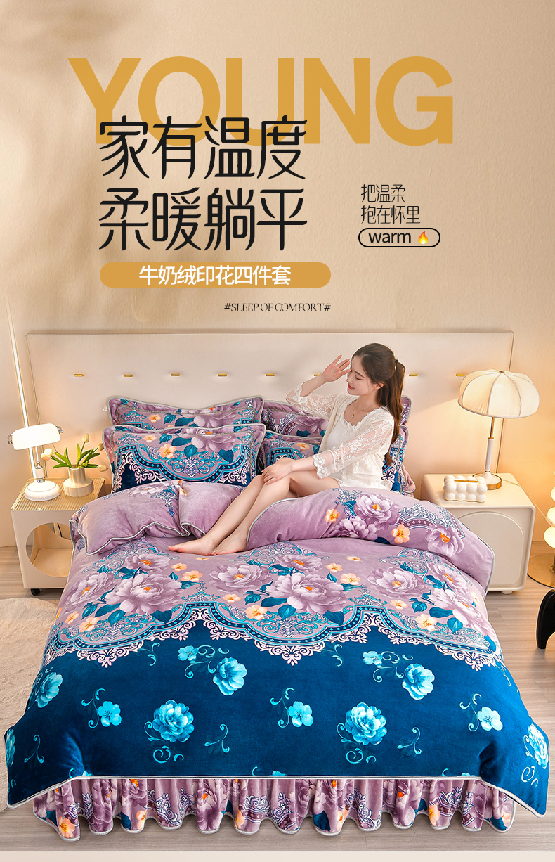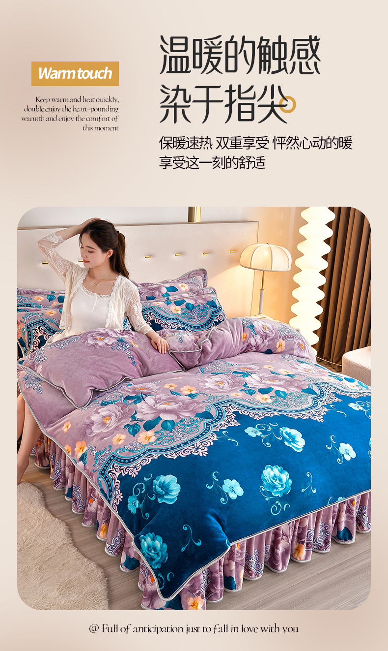 缘莉娜家纺 2025高克重8斤牛奶绒四件套金貂绒法莱绒加厚保暖直播电商爆款 花韵,花韵